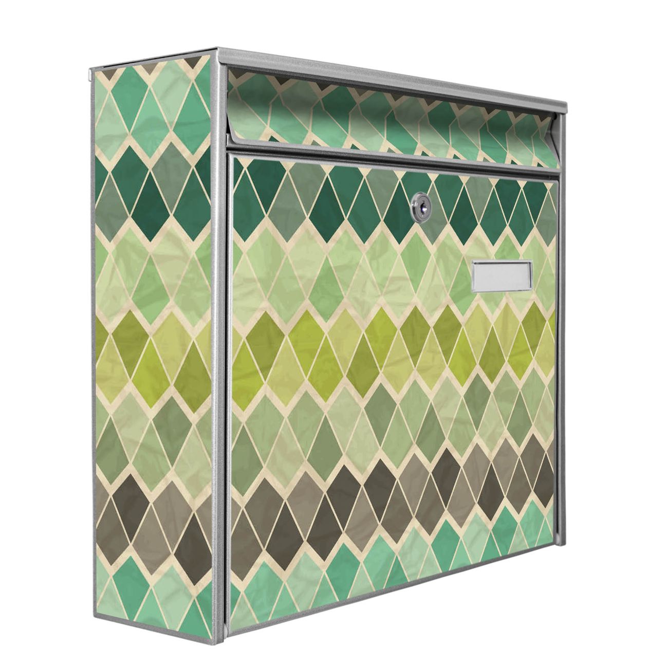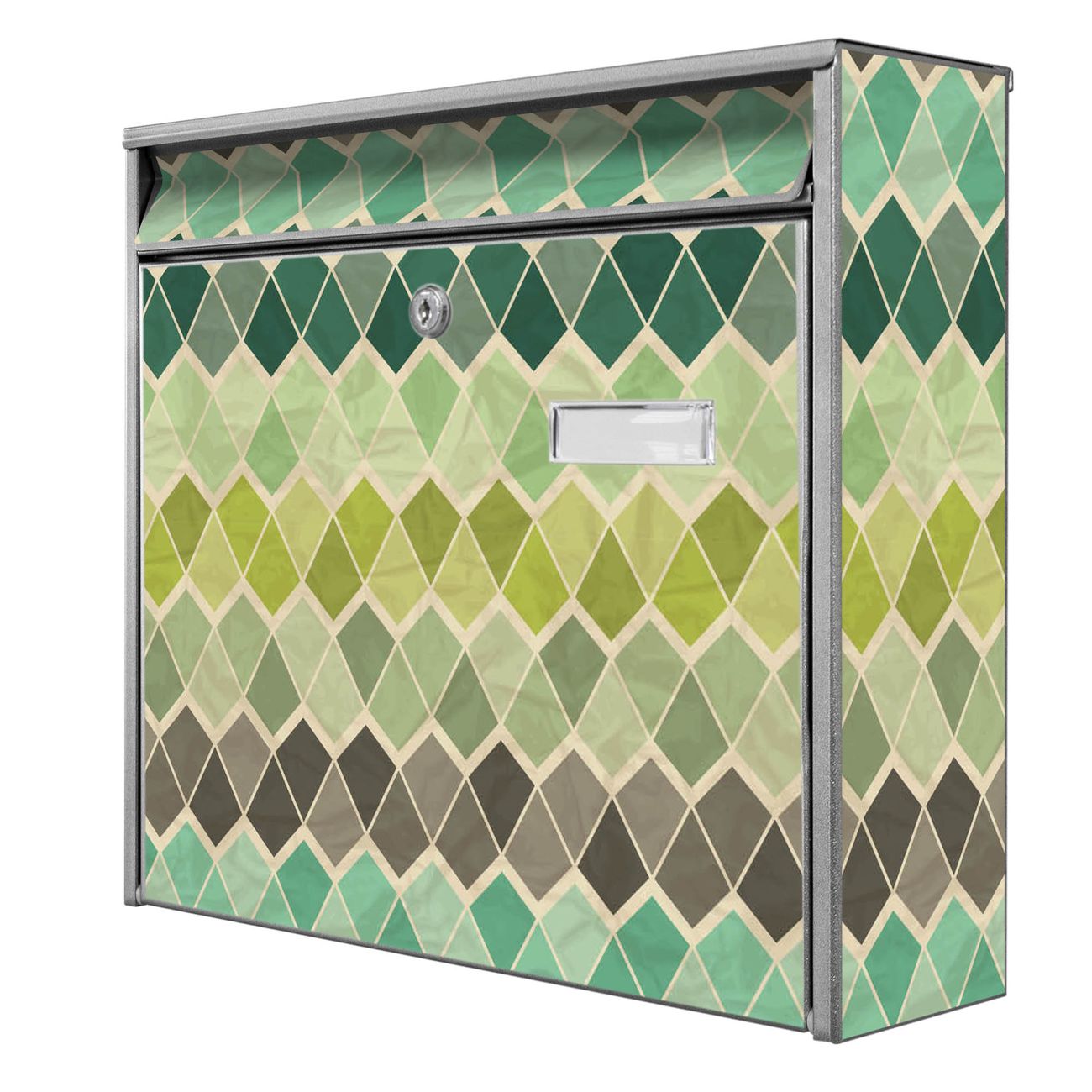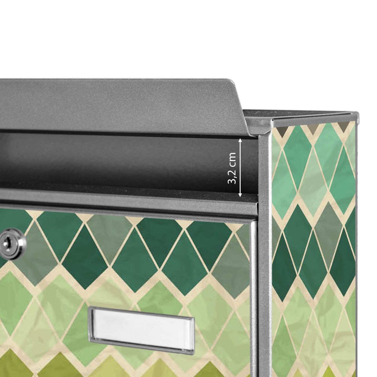 Der Postkasten mit Motiv Vier Farben Grün hat ein sehr ansprechendes und zeitloses Design. Heben Sie Sich von der tristen grauen Masse ab, ohne auf Funktionalität zu verzichten. Die weite Öffnung ohne scharfe Kanten ermöglicht eine einfache Handhabung beim Entnehmen der Post. Die Größe bietet genügend Platz für Sendungen aller Art, der Einwurf fasst auch größere A4 Sendungen. Ihr Burg-Wächter Motivbriefkasten wird in Sachsen in einer kleinen Manufaktur von Hand veredelt. Die Motivfolie ist lösungsmittelfrei und schutzlaminiert, dies sorgt für einen langen Halt. Wir legen großen Wert auf die Verbindung von Funktionalität und Design.