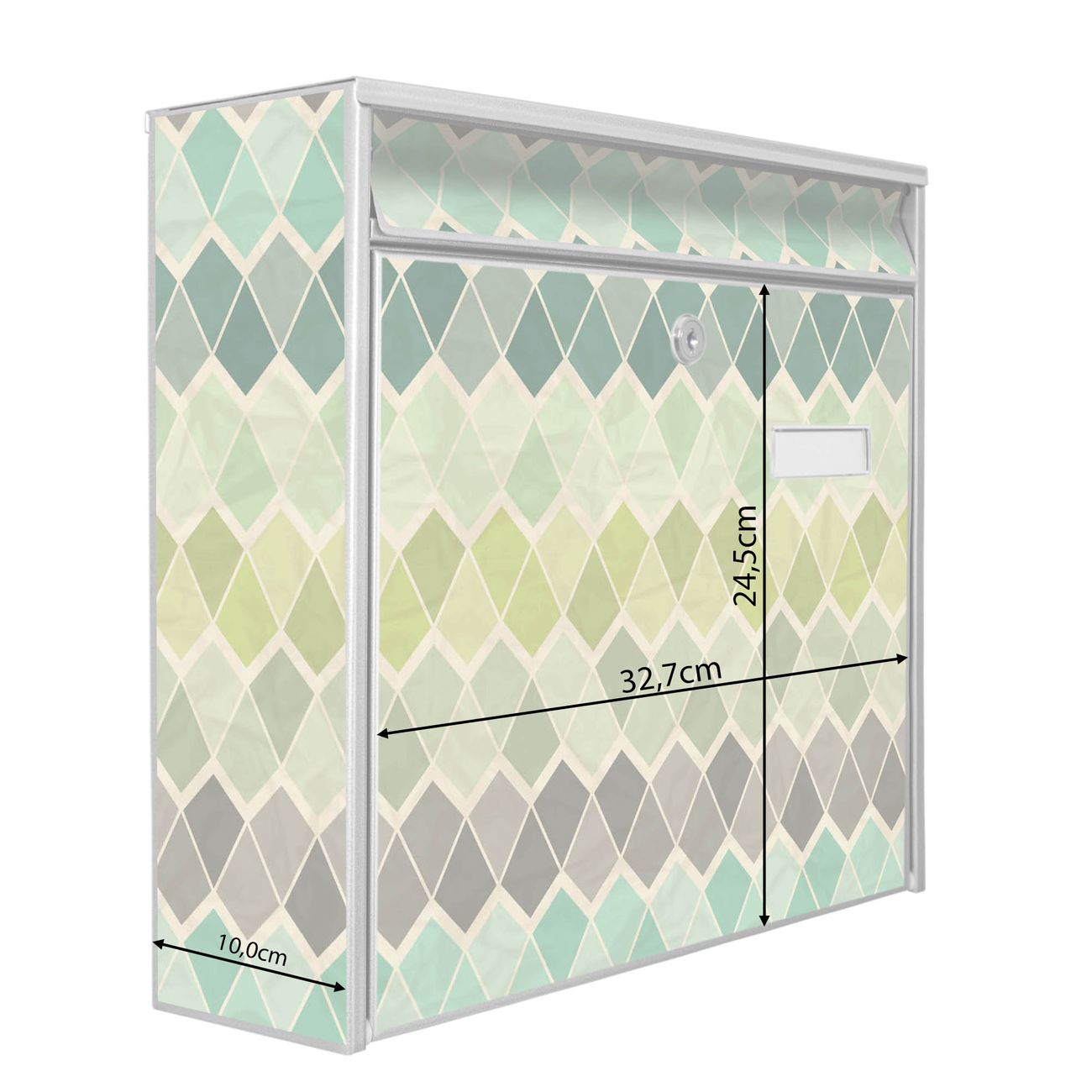 Die Größe des Briefkastens ist 36 x 32 x 10cm (BxHxT) groß. Das Motiv besteht aus einer wetter- und UV-festen Folie, die mit einem Schutzlaminat überzogen ist und Ihren Briefkasten zusätzlich vor Kratzern schützt. Sie erhalten 2 Schlüssel sowie das Montagematerial.