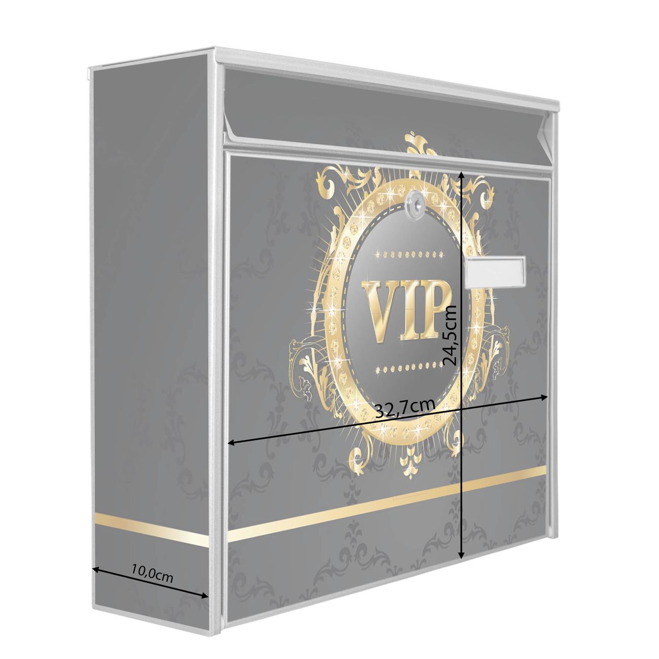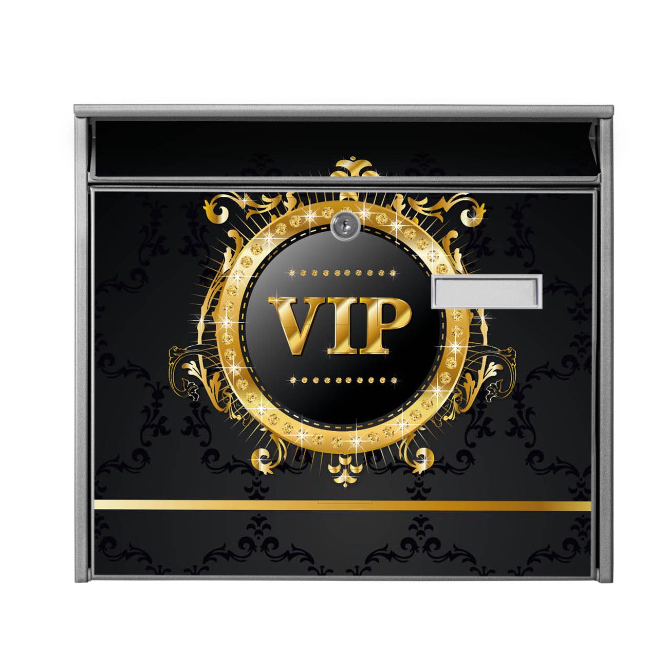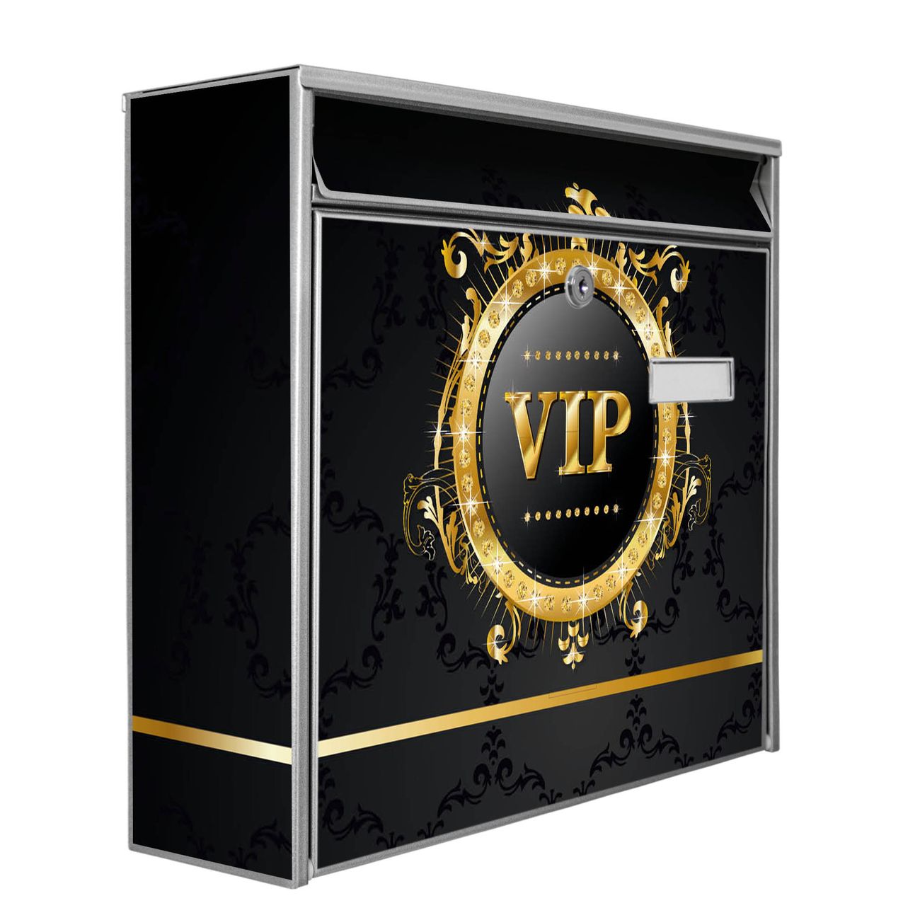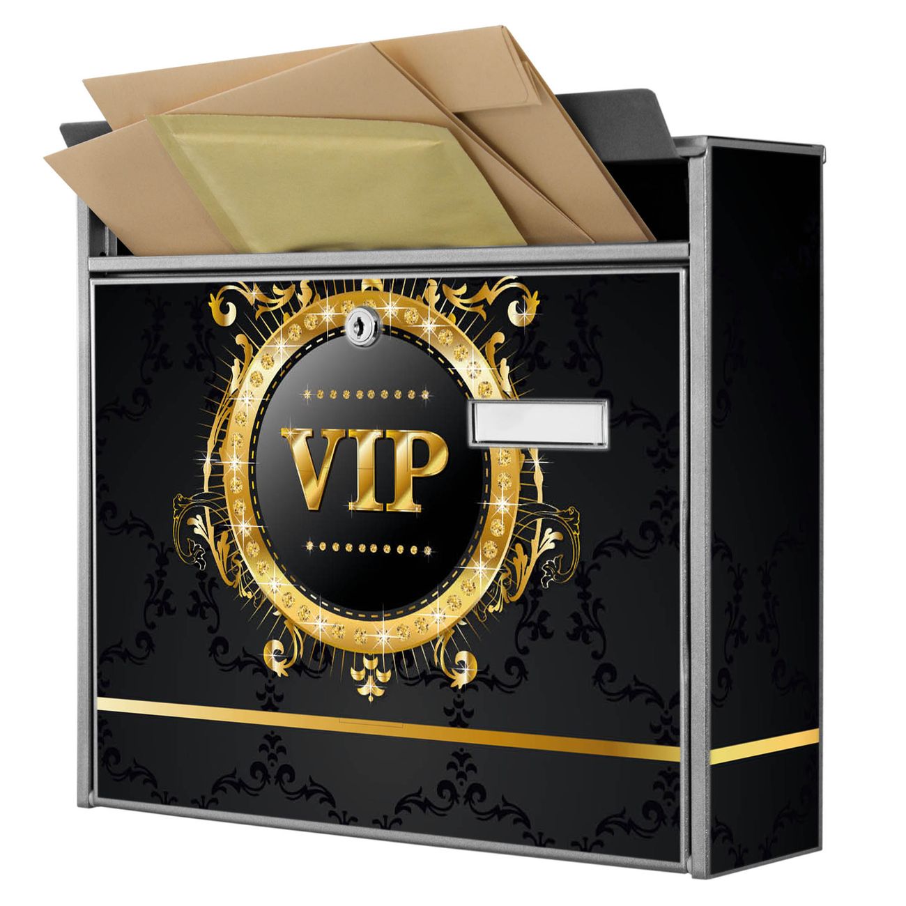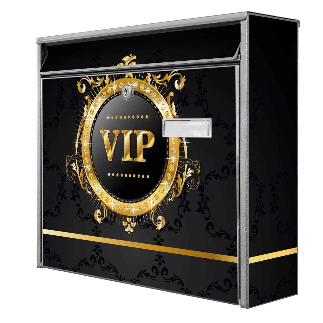 Der Postkasten mit Motiv VIP hat ein sehr ansprechendes und zeitloses Design. Heben Sie Sich von der tristen grauen Masse ab, ohne auf Funktionalität zu verzichten. Die weite Öffnung ohne scharfe Kanten ermöglicht eine einfache Handhabung beim Entnehmen der Post. Die Größe bietet genügend Platz für Sendungen aller Art, der Einwurf fasst auch größere A4 Sendungen. Ihr Burg-Wächter Motivbriefkasten wird in Sachsen in einer kleinen Manufaktur von Hand veredelt. Die Motivfolie ist lösungsmittelfrei und schutzlaminiert, dies sorgt für einen langen Halt. Wir legen großen Wert auf die Verbindung von Funktionalität und Design.