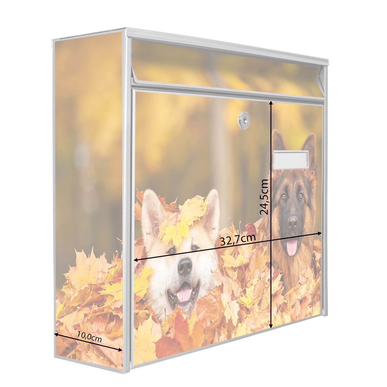Die Größe des Briefkastens ist 36 x 32 x 10cm (BxHxT) groß. Das Motiv besteht aus einer wetter- und UV-festen Folie, die mit einem Schutzlaminat überzogen ist und Ihren Briefkasten zusätzlich vor Kratzern schützt. Sie erhalten 2 Schlüssel sowie das Montagematerial.
