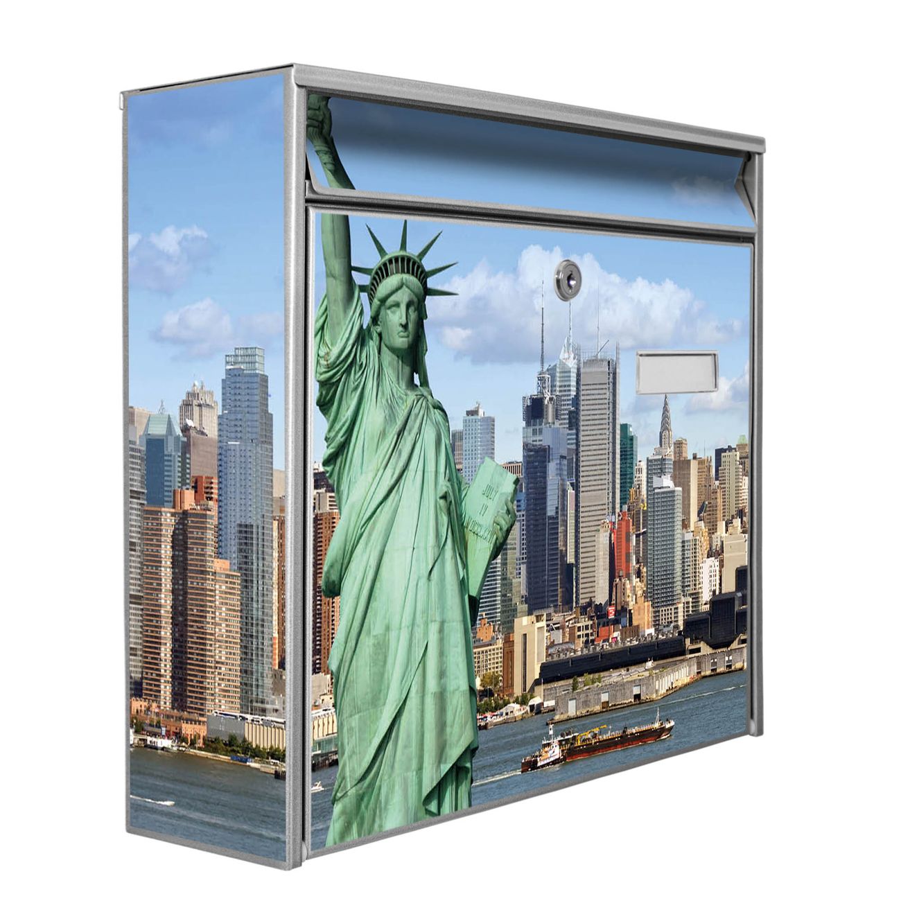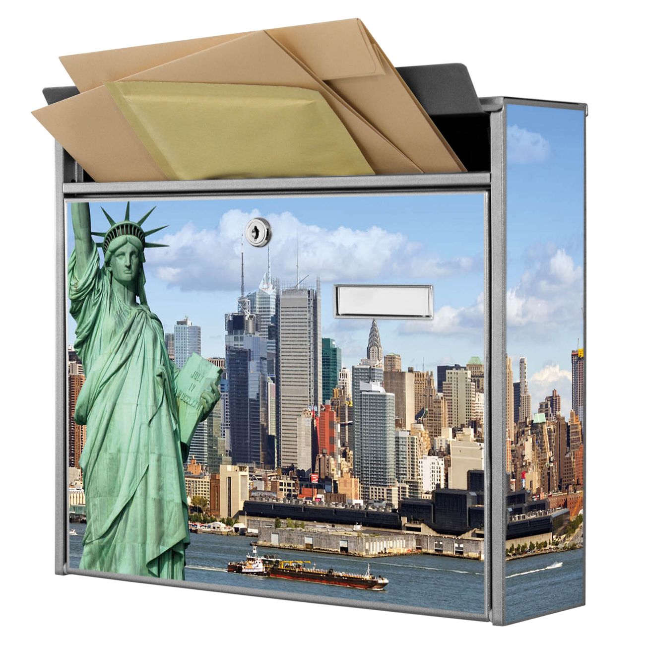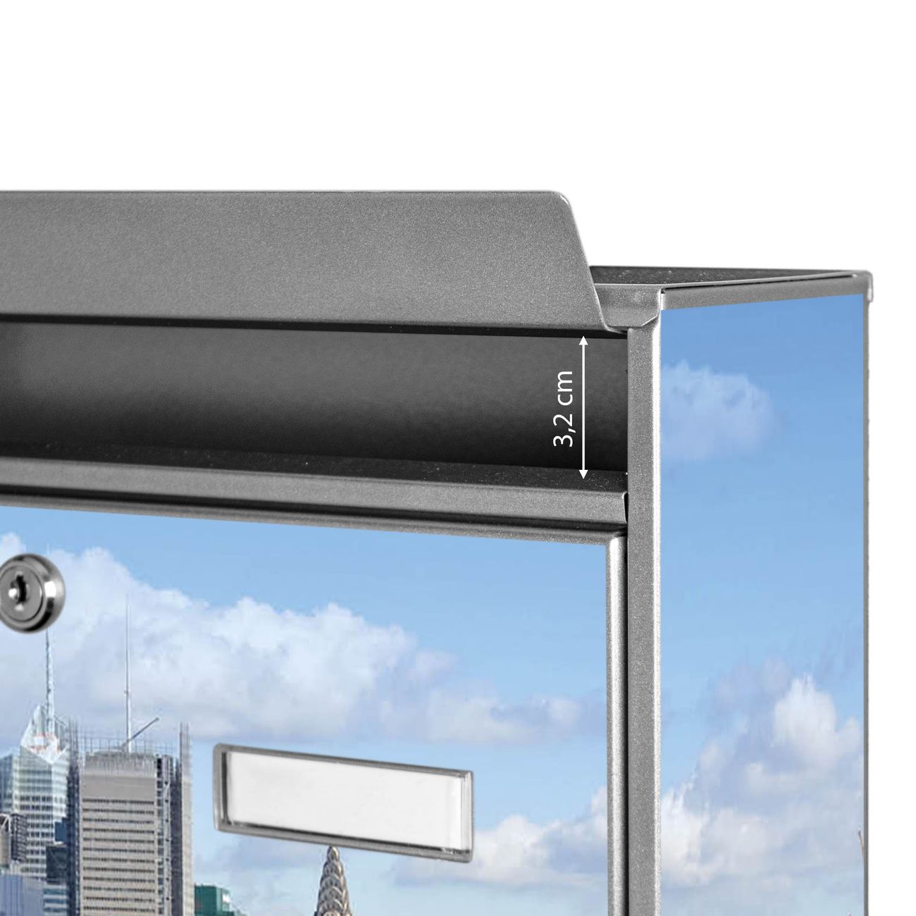 Der Postkasten mit Motiv Welcome To NY hat ein sehr ansprechendes und zeitloses Design. Heben Sie Sich von der tristen grauen Masse ab, ohne auf Funktionalität zu verzichten. Die weite Öffnung ohne scharfe Kanten ermöglicht eine einfache Handhabung beim Entnehmen der Post. Die Größe bietet genügend Platz für Sendungen aller Art, der Einwurf fasst auch größere A4 Sendungen. Ihr Burg-Wächter Motivbriefkasten wird in Sachsen in einer kleinen Manufaktur von Hand veredelt. Die Motivfolie ist lösungsmittelfrei und schutzlaminiert, dies sorgt für einen langen Halt. Wir legen großen Wert auf die Verbindung von Funktionalität und Design.