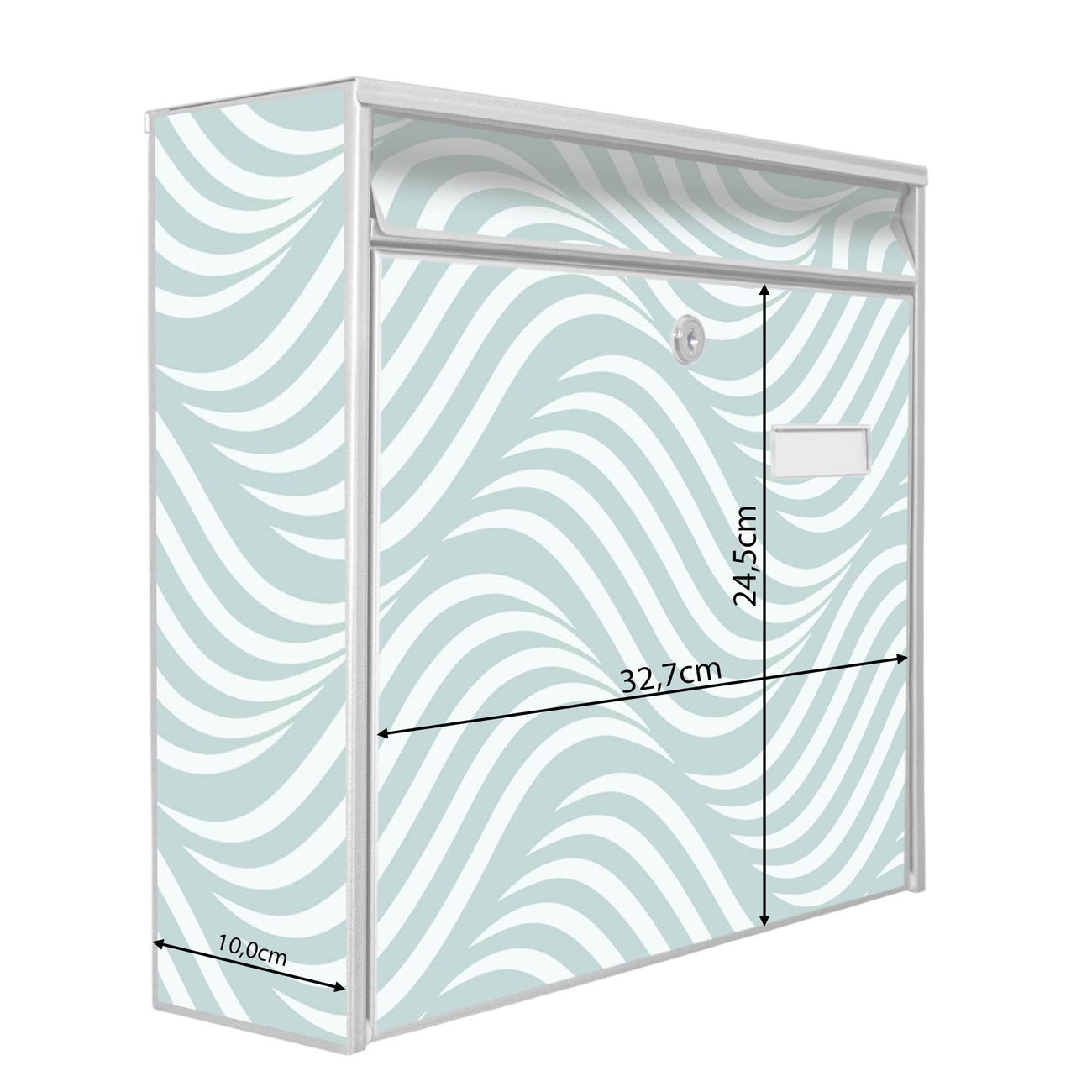 Der Burg Wächter Mail Briefkasten mit Motiv Wellen Lindgrün bietet Ihnen mit seinem Fassungsvermögen genügend Platz auch für große A4 Sendungen. Auf Wunsch können Sie bei uns den passenden Standfuß kaufen und so aus dem Wandbriefkasten einen Standbriefkasten machen. Wir bieten Ihnen ebenfalls Namensschilder, bereits beschriftet oder frei zu beschriften, und verschiedene selbst gestaltete Bitte-Keine-Werbung-Aufkleber.