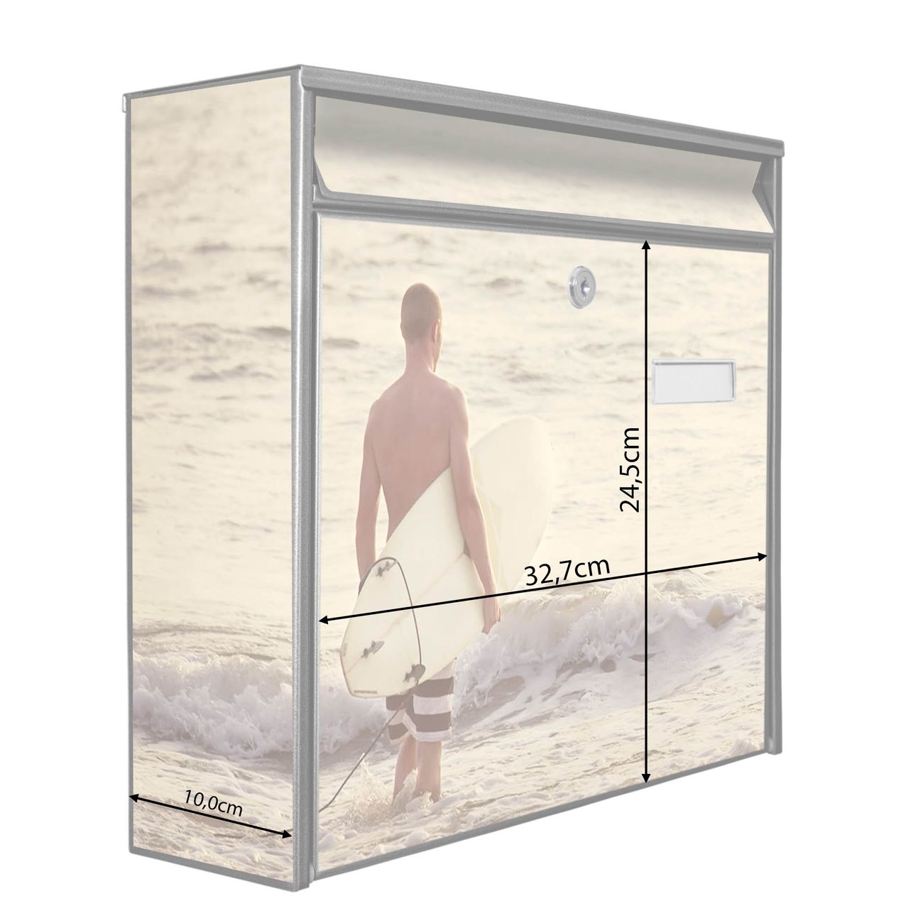Der Burg Wächter Mail Briefkasten mit Motiv Wellenreiten Gehen 2 bietet Ihnen mit seinem Fassungsvermögen genügend Platz auch für große A4 Sendungen. Auf Wunsch können Sie bei uns den passenden Standfuß kaufen und so aus dem Wandbriefkasten einen Standbriefkasten machen. Wir bieten Ihnen ebenfalls Namensschilder, bereits beschriftet oder frei zu beschriften, und verschiedene selbst gestaltete Bitte-Keine-Werbung-Aufkleber.