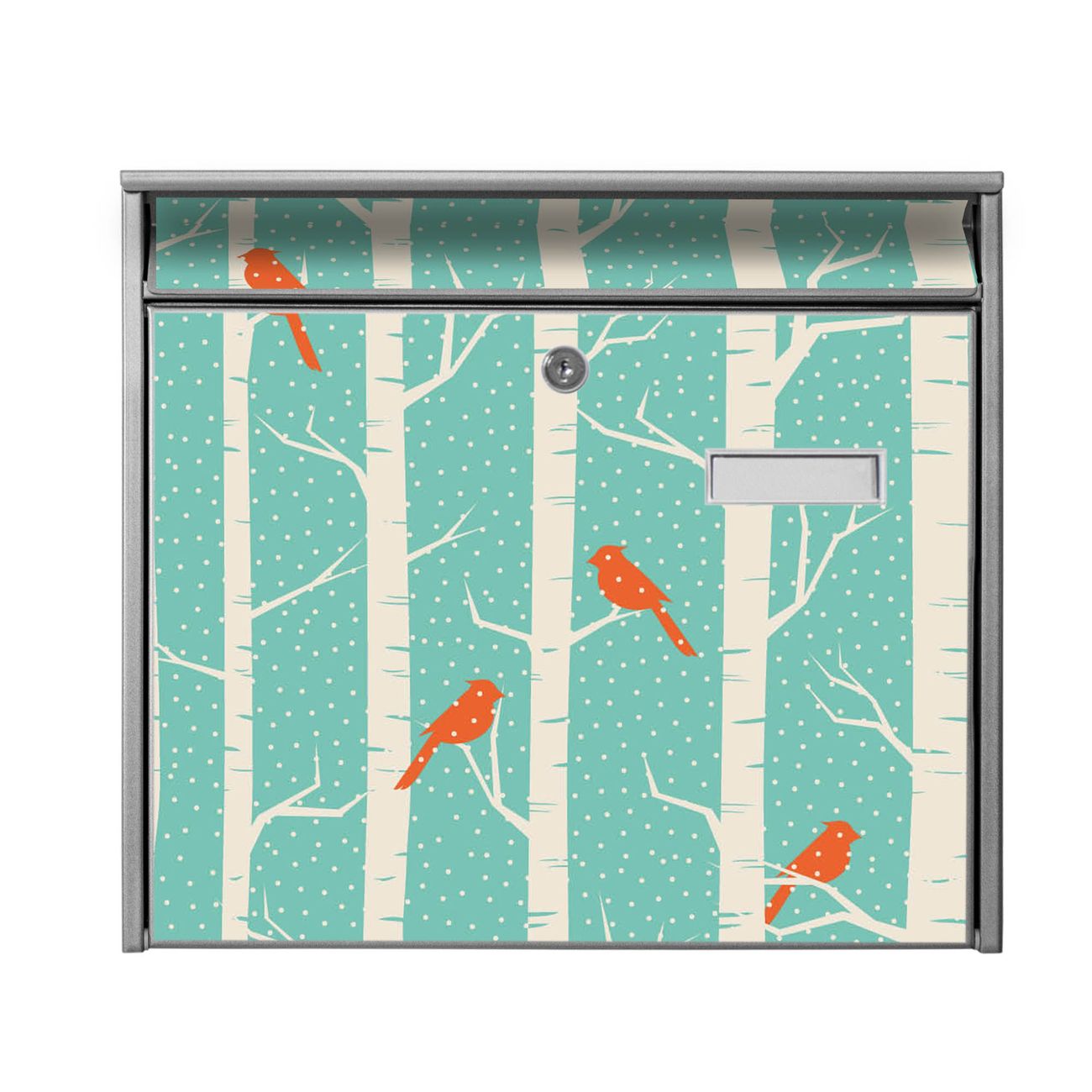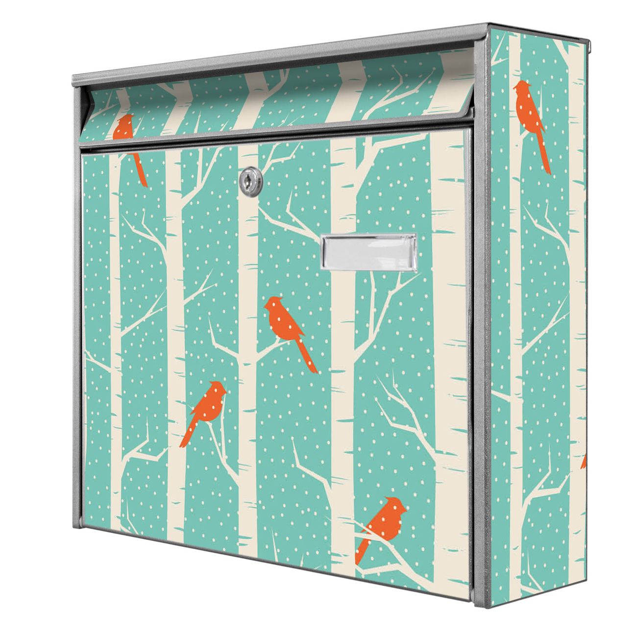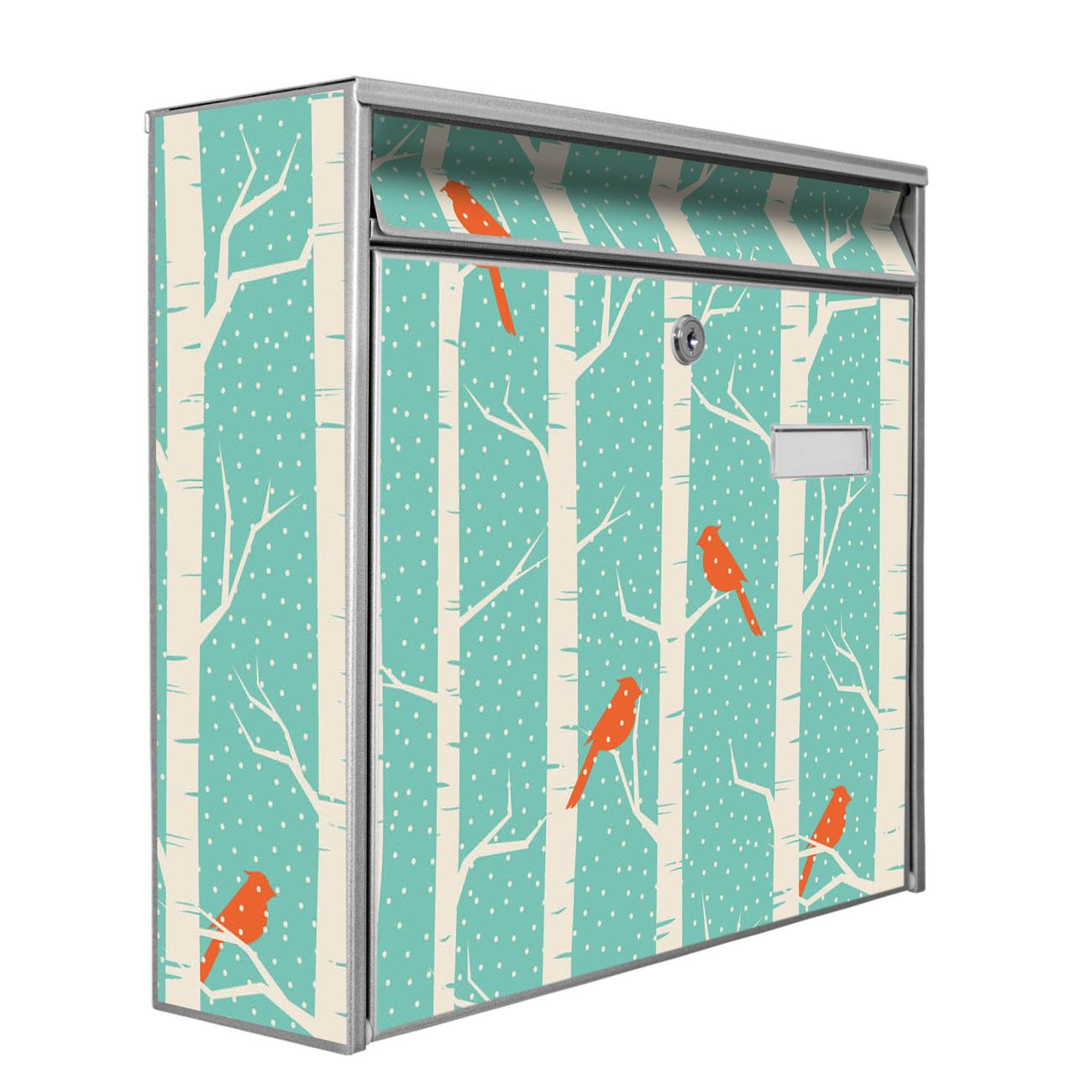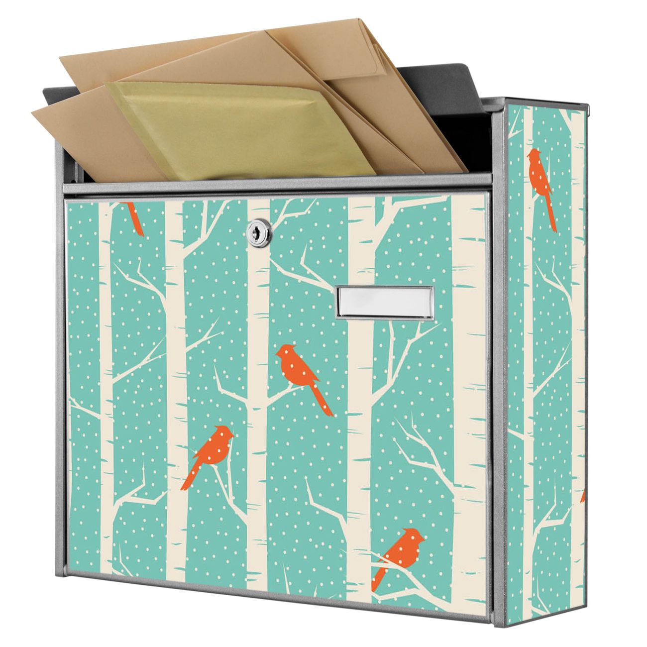 Der Burg Wächter Mail Briefkasten mit Motiv Wintervögel bietet Ihnen mit seinem Fassungsvermögen genügend Platz auch für große A4 Sendungen. Auf Wunsch können Sie bei uns den passenden Standfuß kaufen und so aus dem Wandbriefkasten einen Standbriefkasten machen. Wir bieten Ihnen ebenfalls Namensschilder, bereits beschriftet oder frei zu beschriften, und verschiedene selbst gestaltete Bitte-Keine-Werbung-Aufkleber.
