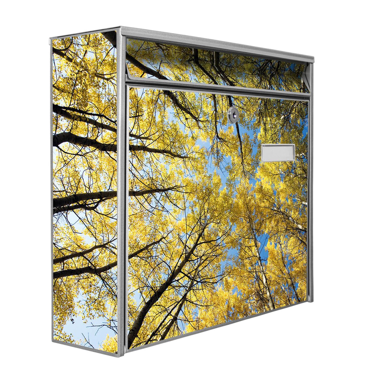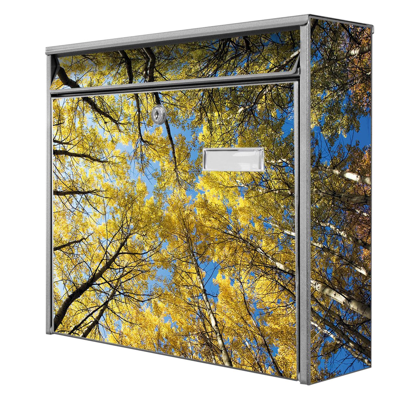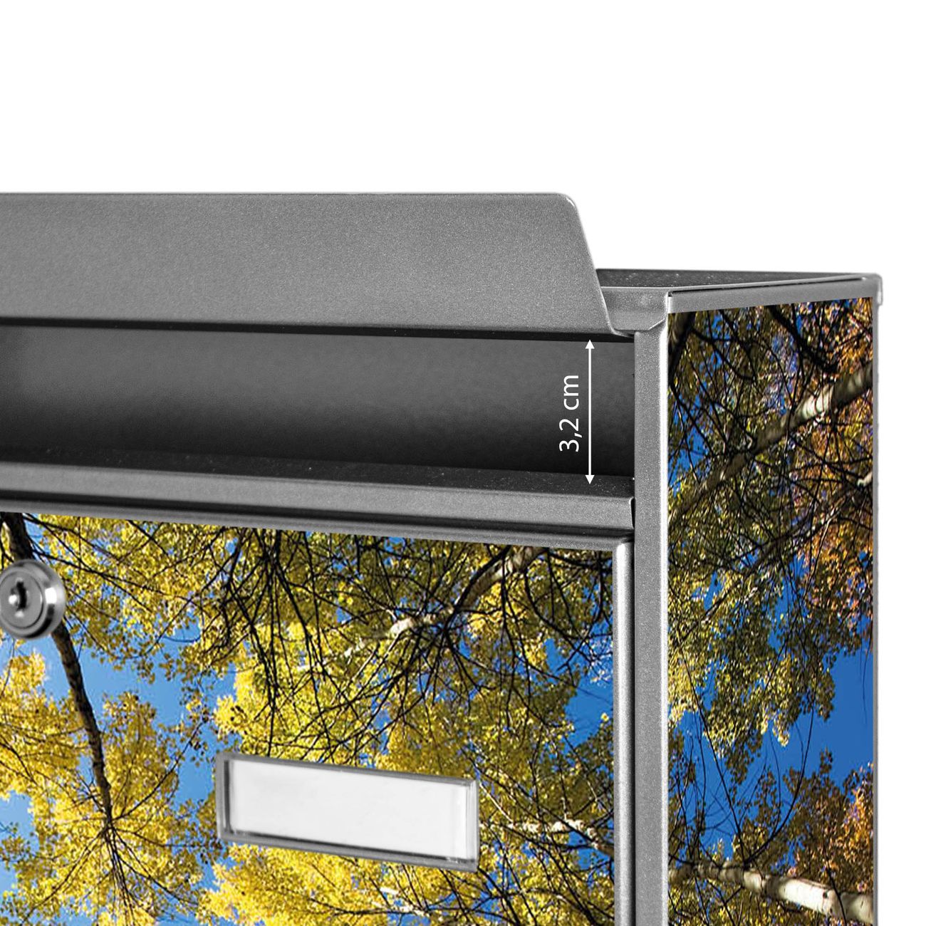 Der Postkasten mit Motiv Wipfel hat ein sehr ansprechendes und zeitloses Design. Heben Sie Sich von der tristen grauen Masse ab, ohne auf Funktionalität zu verzichten. Die weite Öffnung ohne scharfe Kanten ermöglicht eine einfache Handhabung beim Entnehmen der Post. Die Größe bietet genügend Platz für Sendungen aller Art, der Einwurf fasst auch größere A4 Sendungen. Ihr Burg-Wächter Motivbriefkasten wird in Sachsen in einer kleinen Manufaktur von Hand veredelt. Die Motivfolie ist lösungsmittelfrei und schutzlaminiert, dies sorgt für einen langen Halt. Wir legen großen Wert auf die Verbindung von Funktionalität und Design.