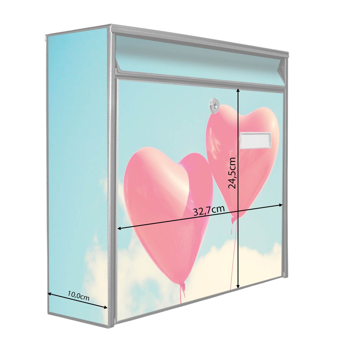 Die Größe des Briefkastens ist 36 x 32 x 10cm (BxHxT) groß. Das Motiv besteht aus einer wetter- und UV-festen Folie, die mit einem Schutzlaminat überzogen ist und Ihren Briefkasten zusätzlich vor Kratzern schützt. Sie erhalten 2 Schlüssel sowie das Montagematerial.