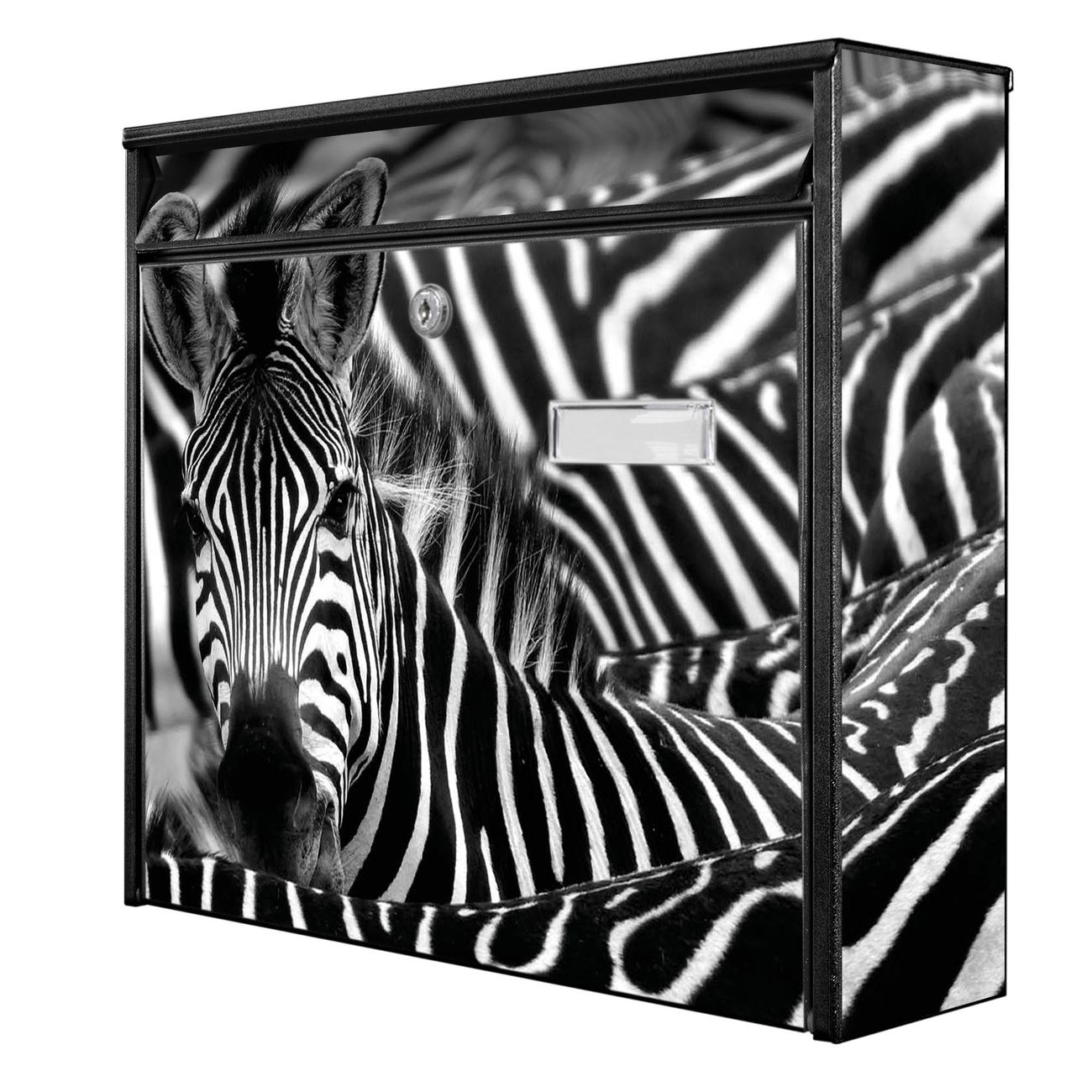Der Burg Wächter Mail Briefkasten mit Motiv Zebras bietet Ihnen mit seinem Fassungsvermögen genügend Platz auch für große A4 Sendungen. Auf Wunsch können Sie bei uns den passenden Standfuß kaufen und so aus dem Wandbriefkasten einen Standbriefkasten machen. Wir bieten Ihnen ebenfalls Namensschilder, bereits beschriftet oder frei zu beschriften, und verschiedene selbst gestaltete Bitte-Keine-Werbung-Aufkleber.