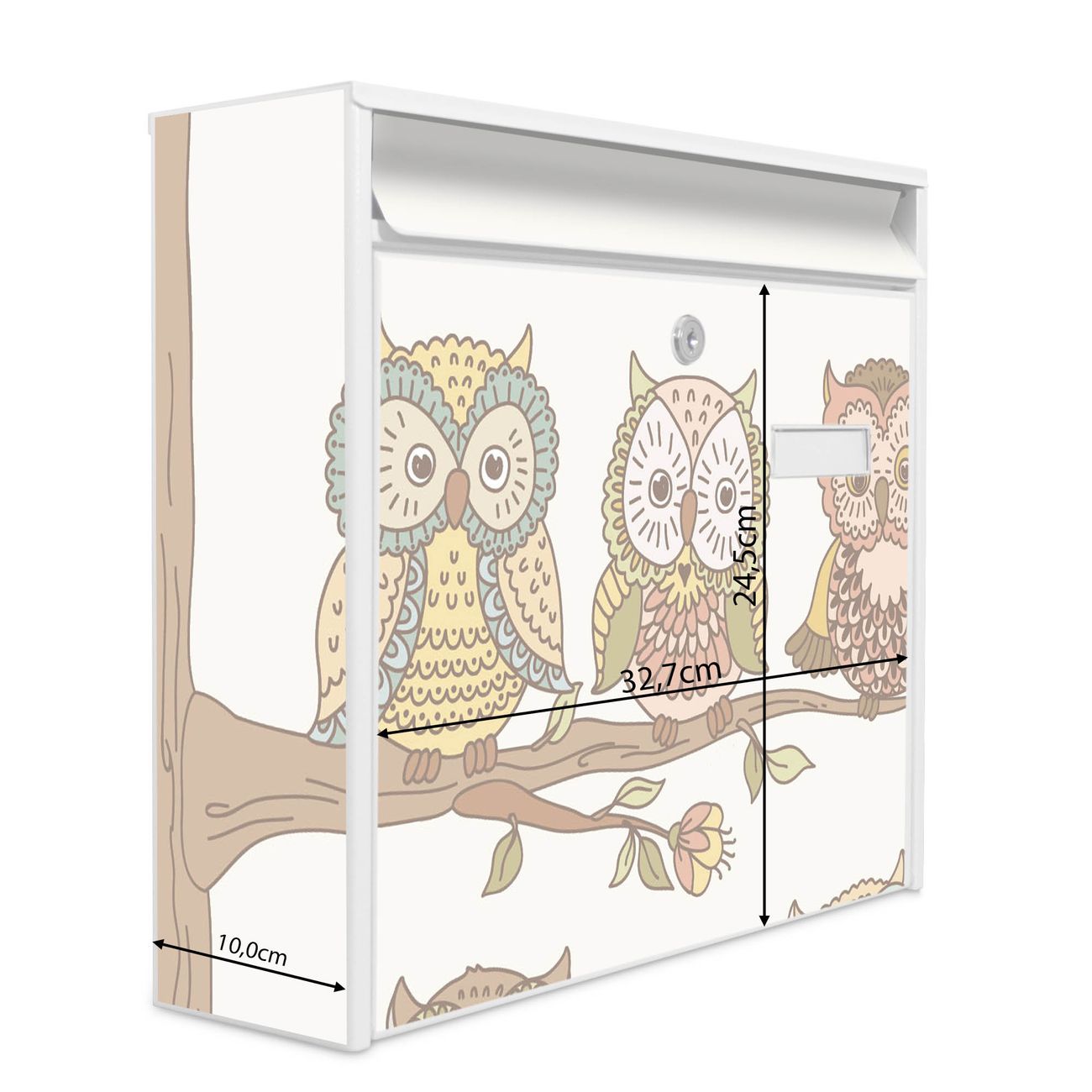 Die Größe des Briefkastens ist 36 x 32 x 10cm (BxHxT) groß. Das Motiv besteht aus einer wetter- und UV-festen Folie, die mit einem Schutzlaminat überzogen ist und Ihren Briefkasten zusätzlich vor Kratzern schützt. Sie erhalten 2 Schlüssel sowie das Montagematerial.