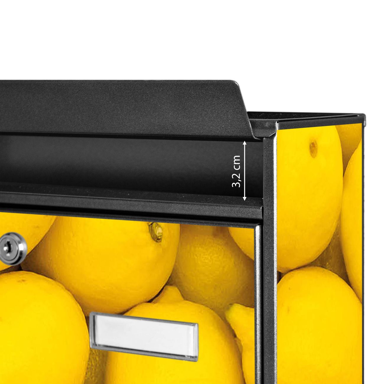 Der Burg Wächter Mail Briefkasten mit Motiv Zitronen bietet Ihnen mit seinem Fassungsvermögen genügend Platz auch für große A4 Sendungen. Auf Wunsch können Sie bei uns den passenden Standfuß kaufen und so aus dem Wandbriefkasten einen Standbriefkasten machen. Wir bieten Ihnen ebenfalls Namensschilder, bereits beschriftet oder frei zu beschriften, und verschiedene selbst gestaltete Bitte-Keine-Werbung-Aufkleber.