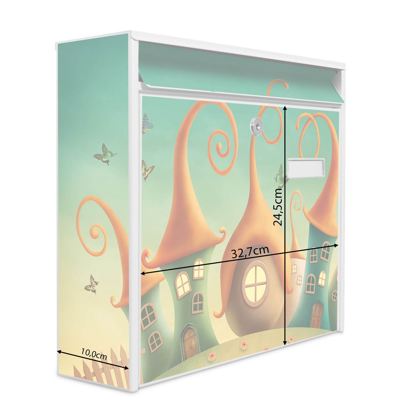 Der Postkasten mit Motiv Zwergenhausen hat ein sehr ansprechendes und zeitloses Design. Heben Sie Sich von der tristen grauen Masse ab, ohne auf Funktionalität zu verzichten. Die weite Öffnung ohne scharfe Kanten ermöglicht eine einfache Handhabung beim Entnehmen der Post. Die Größe bietet genügend Platz für Sendungen aller Art, der Einwurf fasst auch größere A4 Sendungen. Ihr Burg-Wächter Motivbriefkasten wird in Sachsen in einer kleinen Manufaktur von Hand veredelt. Die Motivfolie ist lösungsmittelfrei und schutzlaminiert, dies sorgt für einen langen Halt. Wir legen großen Wert auf die Verbindung von Funktionalität und Design.