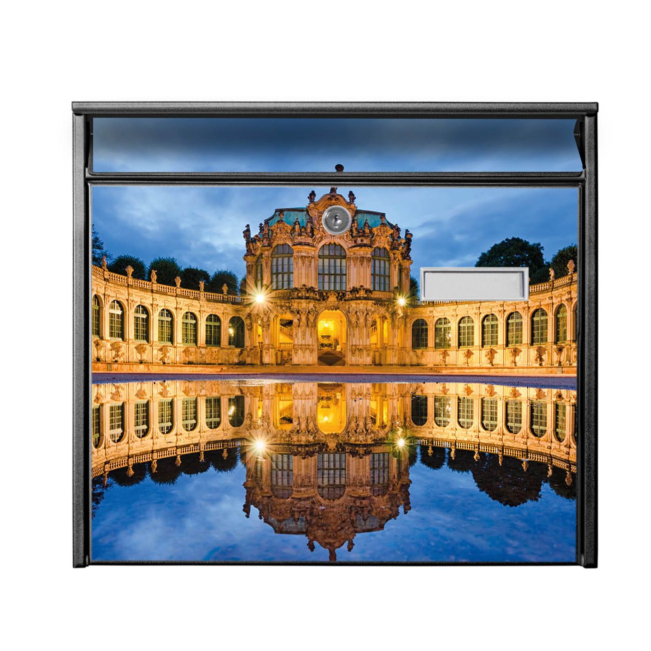 Der Postkasten mit Motiv Zwinger Dresden hat ein sehr ansprechendes und zeitloses Design. Heben Sie Sich von der tristen grauen Masse ab, ohne auf Funktionalität zu verzichten. Die weite Öffnung ohne scharfe Kanten ermöglicht eine einfache Handhabung beim Entnehmen der Post. Die Größe bietet genügend Platz für Sendungen aller Art, der Einwurf fasst auch größere A4 Sendungen. Ihr Burg-Wächter Motivbriefkasten wird in Sachsen in einer kleinen Manufaktur von Hand veredelt. Die Motivfolie ist lösungsmittelfrei und schutzlaminiert, dies sorgt für einen langen Halt. Wir legen großen Wert auf die Verbindung von Funktionalität und Design.
