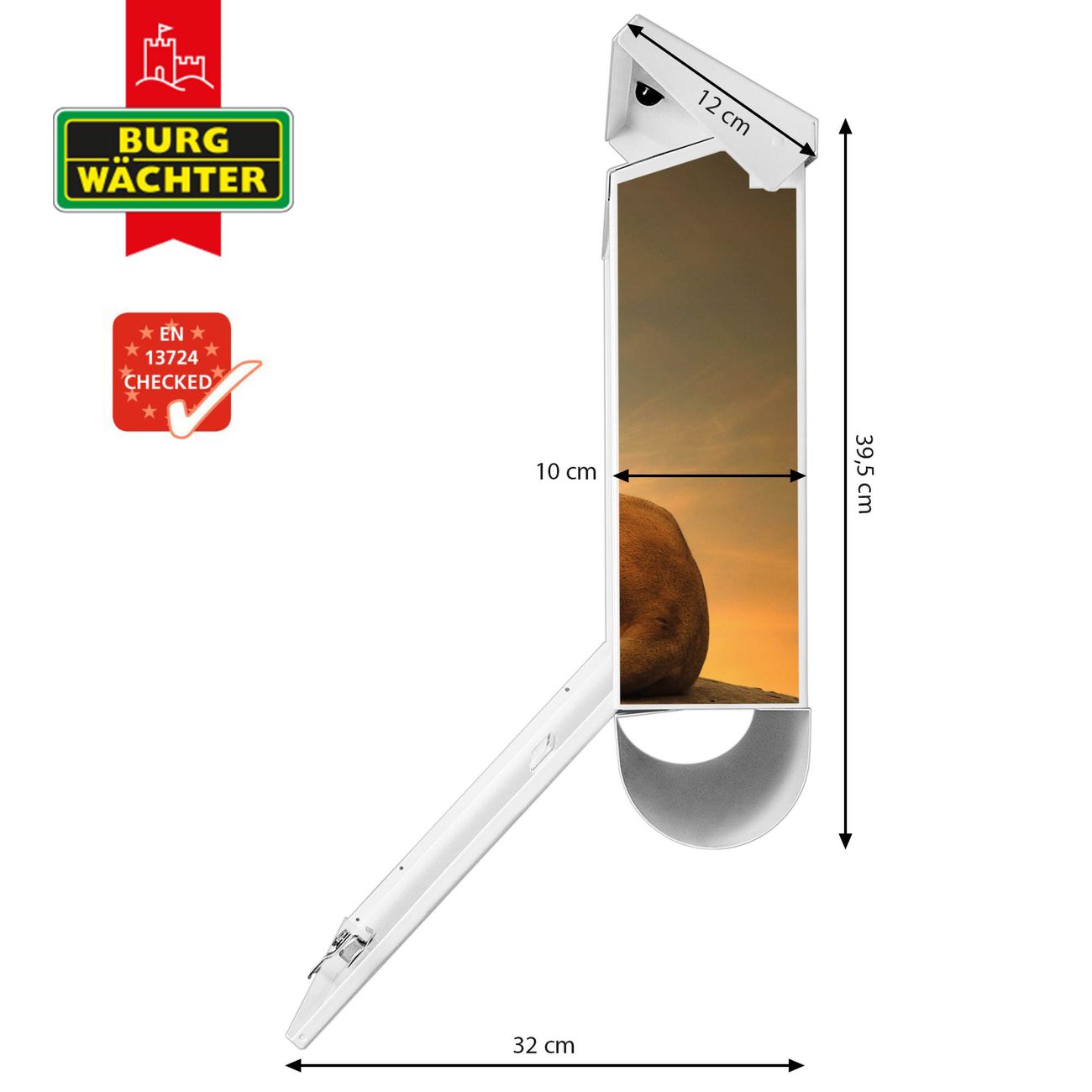 Der BURG-WÄCHTER Stahl Briefkasten mit Adrian Motiv bietet Ihnen mit seinem Fassungsvermögen genügend Platz auch für große A4 Sendungen und Zeitschriften. Das integrierte Regendach schützt Ihre Post vor dem Eindringen von Regen.