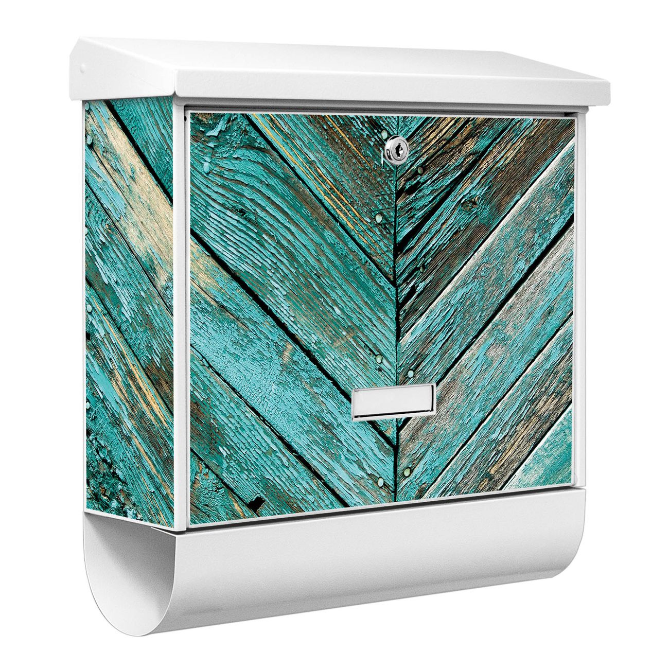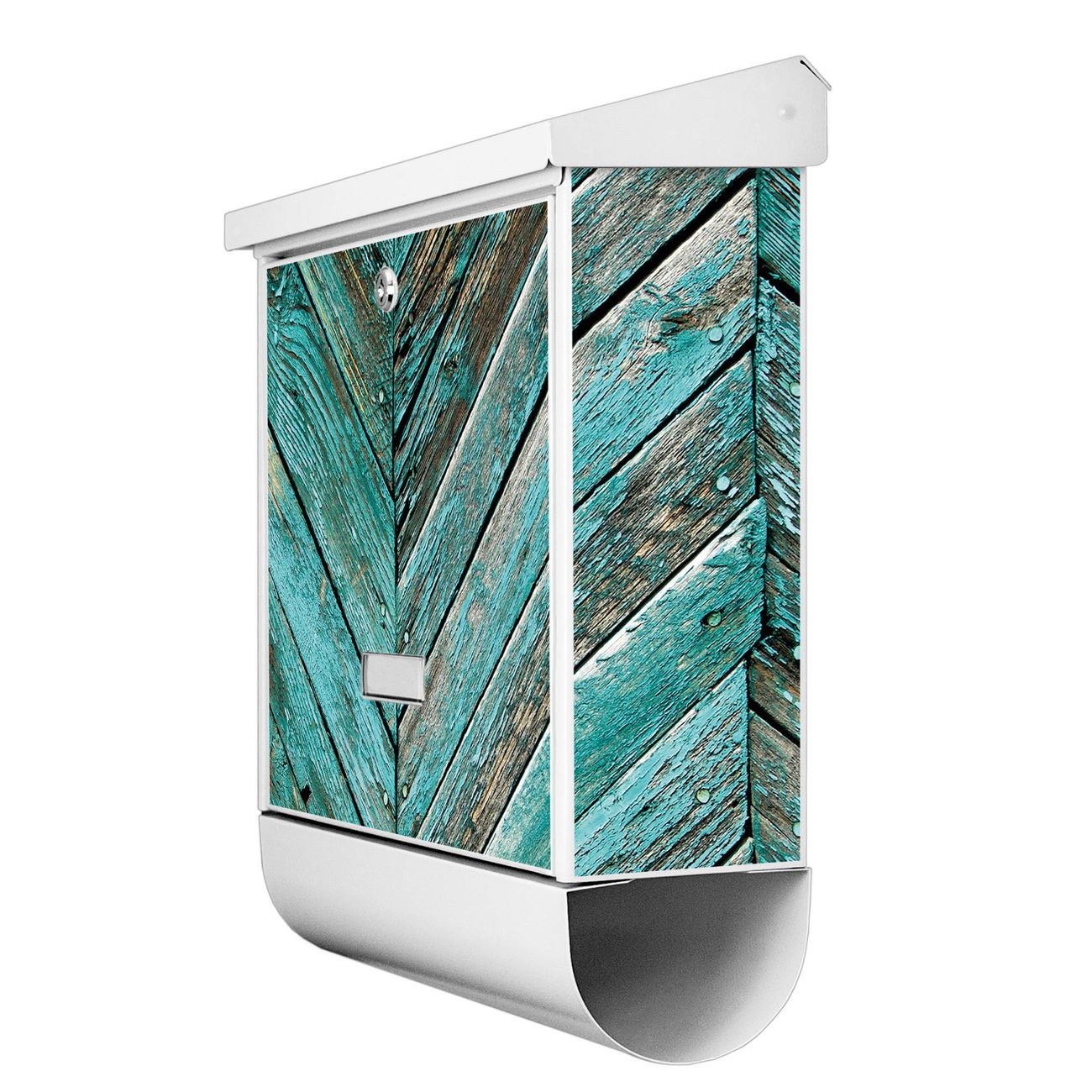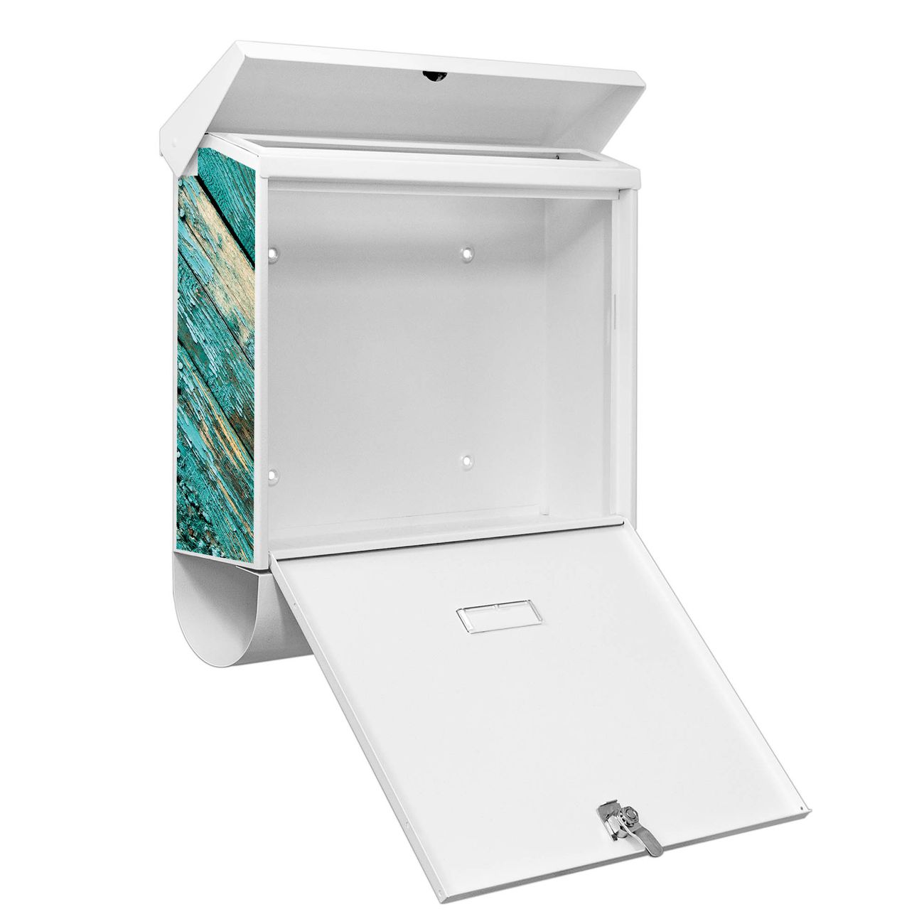 Der BURG-WÄCHTER Stahl Briefkasten mit Altes Holz Blau Motiv bietet Ihnen mit seinem Fassungsvermögen genügend Platz auch für große A4 Sendungen und Zeitschriften. Das integrierte Regendach schützt Ihre Post vor dem Eindringen von Regen.