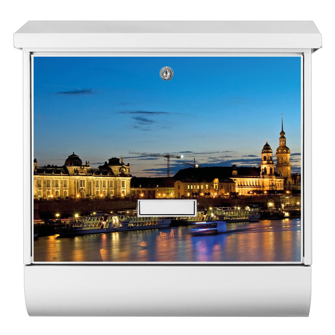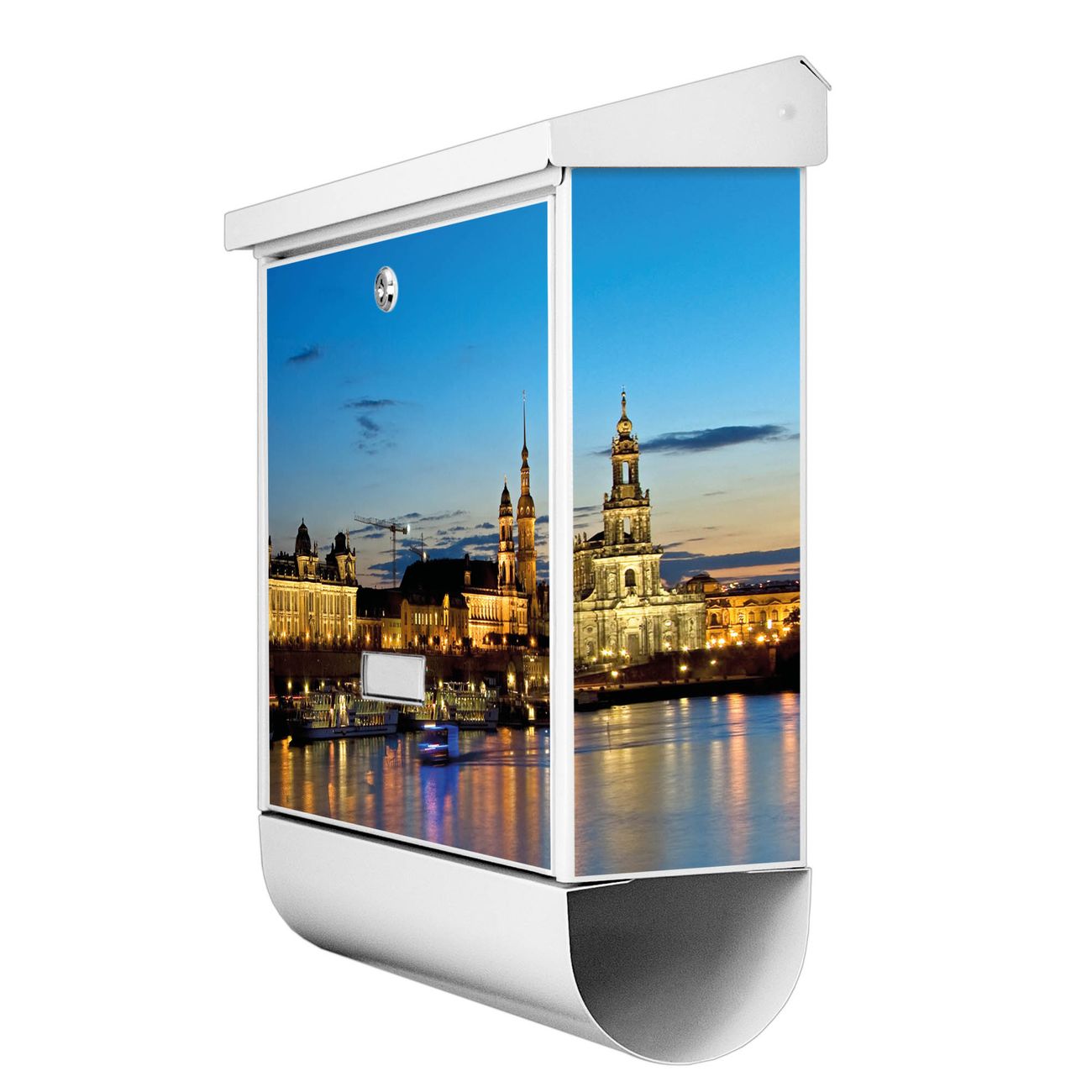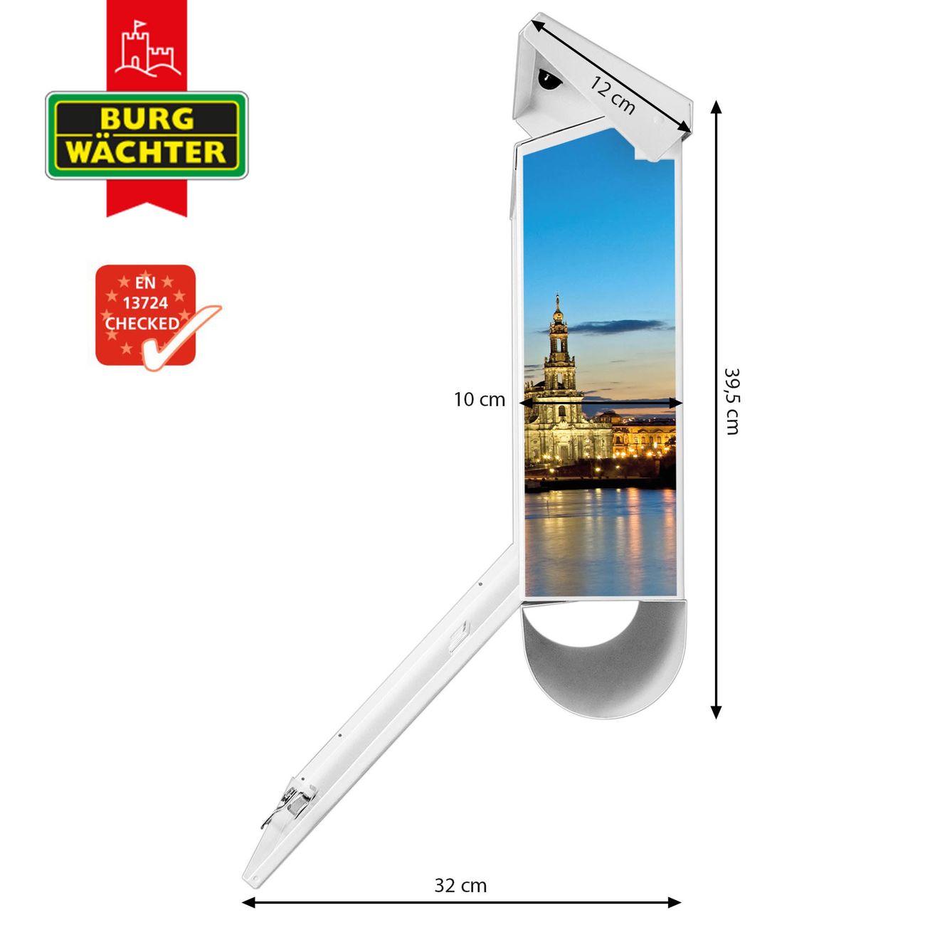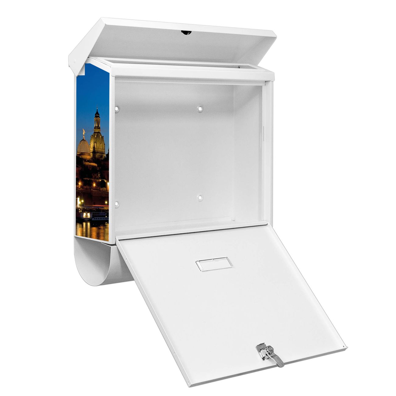 Der BURG-WÄCHTER Stahl Briefkasten mit Altstadt Dresden Motiv bietet Ihnen mit seinem Fassungsvermögen genügend Platz auch für große A4 Sendungen und Zeitschriften. Das integrierte Regendach schützt Ihre Post vor dem Eindringen von Regen.