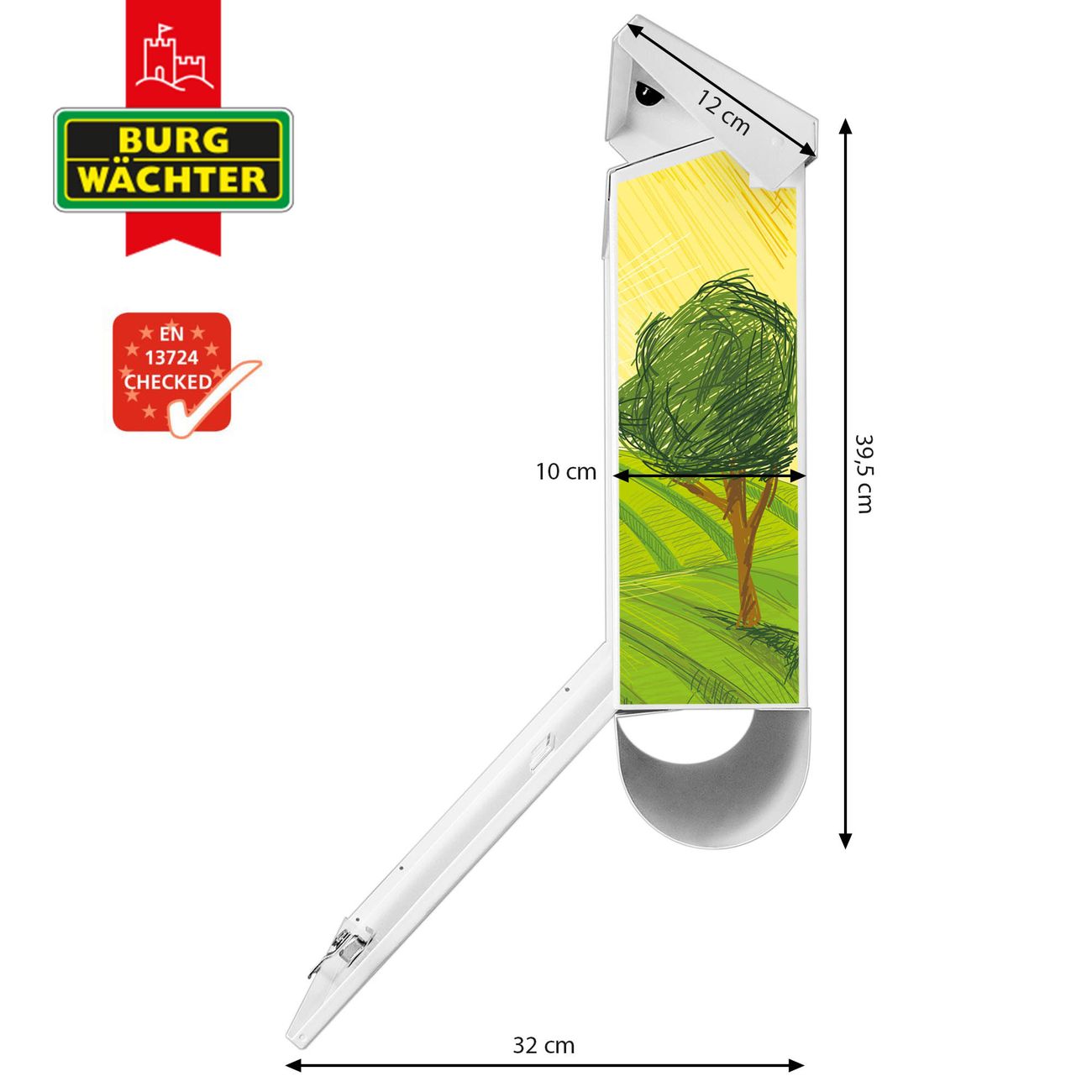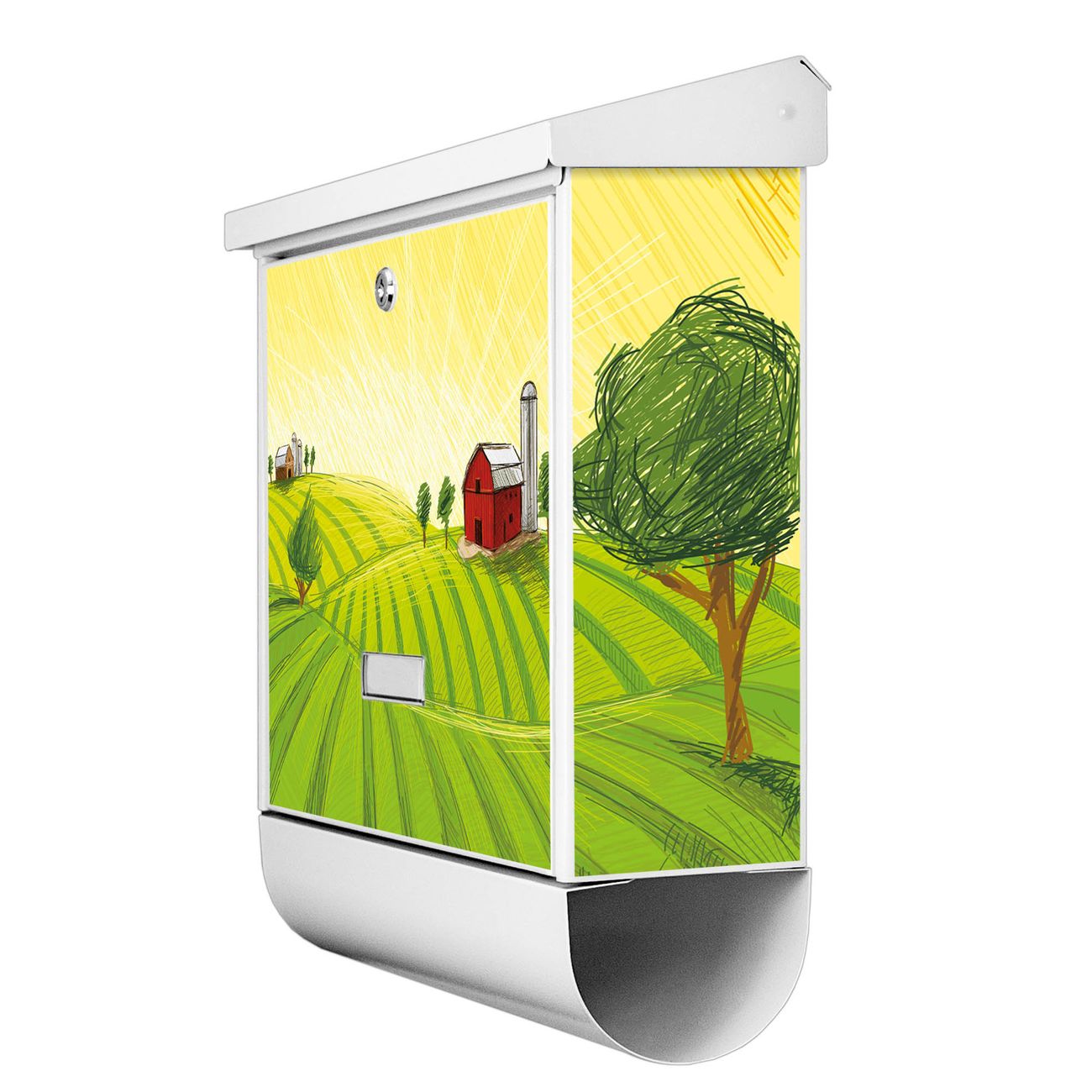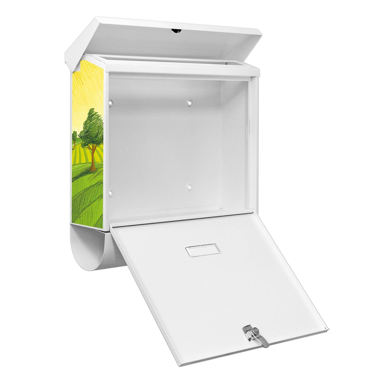 Der BURG-WÄCHTER Stahl Briefkasten mit Auf dem Land Motiv bietet Ihnen mit seinem Fassungsvermögen genügend Platz auch für große A4 Sendungen und Zeitschriften. Das integrierte Regendach schützt Ihre Post vor dem Eindringen von Regen.