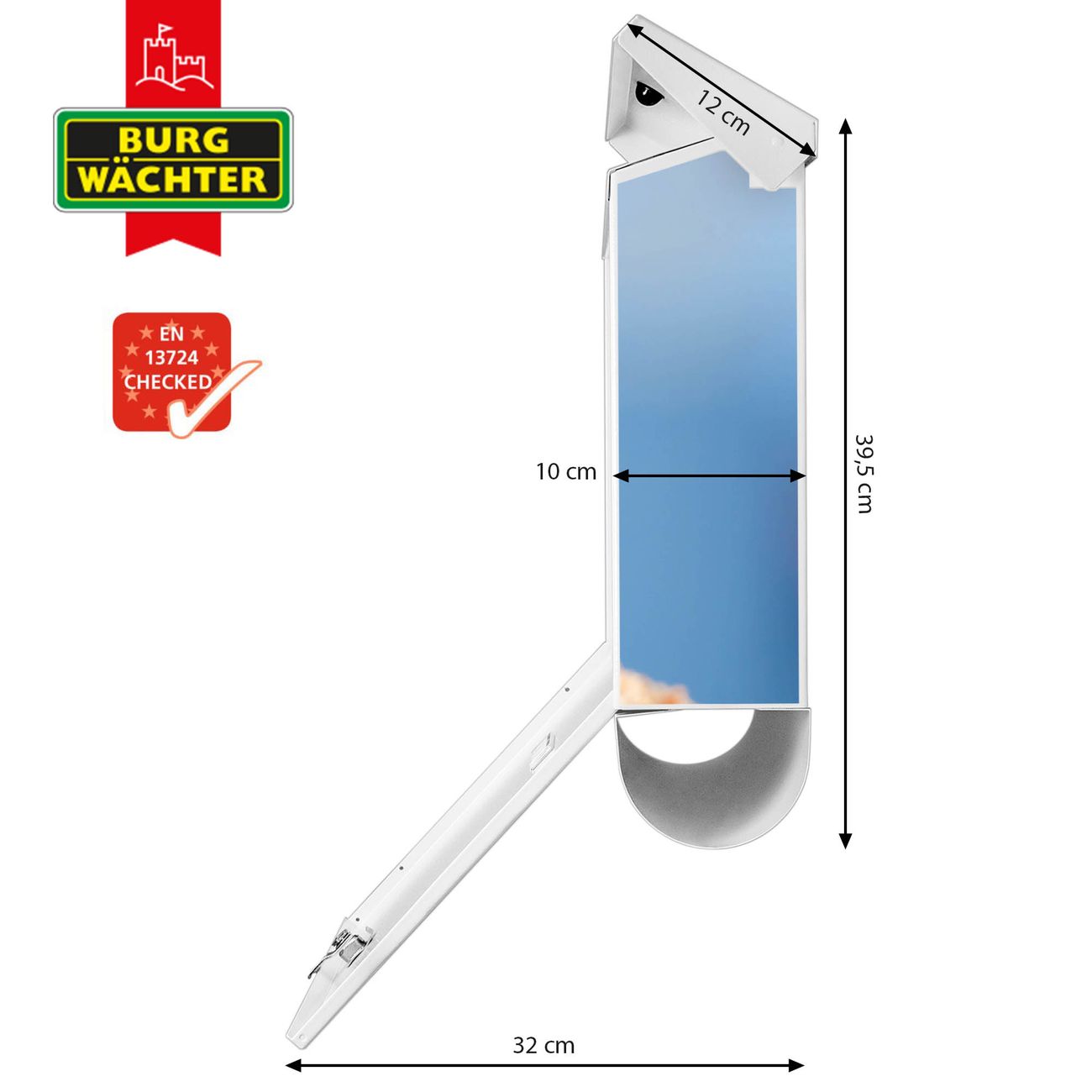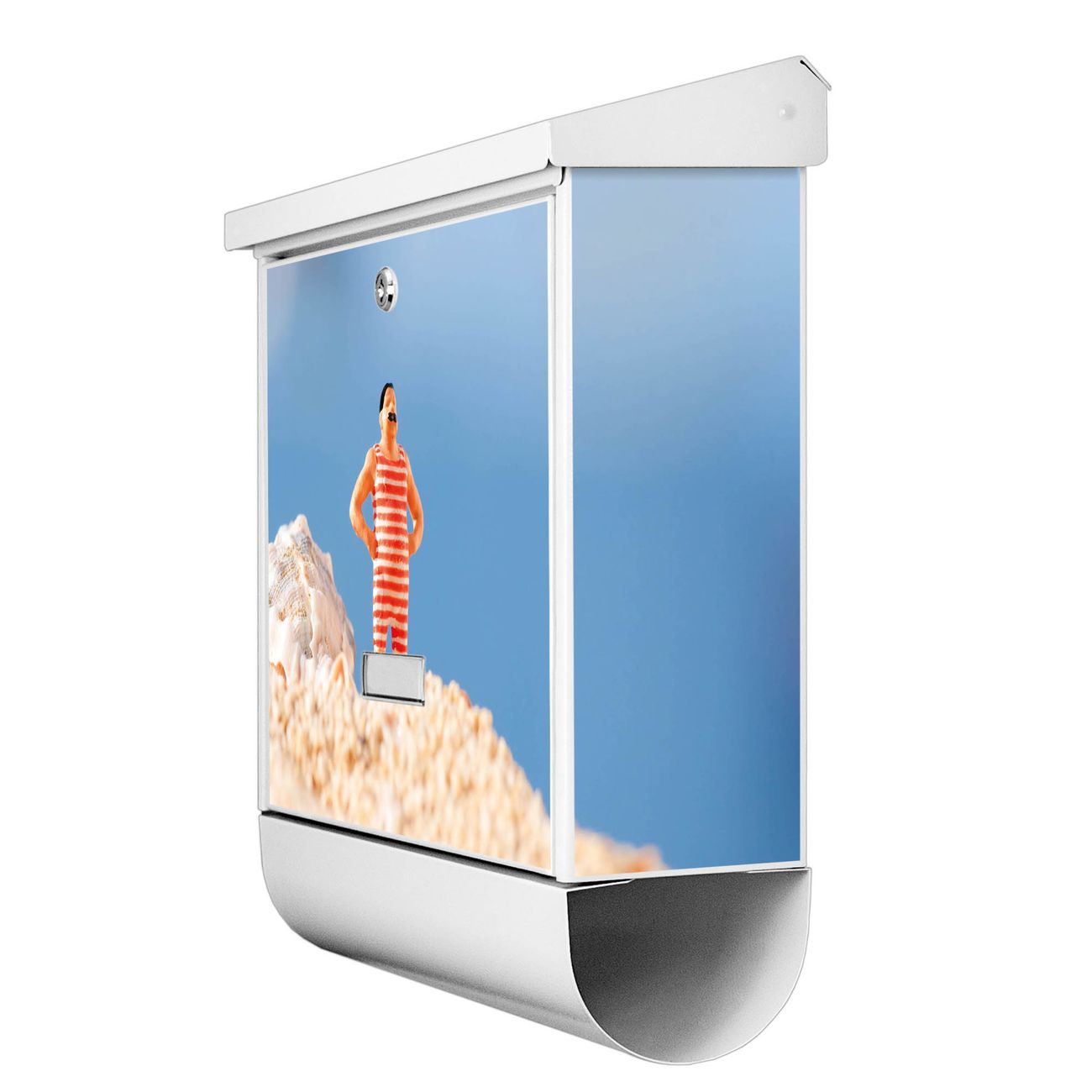 Der BURG-WÄCHTER Stahl Briefkasten mit Bademeister Motiv bietet Ihnen mit seinem Fassungsvermögen genügend Platz auch für große A4 Sendungen und Zeitschriften. Das integrierte Regendach schützt Ihre Post vor dem Eindringen von Regen.