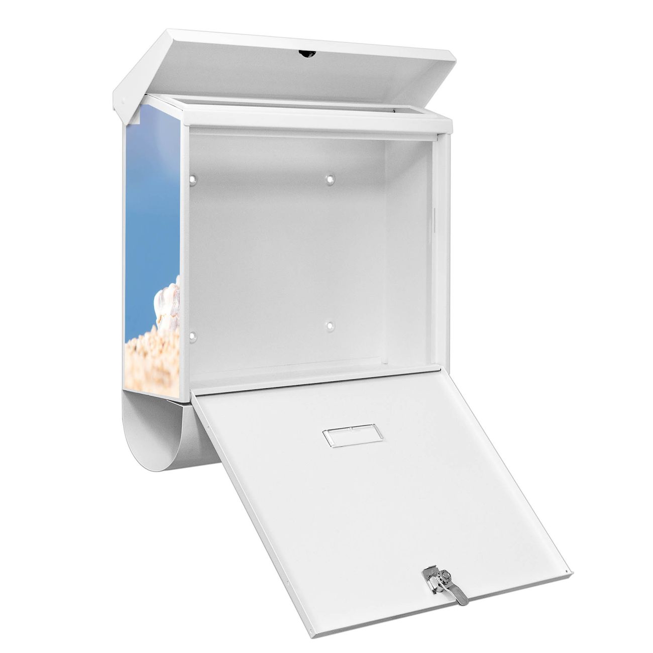 Sie können diesen Briefkasten sowohl als Wandbriefkasten montieren oder mit dem passenden Ständer als Standbriefkasten einbetonieren. Die gestaltete Motivfolie ist absolut wetterfest, UV-beständig und ein zusätzliches Schutzlaminat bewahrt Ihren Briefkasten vor unnötigen Kratzern. Das Namensschild kann frei beschriftet werden.