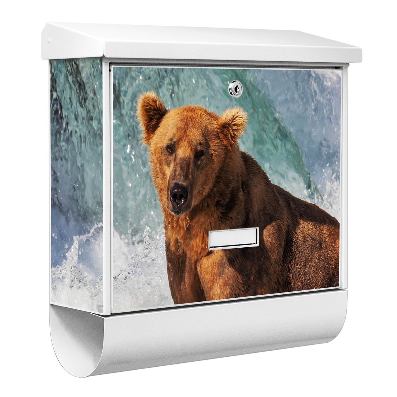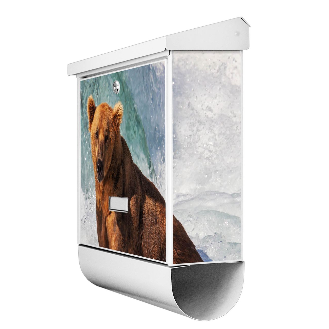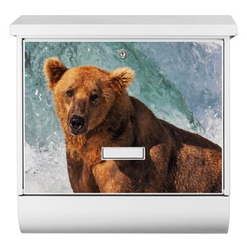 Der BURG-WÄCHTER Stahl Briefkasten mit Bär Im Wasser Motiv bietet Ihnen mit seinem Fassungsvermögen genügend Platz auch für große A4 Sendungen und Zeitschriften. Das integrierte Regendach schützt Ihre Post vor dem Eindringen von Regen.