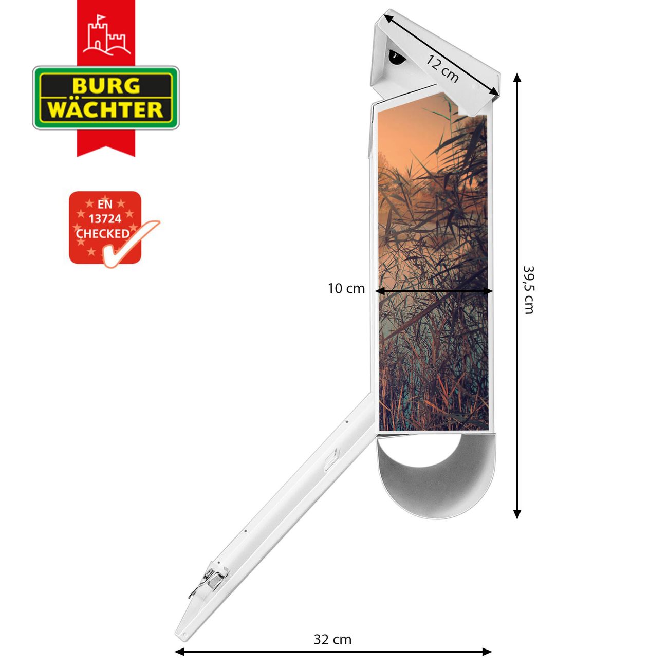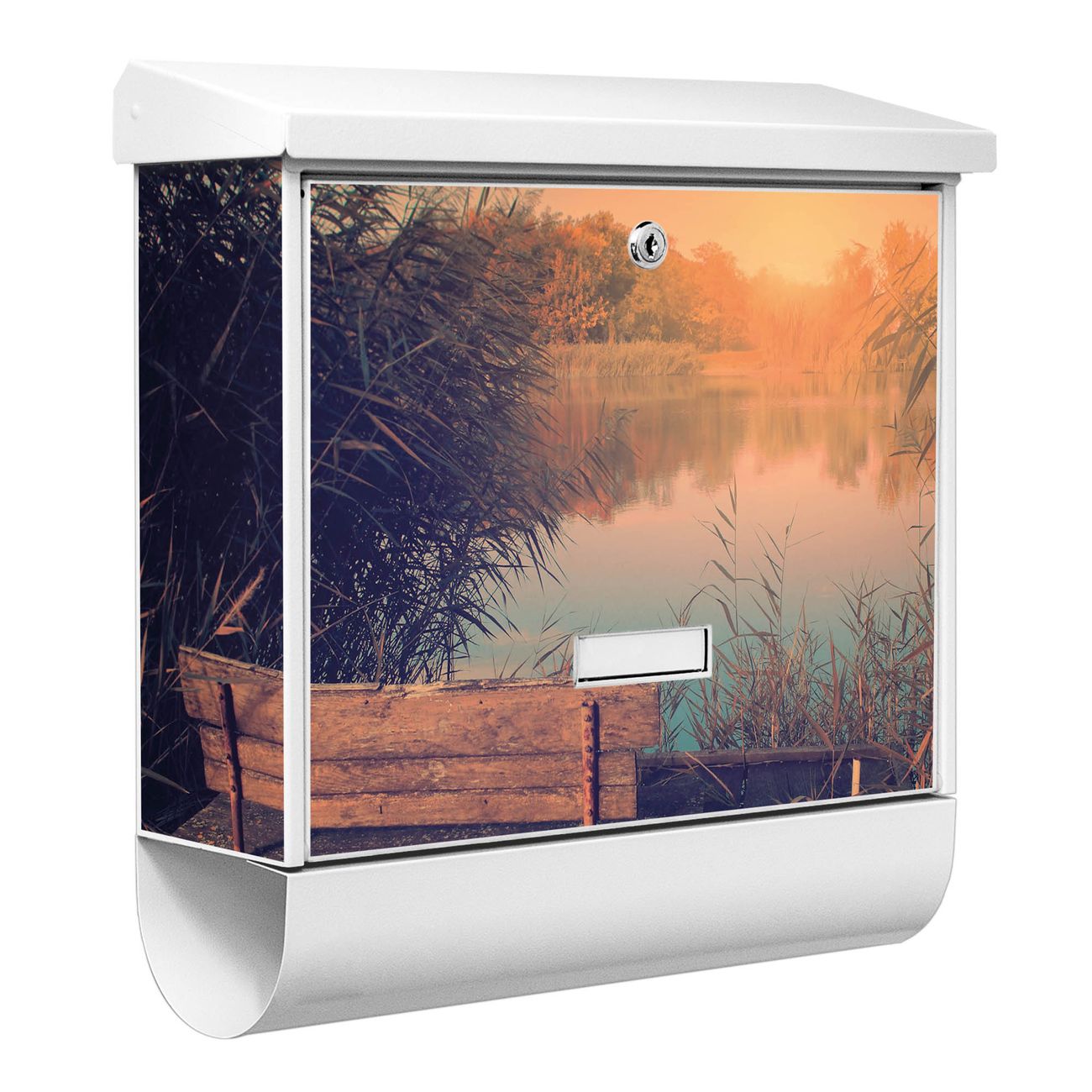 Der BURG-WÄCHTER Stahl Briefkasten mit Bank Am See Motiv bietet Ihnen mit seinem Fassungsvermögen genügend Platz auch für große A4 Sendungen und Zeitschriften. Das integrierte Regendach schützt Ihre Post vor dem Eindringen von Regen.