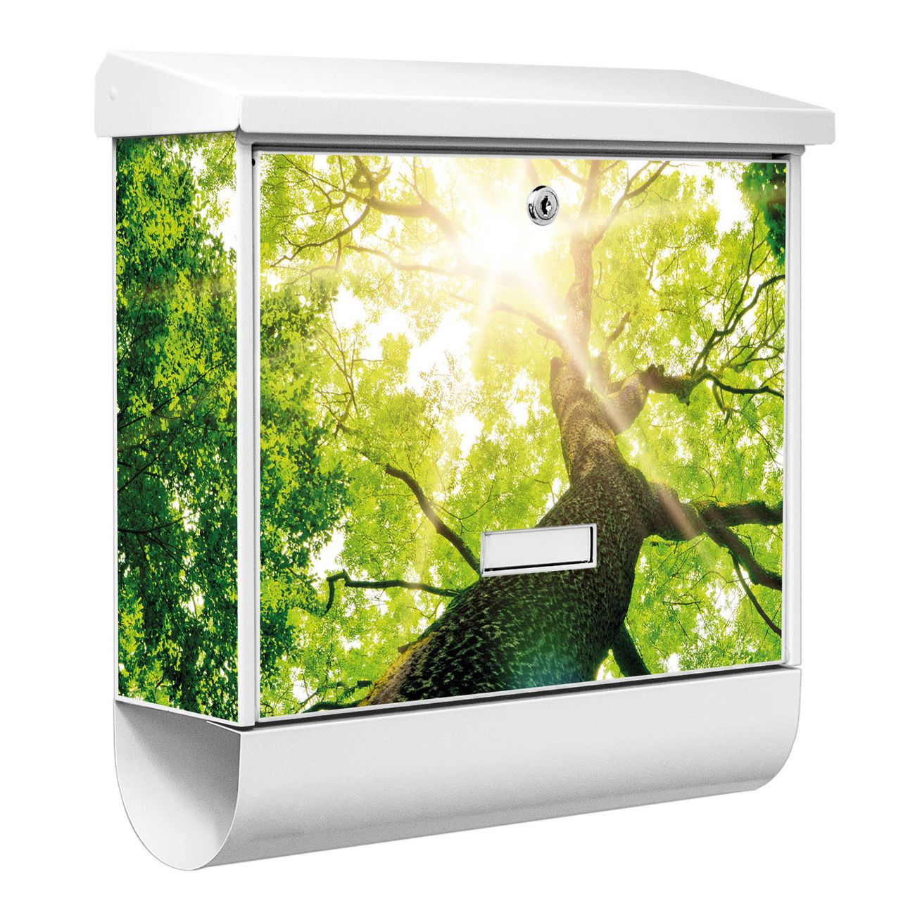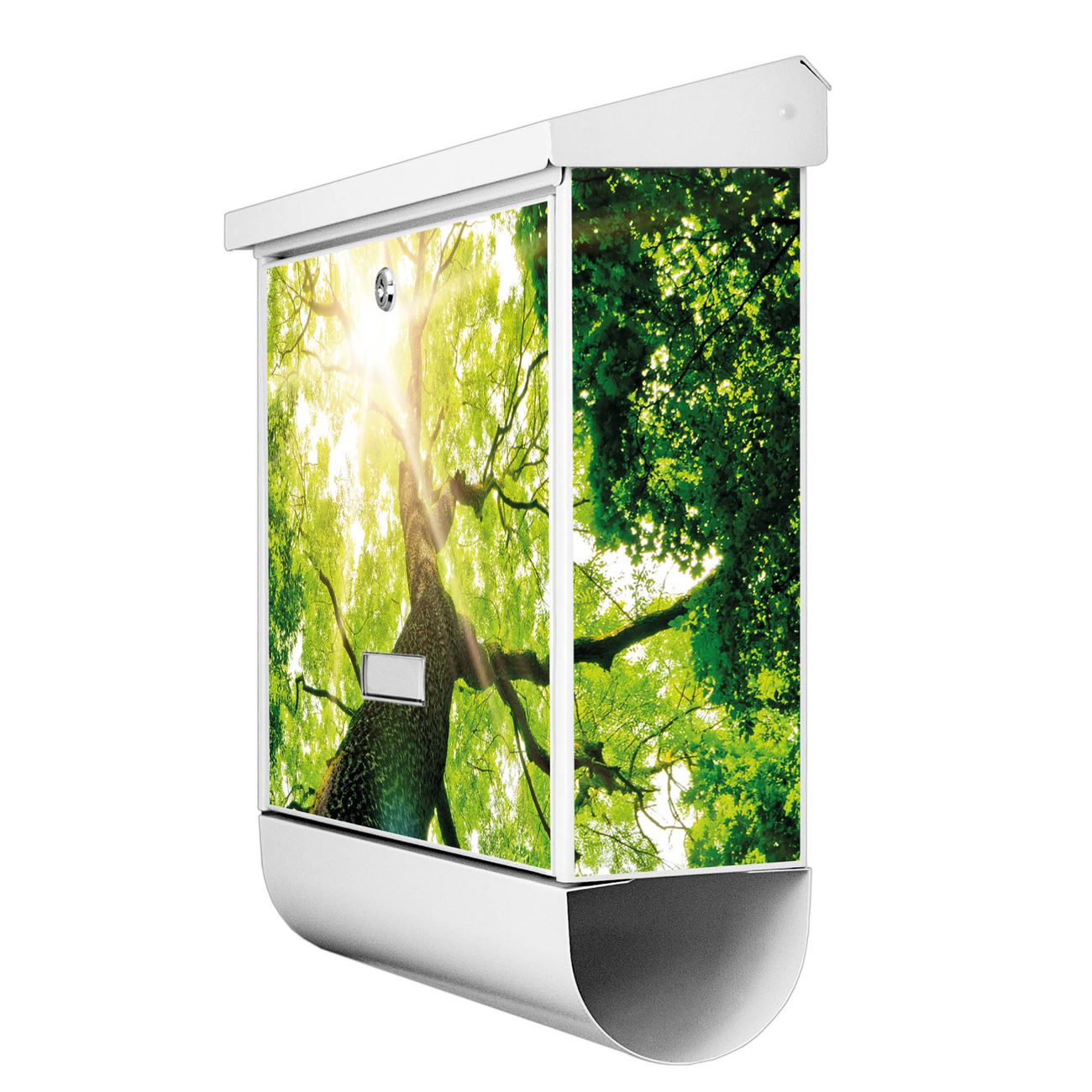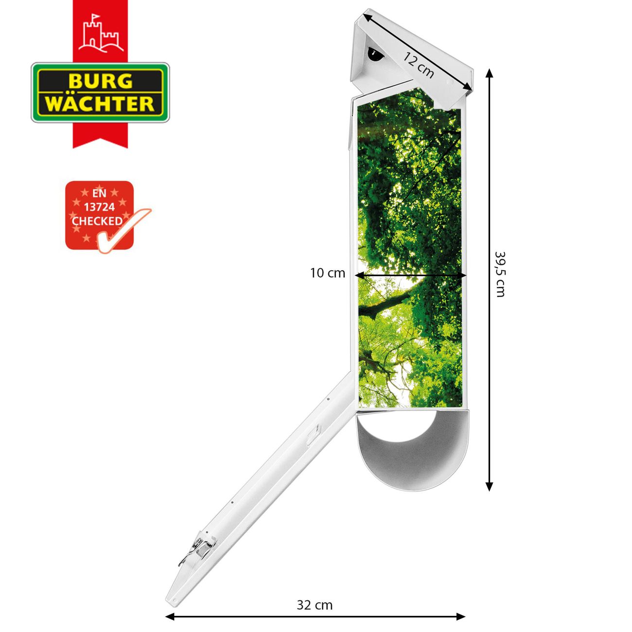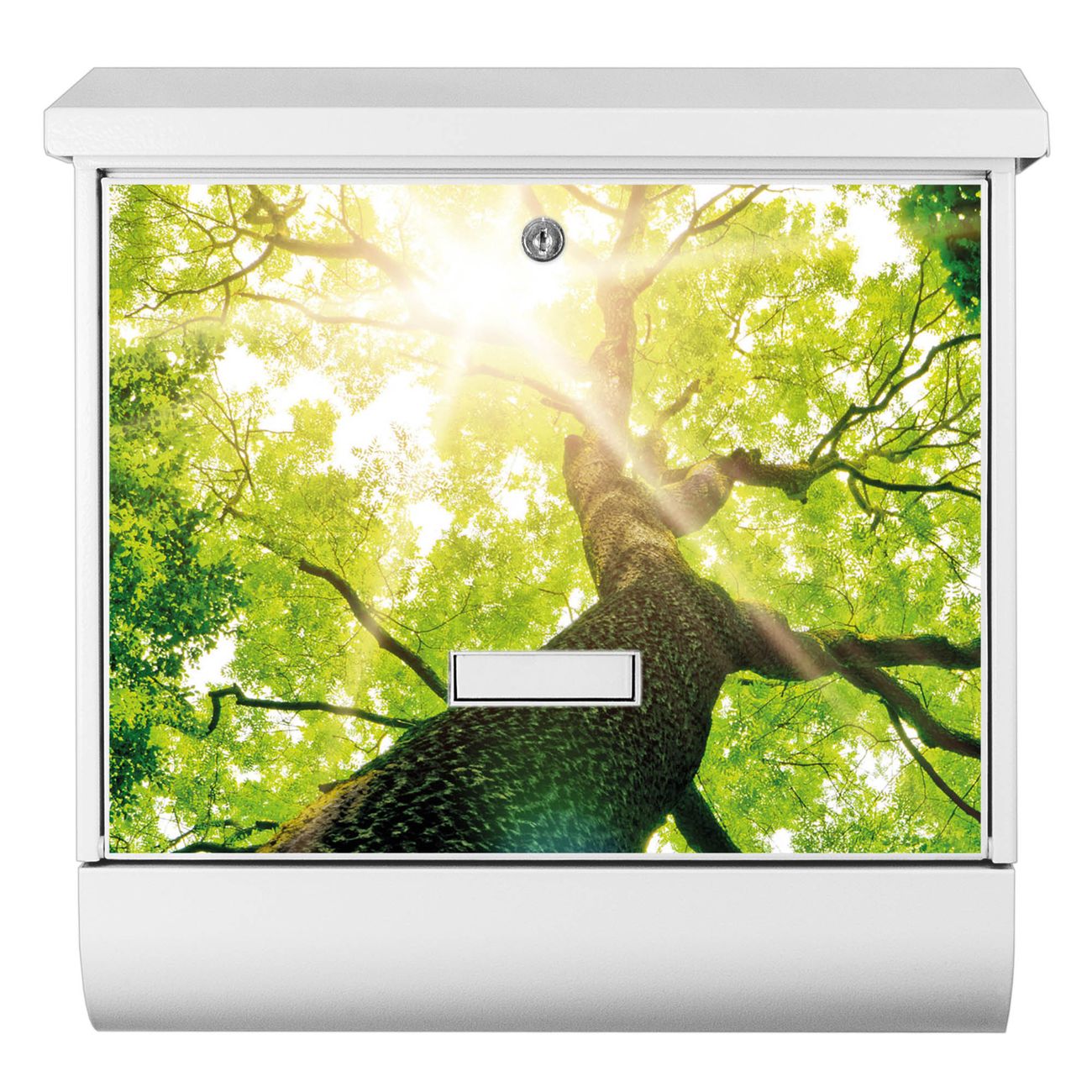 Der BURG-WÄCHTER Stahl Briefkasten mit Baumkrone Motiv bietet Ihnen mit seinem Fassungsvermögen genügend Platz auch für große A4 Sendungen und Zeitschriften. Das integrierte Regendach schützt Ihre Post vor dem Eindringen von Regen.