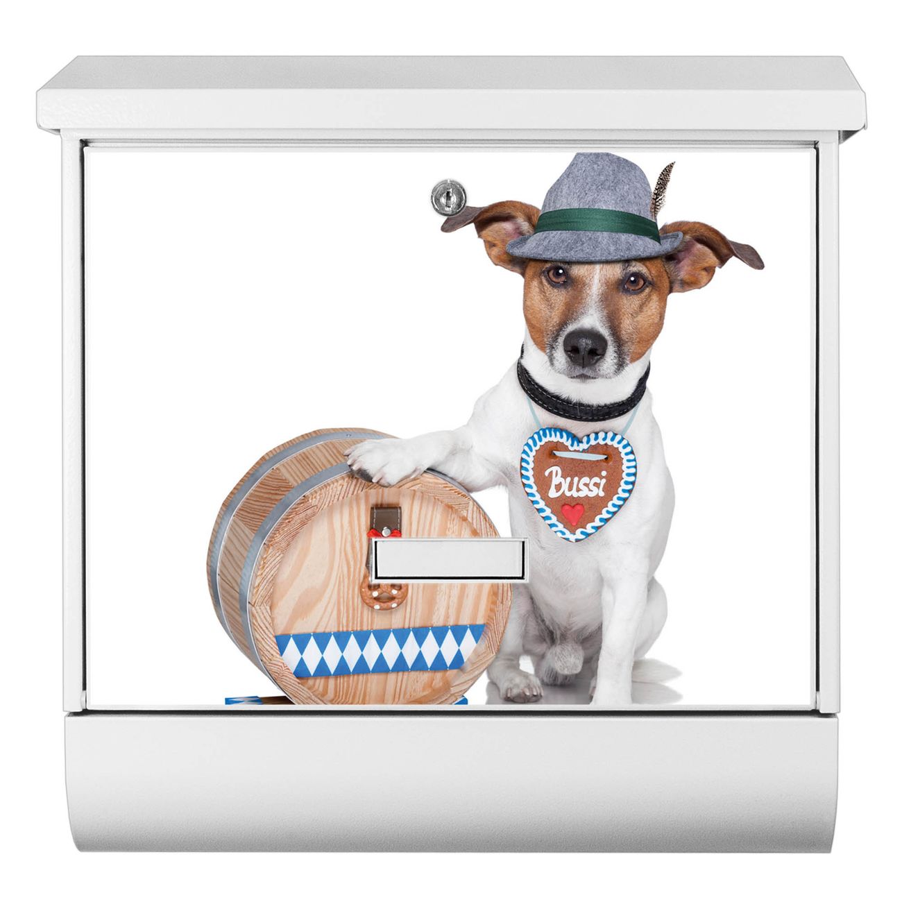Der BURG-WÄCHTER Stahl Briefkasten mit Bayer Jack Russel Motiv bietet Ihnen mit seinem Fassungsvermögen genügend Platz auch für große A4 Sendungen und Zeitschriften. Das integrierte Regendach schützt Ihre Post vor dem Eindringen von Regen.