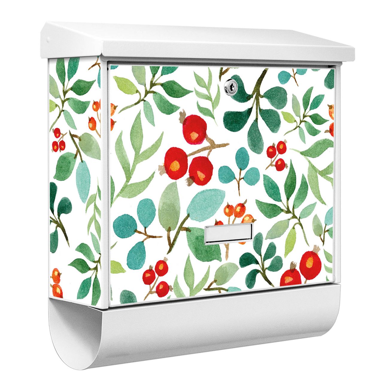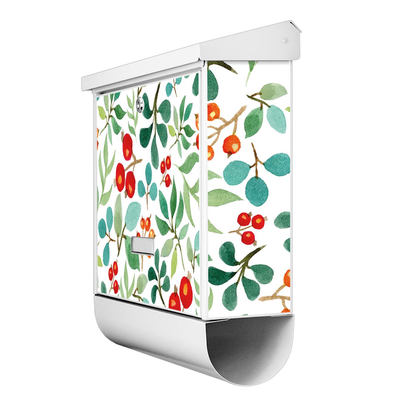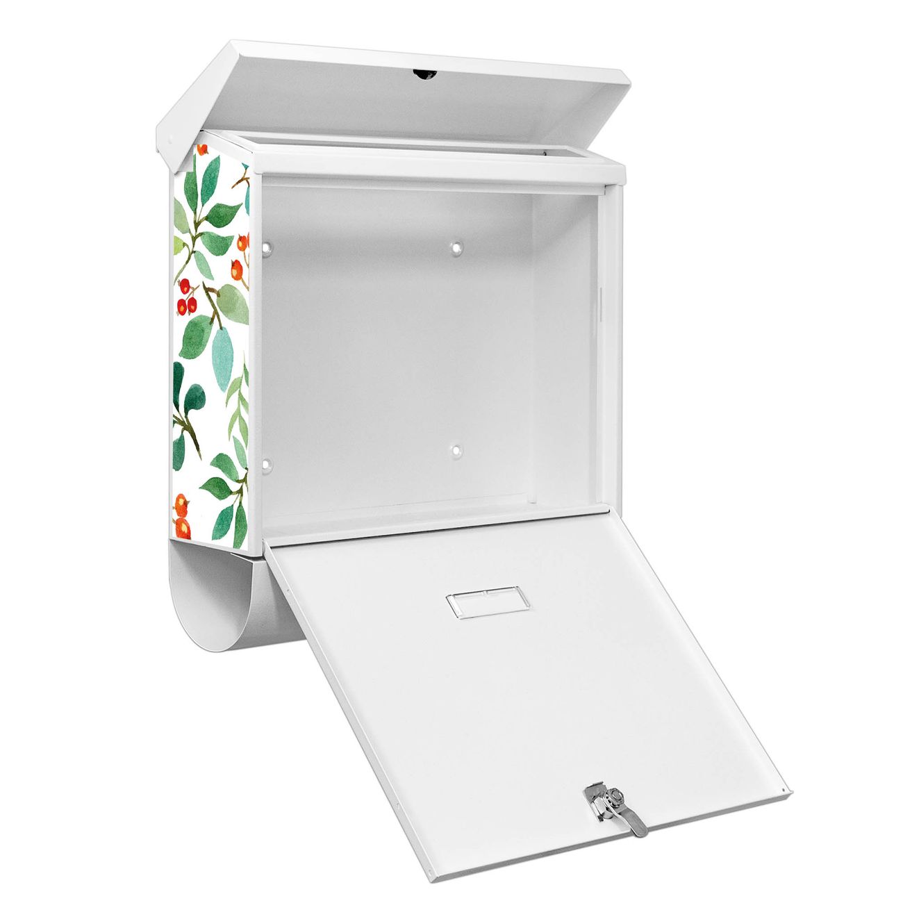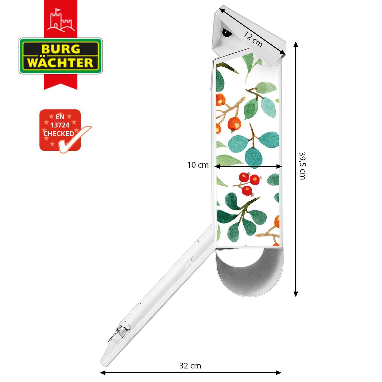 Der BURG-WÄCHTER Stahl Briefkasten mit Beeren und Blätter Motiv bietet Ihnen mit seinem Fassungsvermögen genügend Platz auch für große A4 Sendungen und Zeitschriften. Das integrierte Regendach schützt Ihre Post vor dem Eindringen von Regen.