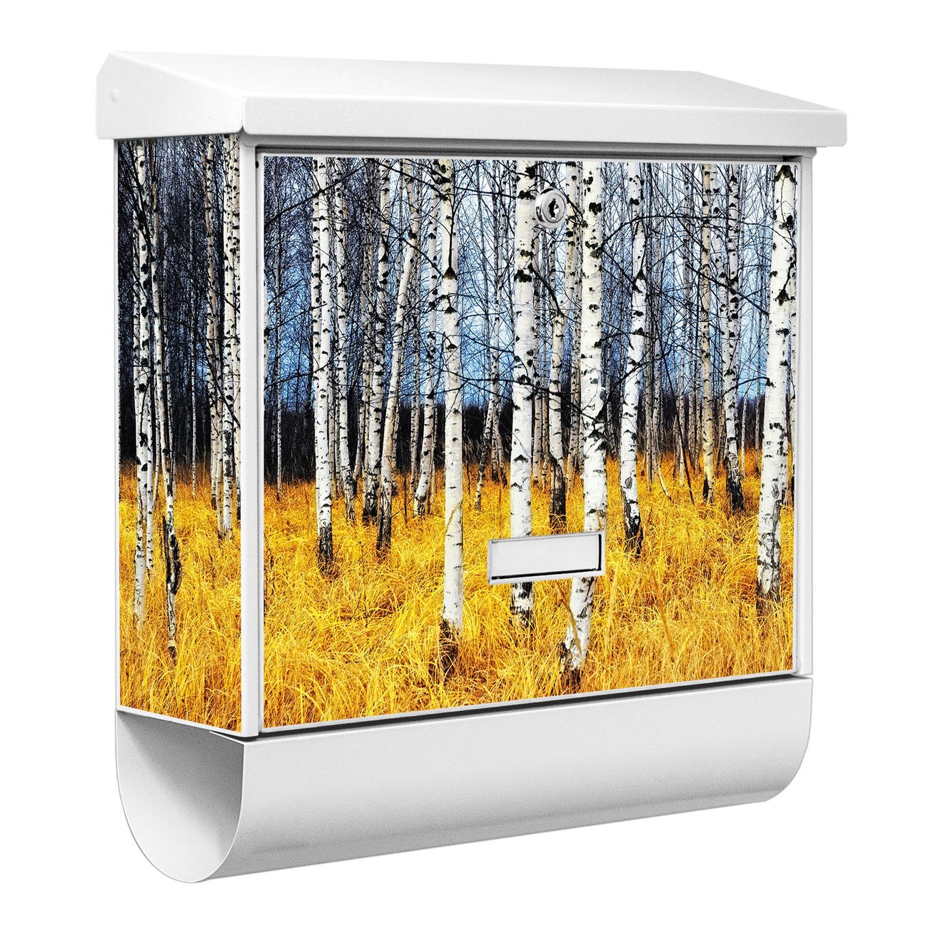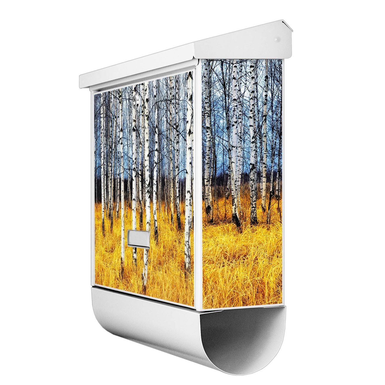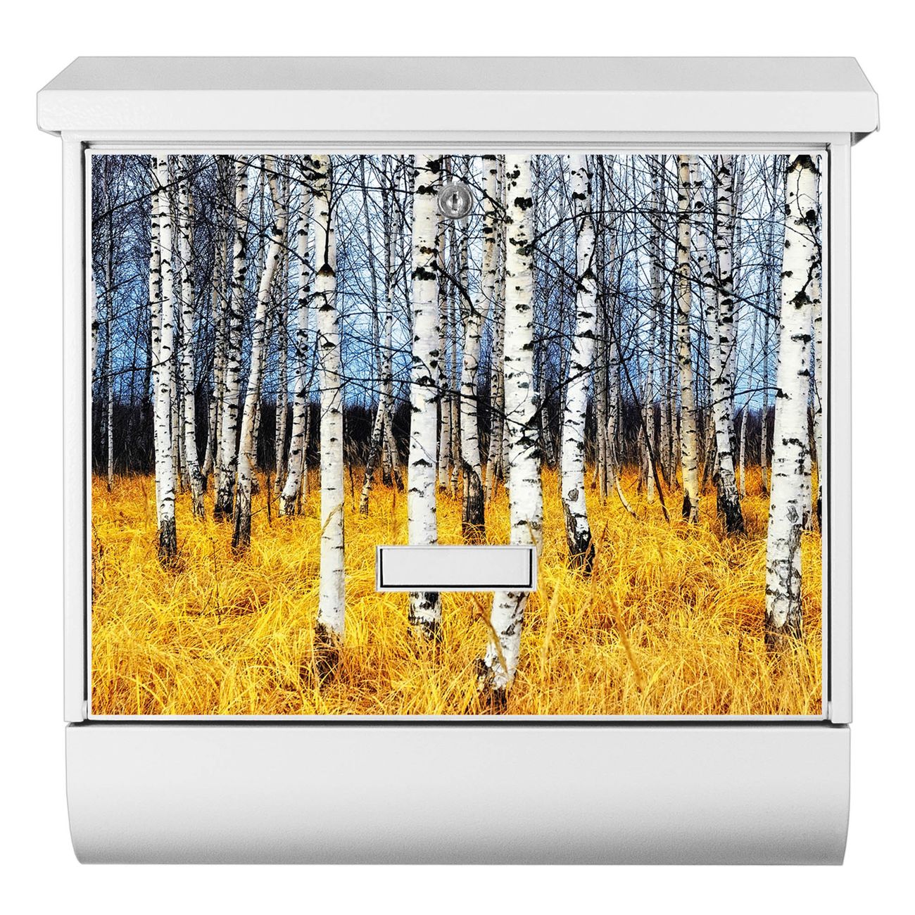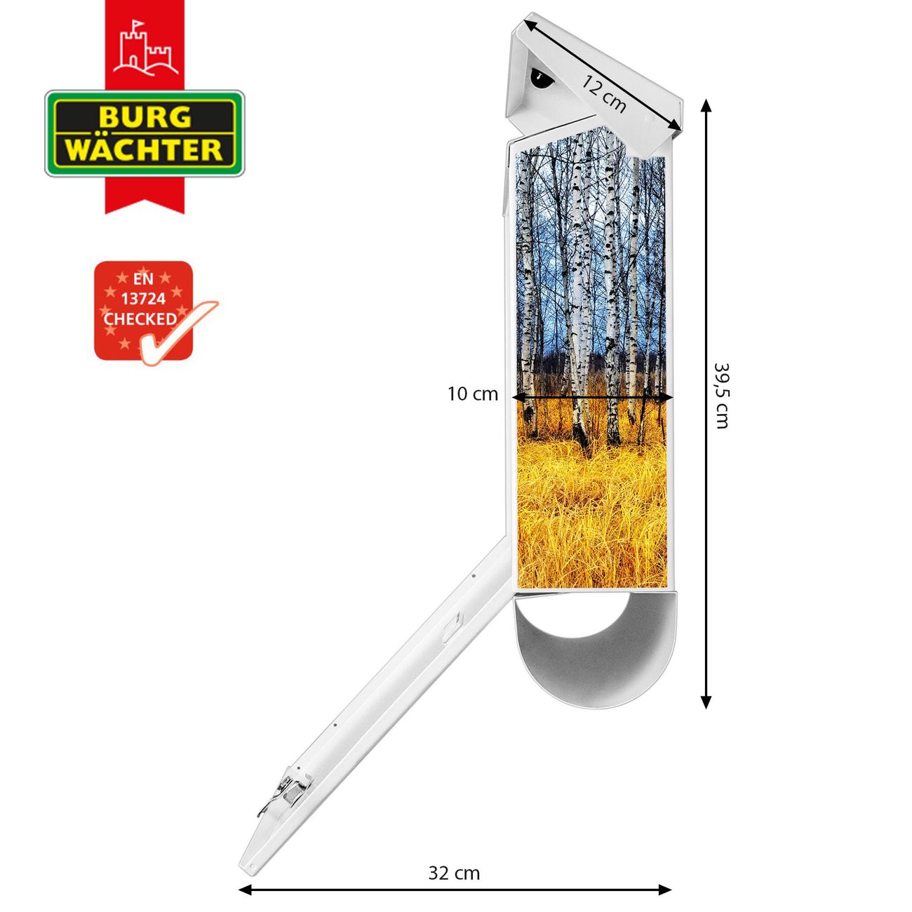 Der BURG-WÄCHTER Stahl Briefkasten mit Birkenhain Motiv bietet Ihnen mit seinem Fassungsvermögen genügend Platz auch für große A4 Sendungen und Zeitschriften. Das integrierte Regendach schützt Ihre Post vor dem Eindringen von Regen.
