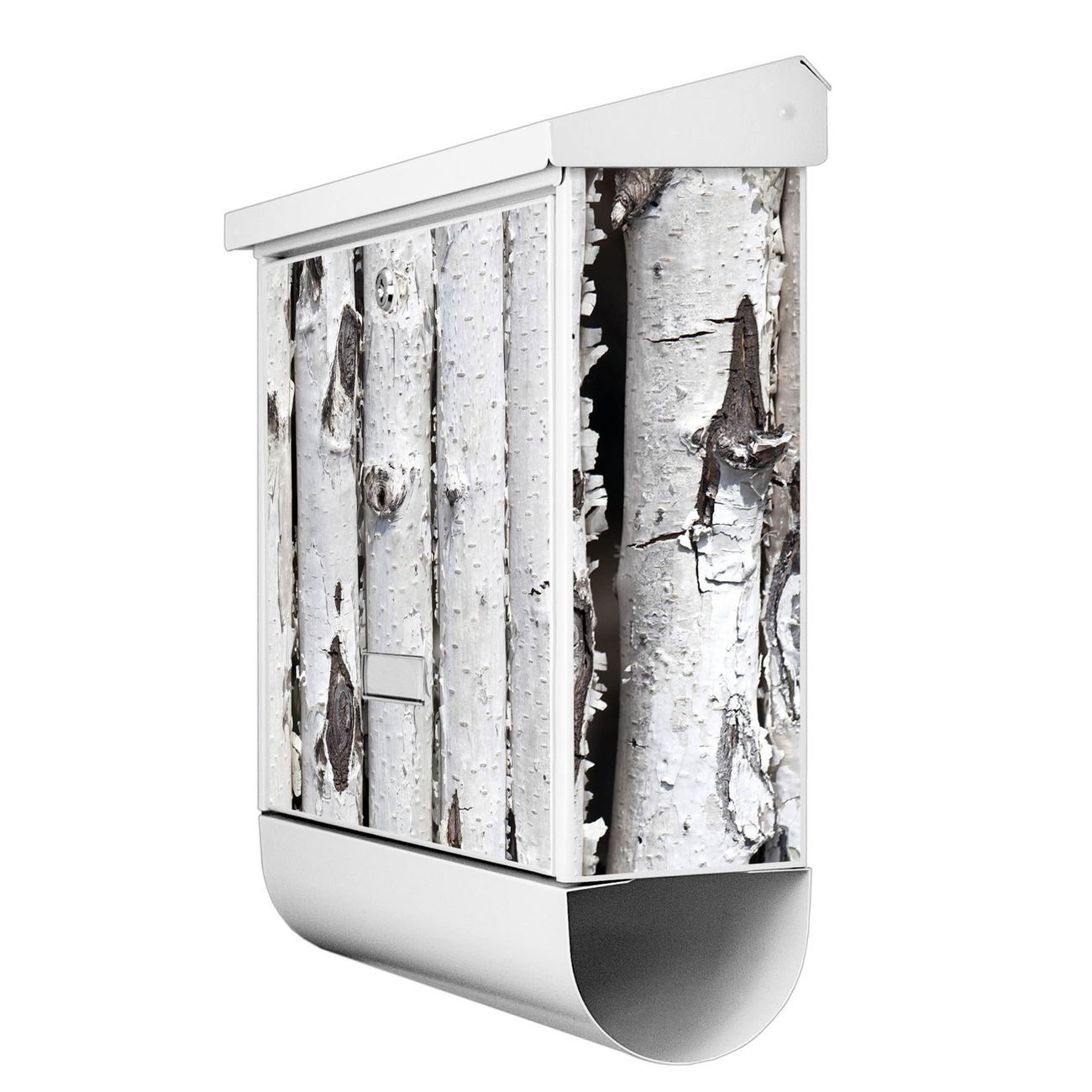 Der BURG-WÄCHTER Stahl Briefkasten mit Birkenrinde Motiv bietet Ihnen mit seinem Fassungsvermögen genügend Platz auch für große A4 Sendungen und Zeitschriften. Das integrierte Regendach schützt Ihre Post vor dem Eindringen von Regen.