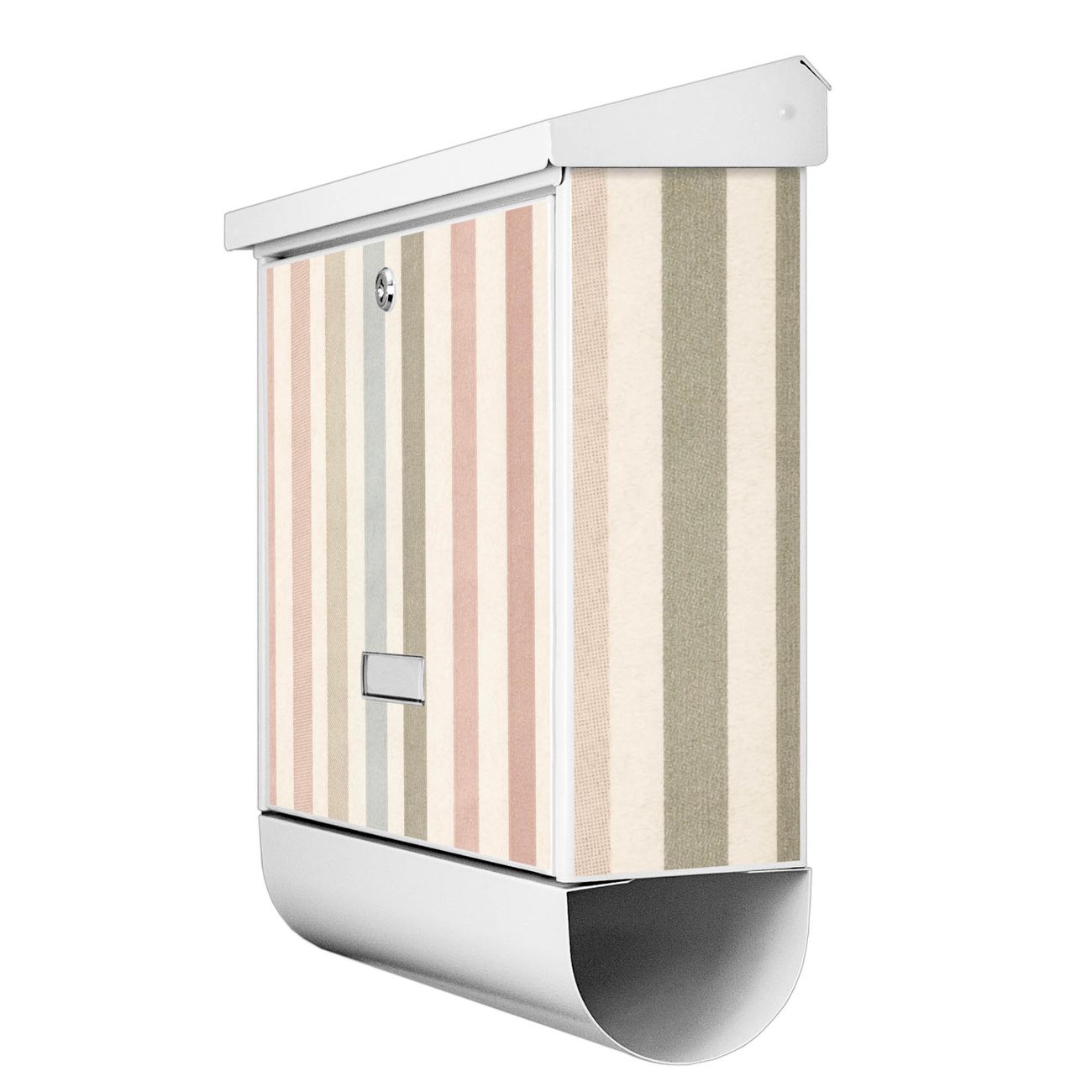 Der BURG-WÄCHTER Stahl Briefkasten mit Blasse Streifen Motiv bietet Ihnen mit seinem Fassungsvermögen genügend Platz auch für große A4 Sendungen und Zeitschriften. Das integrierte Regendach schützt Ihre Post vor dem Eindringen von Regen.