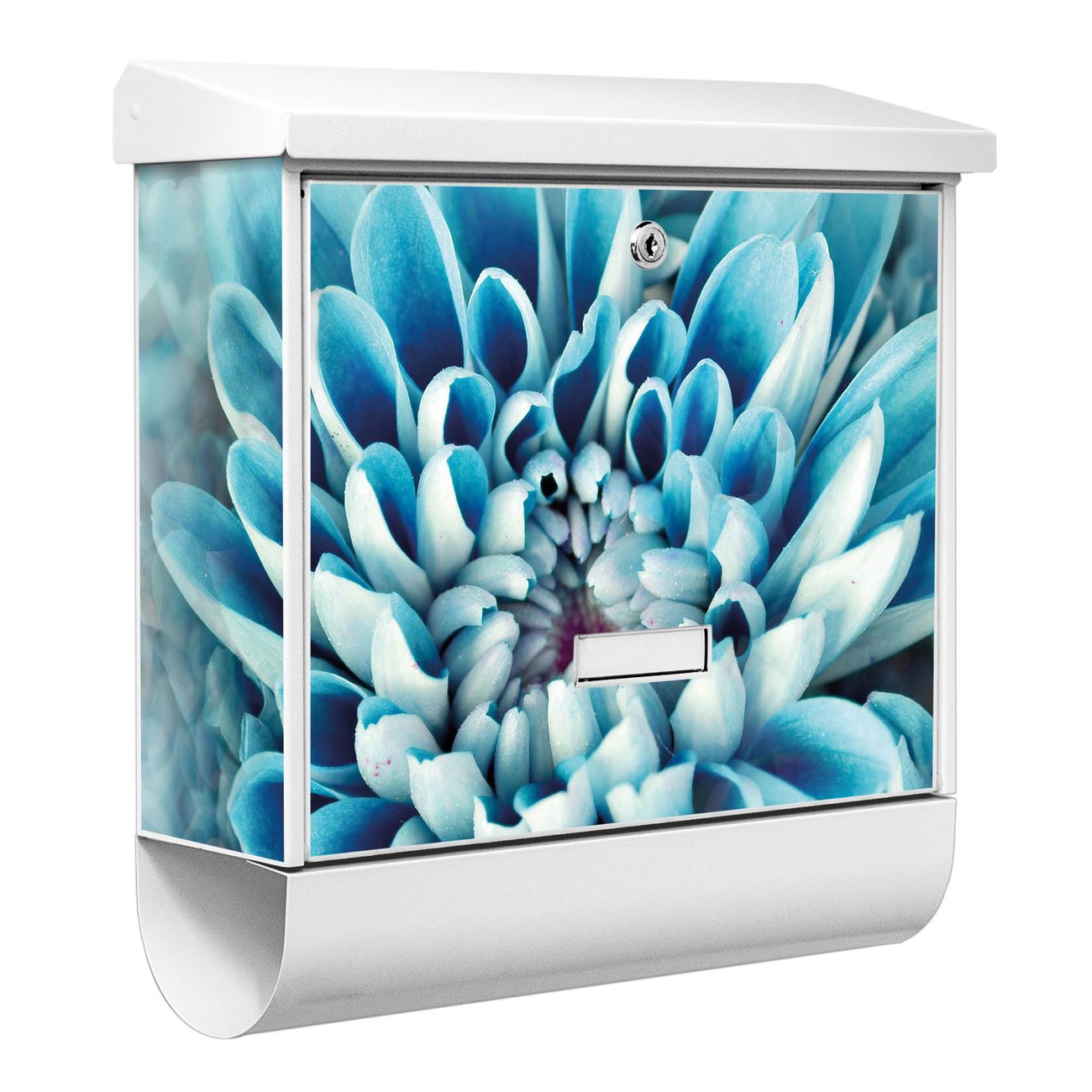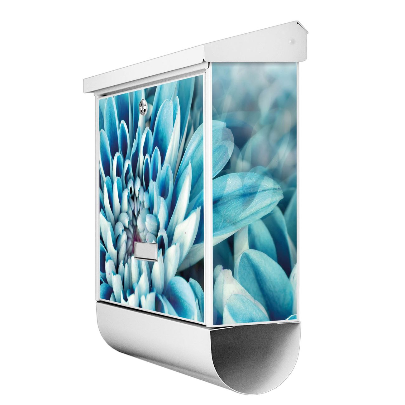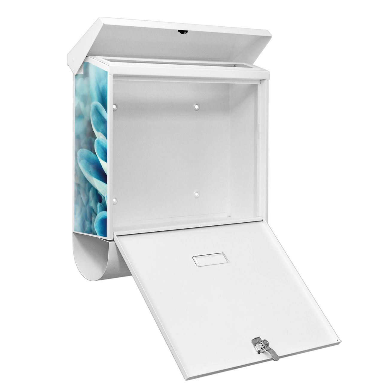 Der BURG-WÄCHTER Stahl Briefkasten mit Blaue Blüten Motiv bietet Ihnen mit seinem Fassungsvermögen genügend Platz auch für große A4 Sendungen und Zeitschriften. Das integrierte Regendach schützt Ihre Post vor dem Eindringen von Regen.