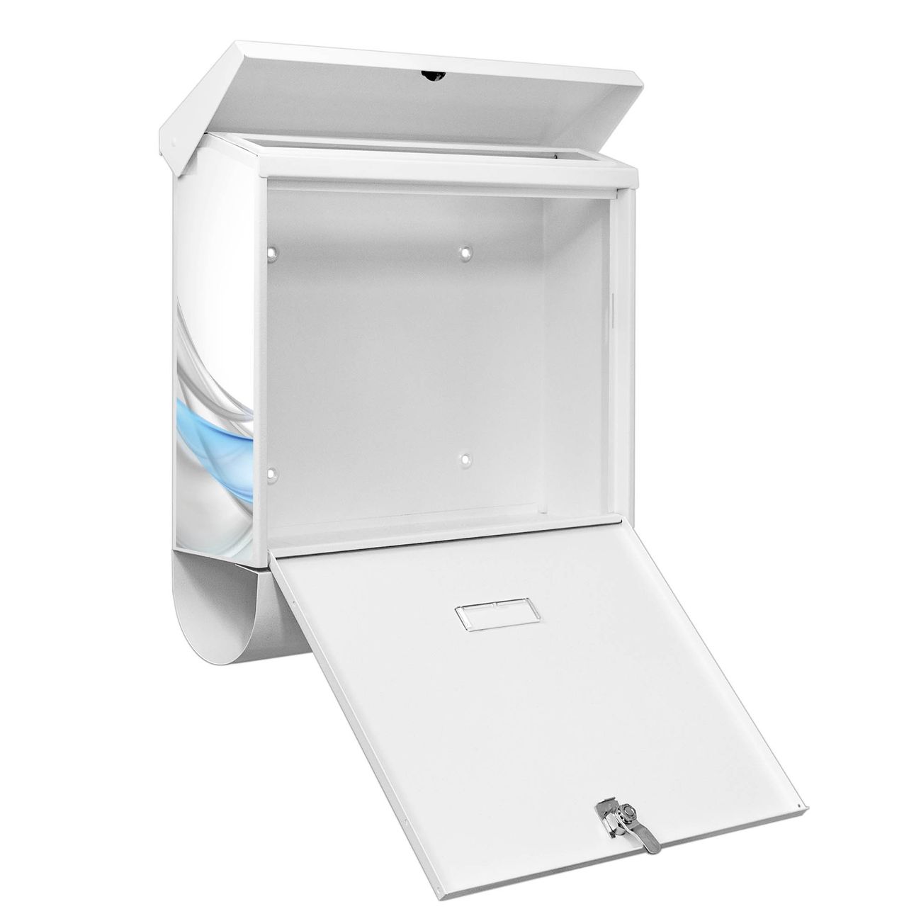 Der BURG-WÄCHTER Stahl Briefkasten mit Blauer Schleier Motiv bietet Ihnen mit seinem Fassungsvermögen genügend Platz auch für große A4 Sendungen und Zeitschriften. Das integrierte Regendach schützt Ihre Post vor dem Eindringen von Regen.