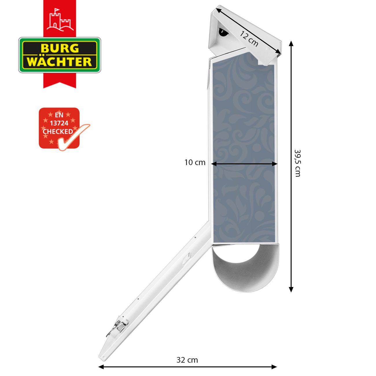 Der BURG-WÄCHTER Stahl Briefkasten mit Blaues Ornament Motiv bietet Ihnen mit seinem Fassungsvermögen genügend Platz auch für große A4 Sendungen und Zeitschriften. Das integrierte Regendach schützt Ihre Post vor dem Eindringen von Regen.