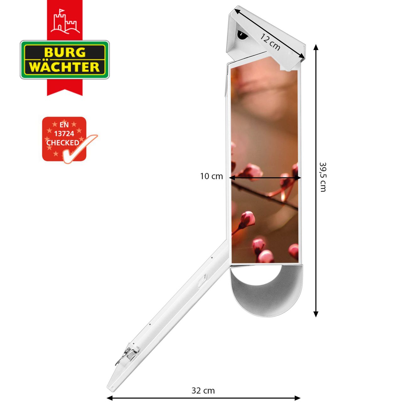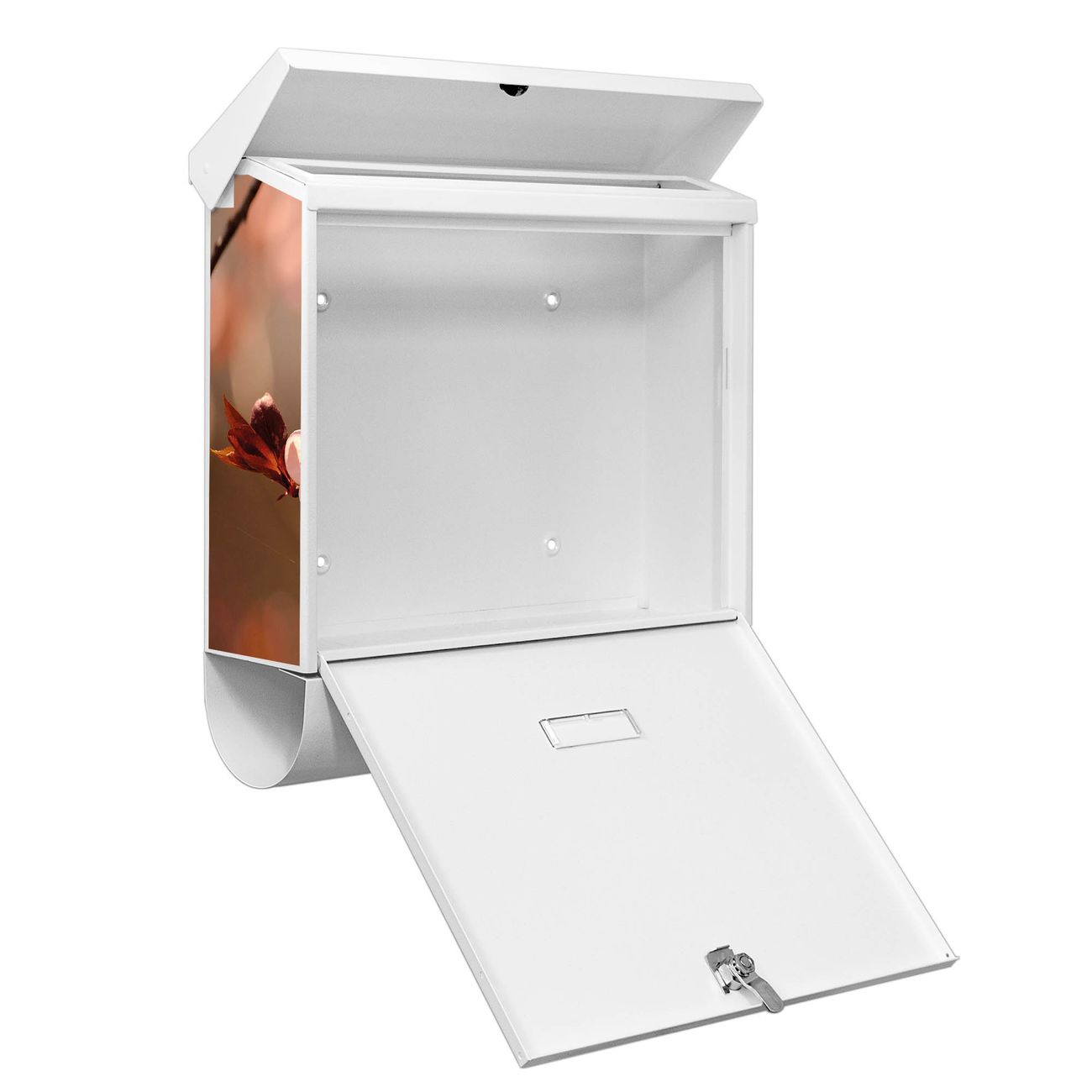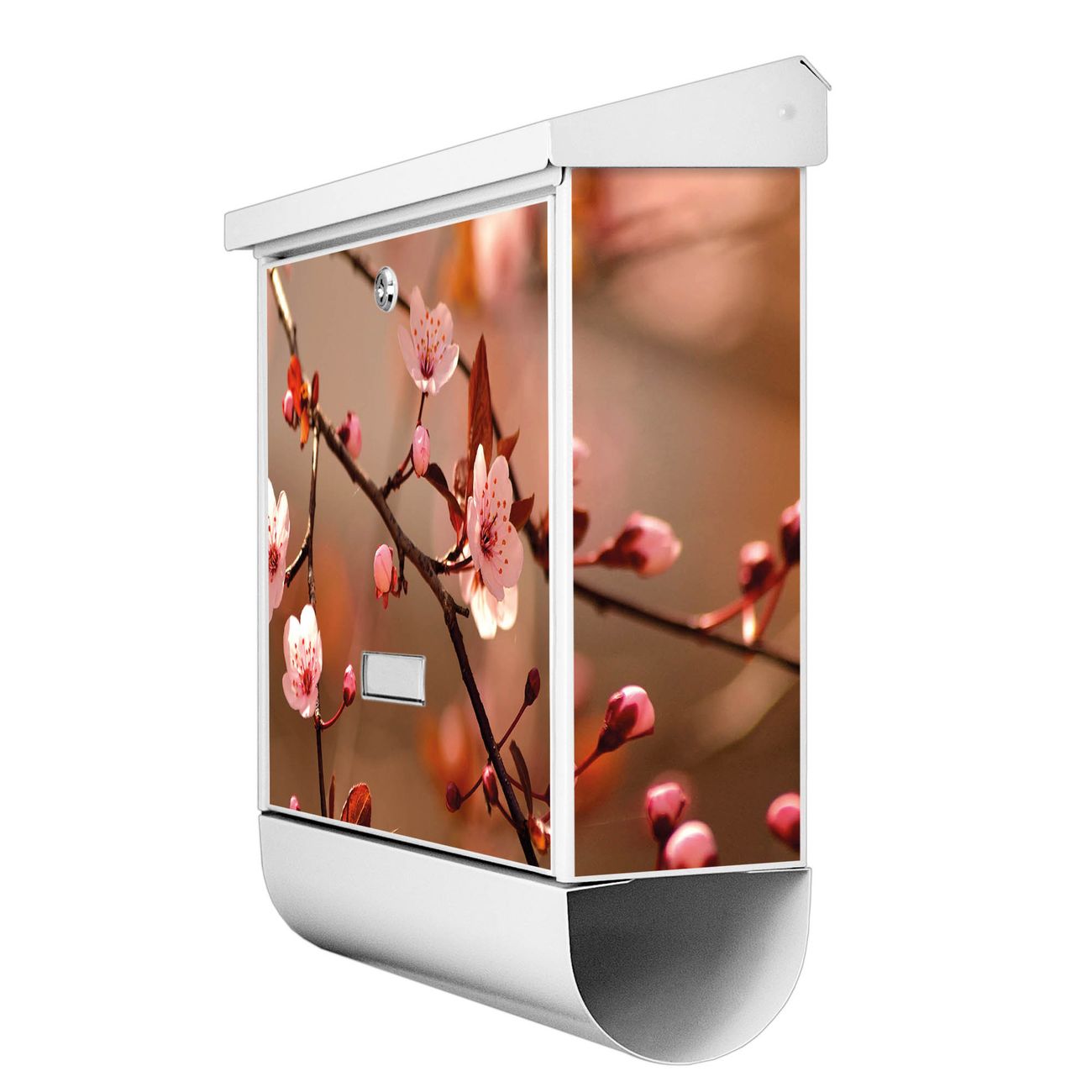 Der BURG-WÄCHTER Stahl Briefkasten mit Blühender Kirschzweig Motiv bietet Ihnen mit seinem Fassungsvermögen genügend Platz auch für große A4 Sendungen und Zeitschriften. Das integrierte Regendach schützt Ihre Post vor dem Eindringen von Regen.
