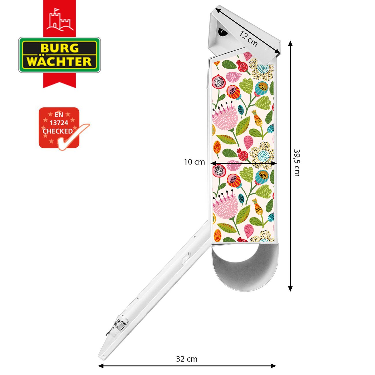 Der BURG-WÄCHTER Stahl Briefkasten mit Blumen Naiv Motiv bietet Ihnen mit seinem Fassungsvermögen genügend Platz auch für große A4 Sendungen und Zeitschriften. Das integrierte Regendach schützt Ihre Post vor dem Eindringen von Regen.