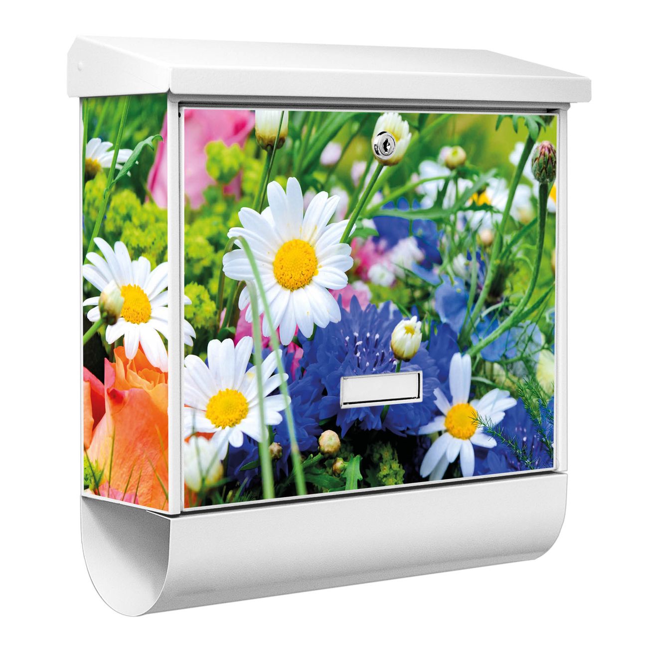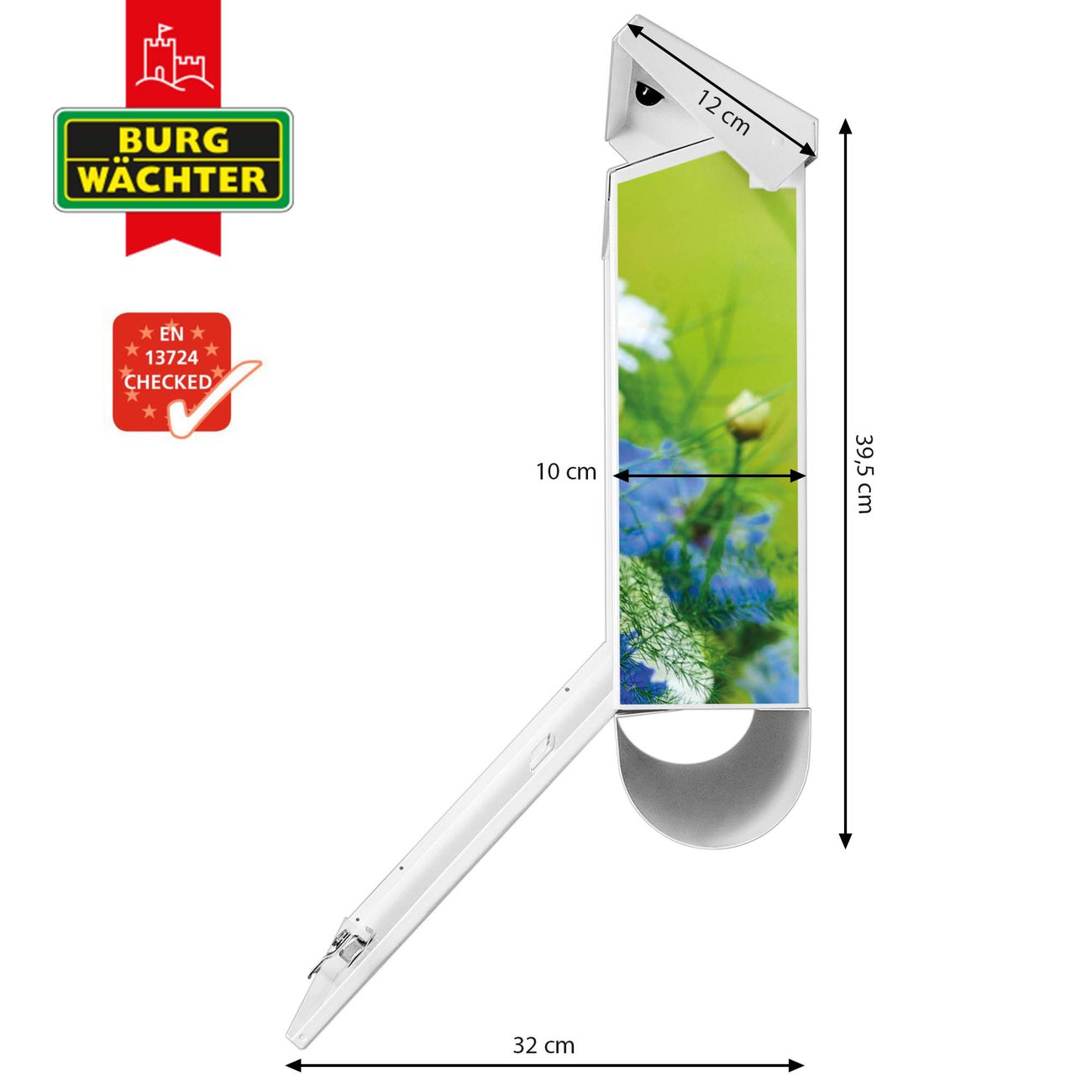 Der BURG-WÄCHTER Stahl Briefkasten mit Blumenstrauß Motiv bietet Ihnen mit seinem Fassungsvermögen genügend Platz auch für große A4 Sendungen und Zeitschriften. Das integrierte Regendach schützt Ihre Post vor dem Eindringen von Regen.