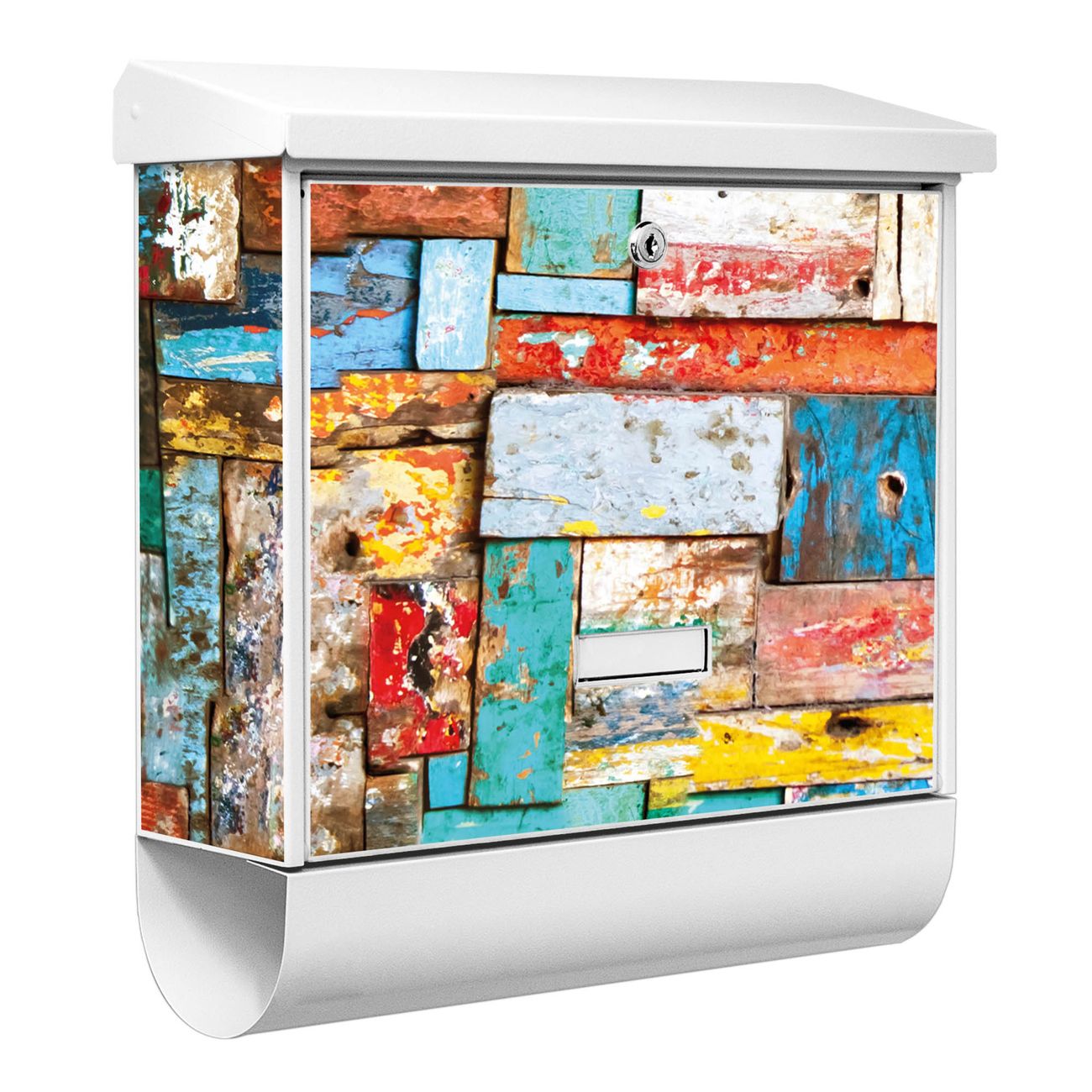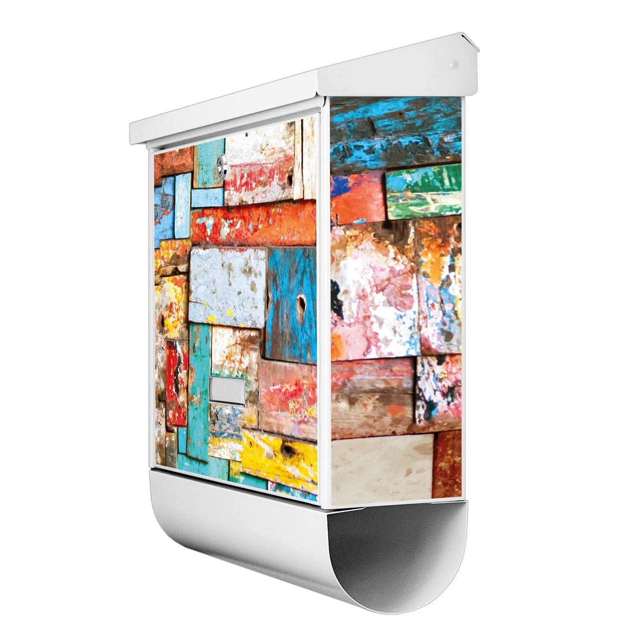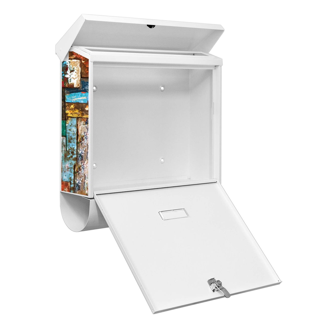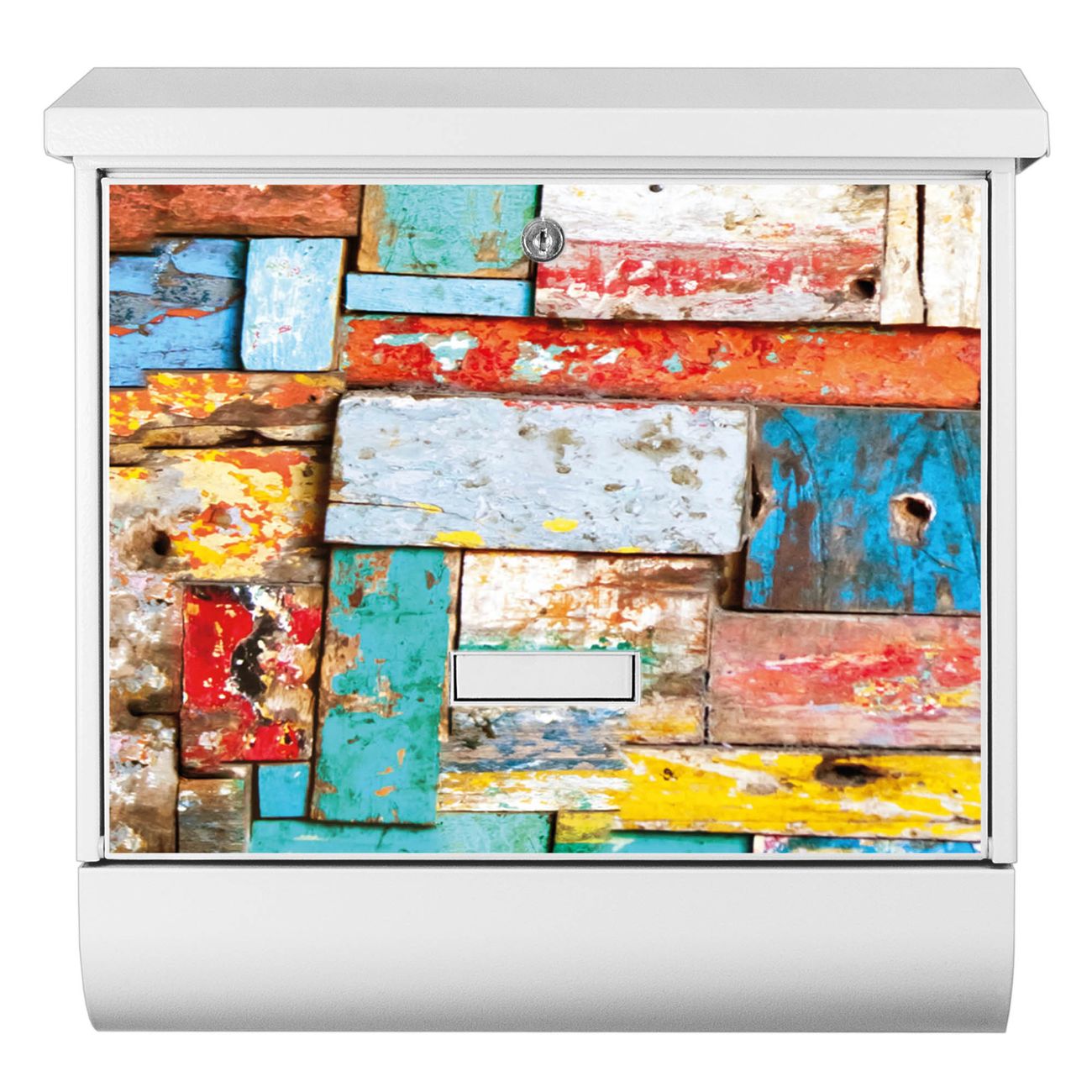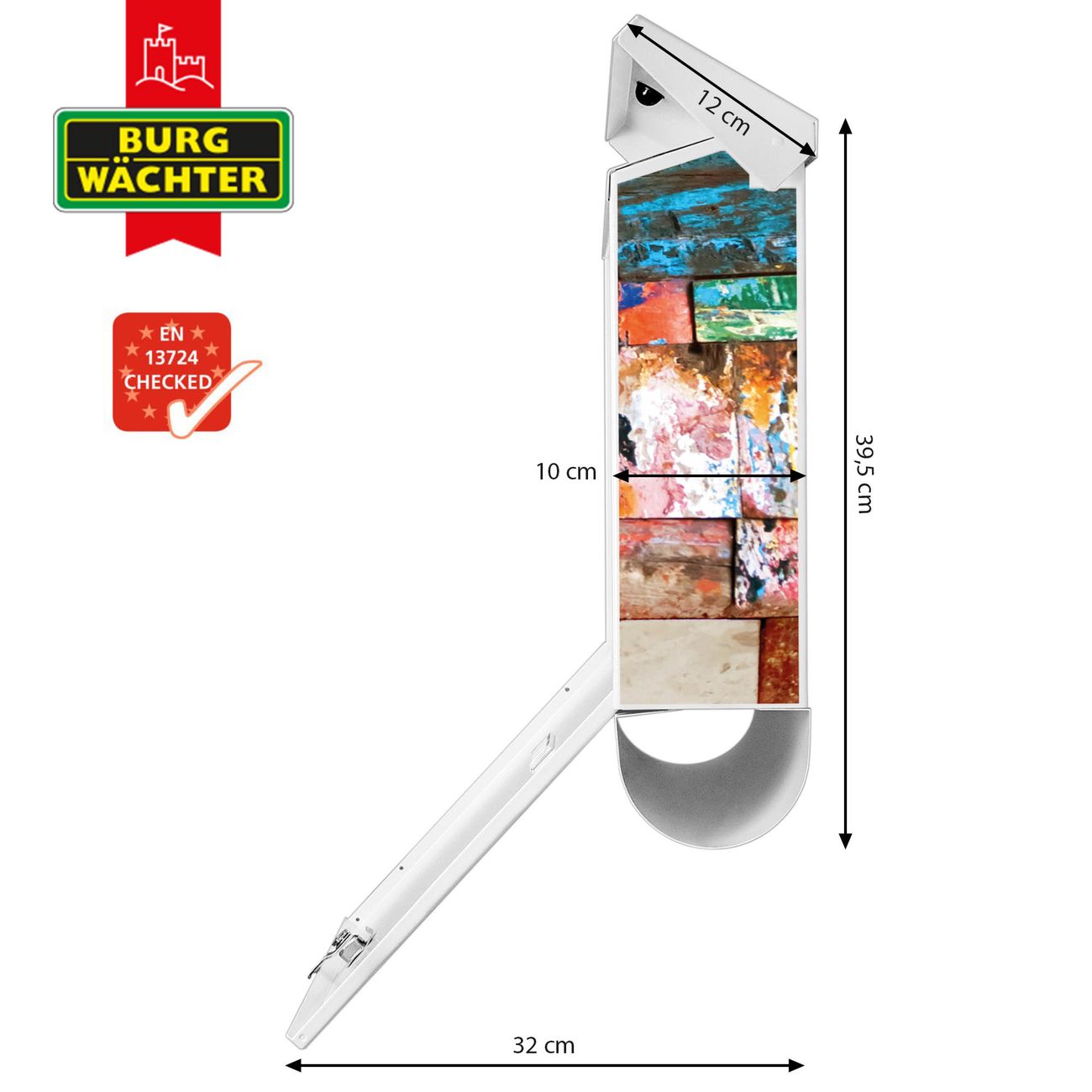 Der BURG-WÄCHTER Stahl Briefkasten mit Bunte Holzschindeln Motiv bietet Ihnen mit seinem Fassungsvermögen genügend Platz auch für große A4 Sendungen und Zeitschriften. Das integrierte Regendach schützt Ihre Post vor dem Eindringen von Regen.