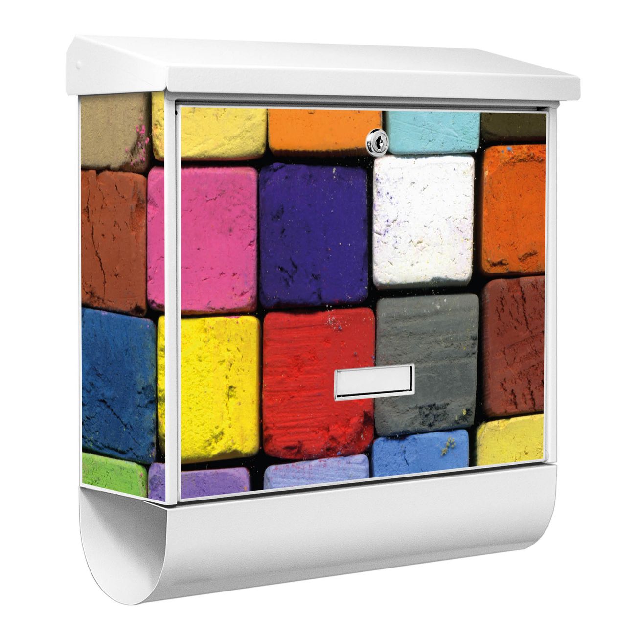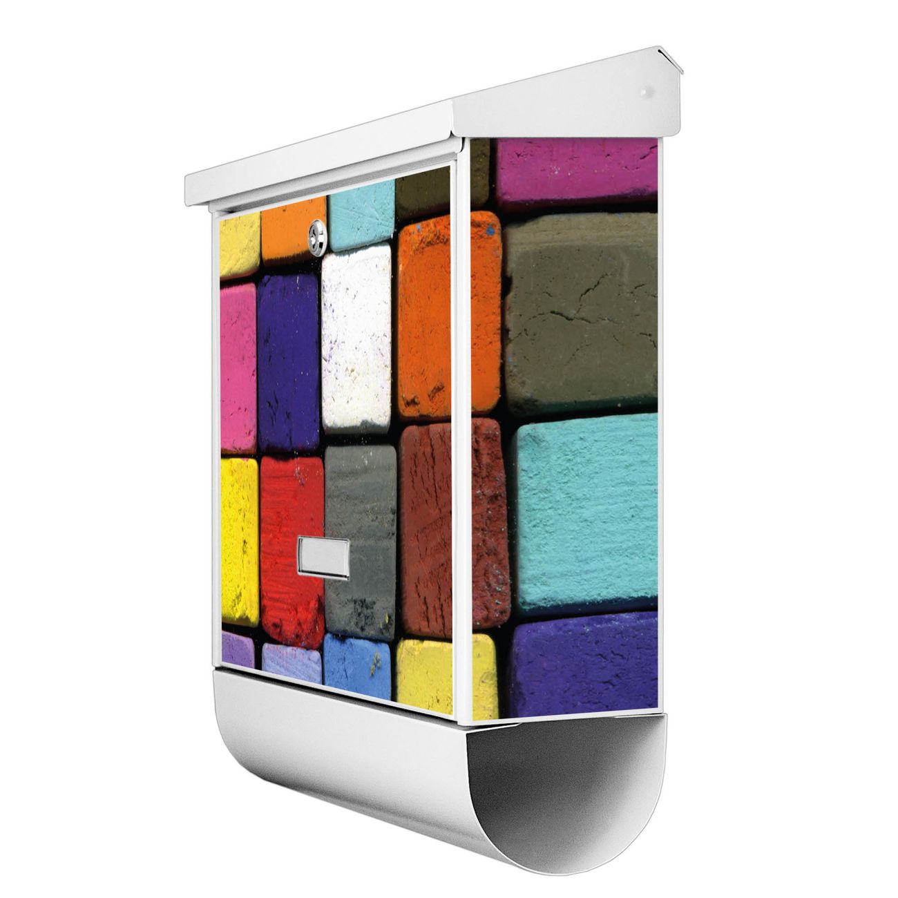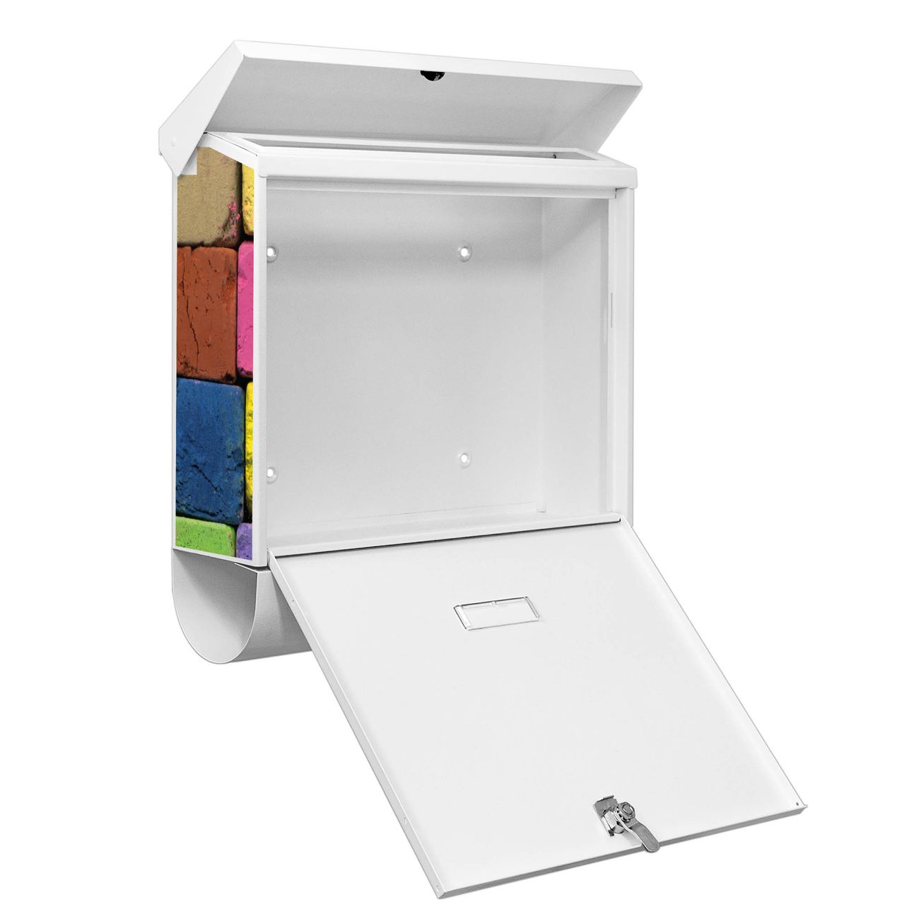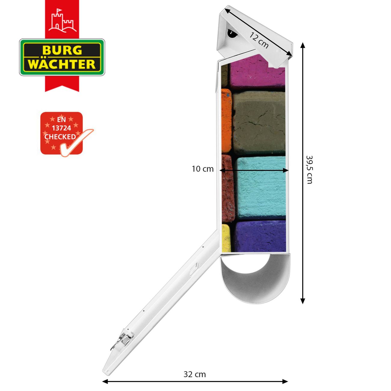 Der BURG-WÄCHTER Stahl Briefkasten mit Bunte Kreide Motiv bietet Ihnen mit seinem Fassungsvermögen genügend Platz auch für große A4 Sendungen und Zeitschriften. Das integrierte Regendach schützt Ihre Post vor dem Eindringen von Regen.