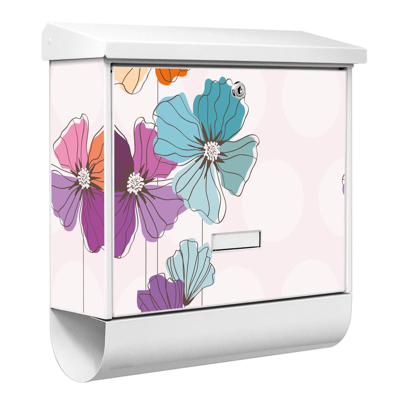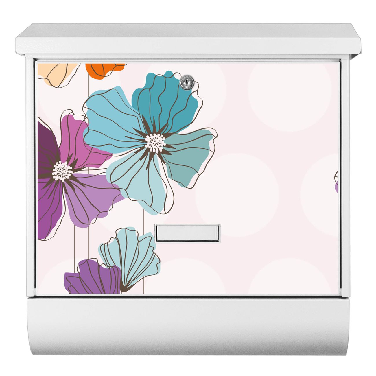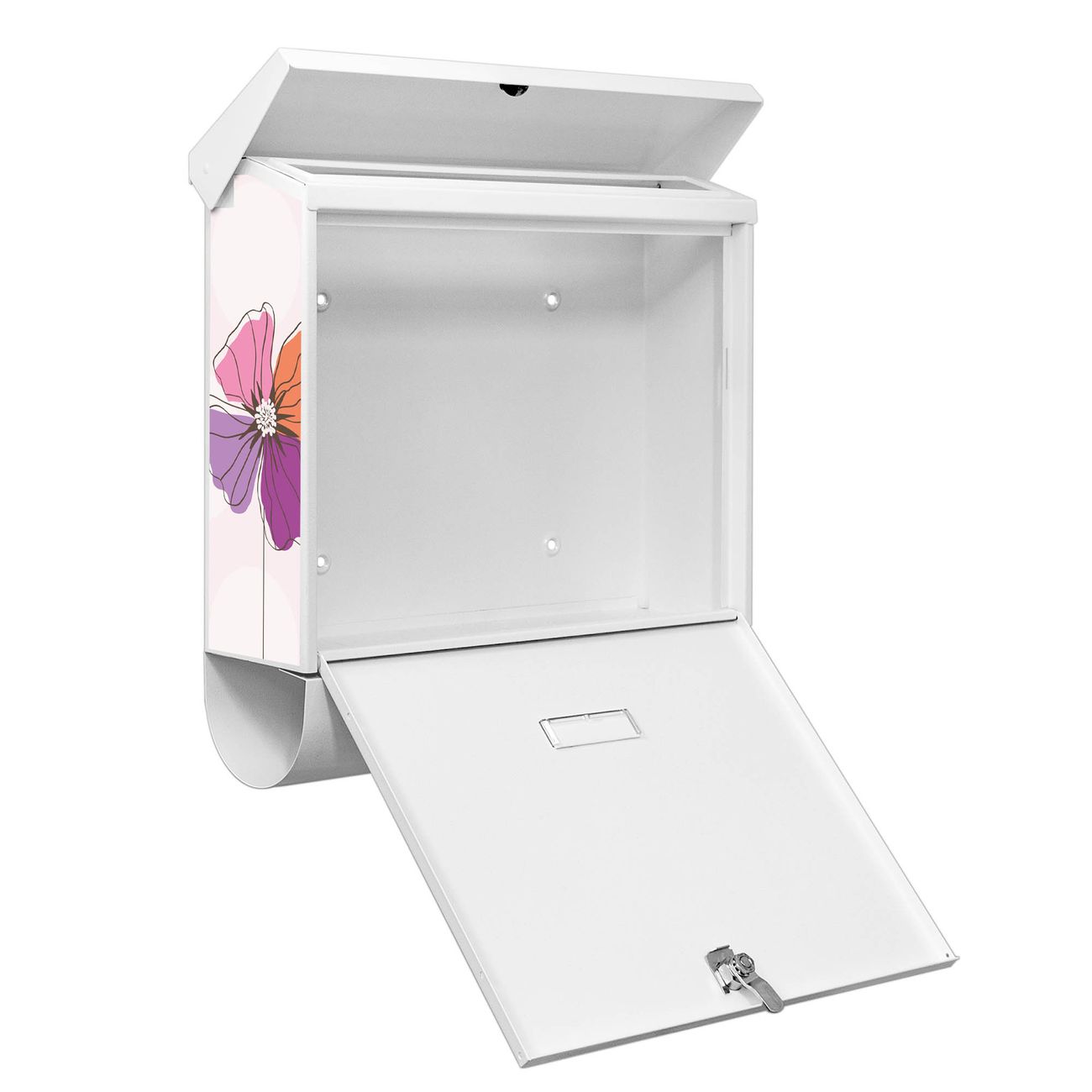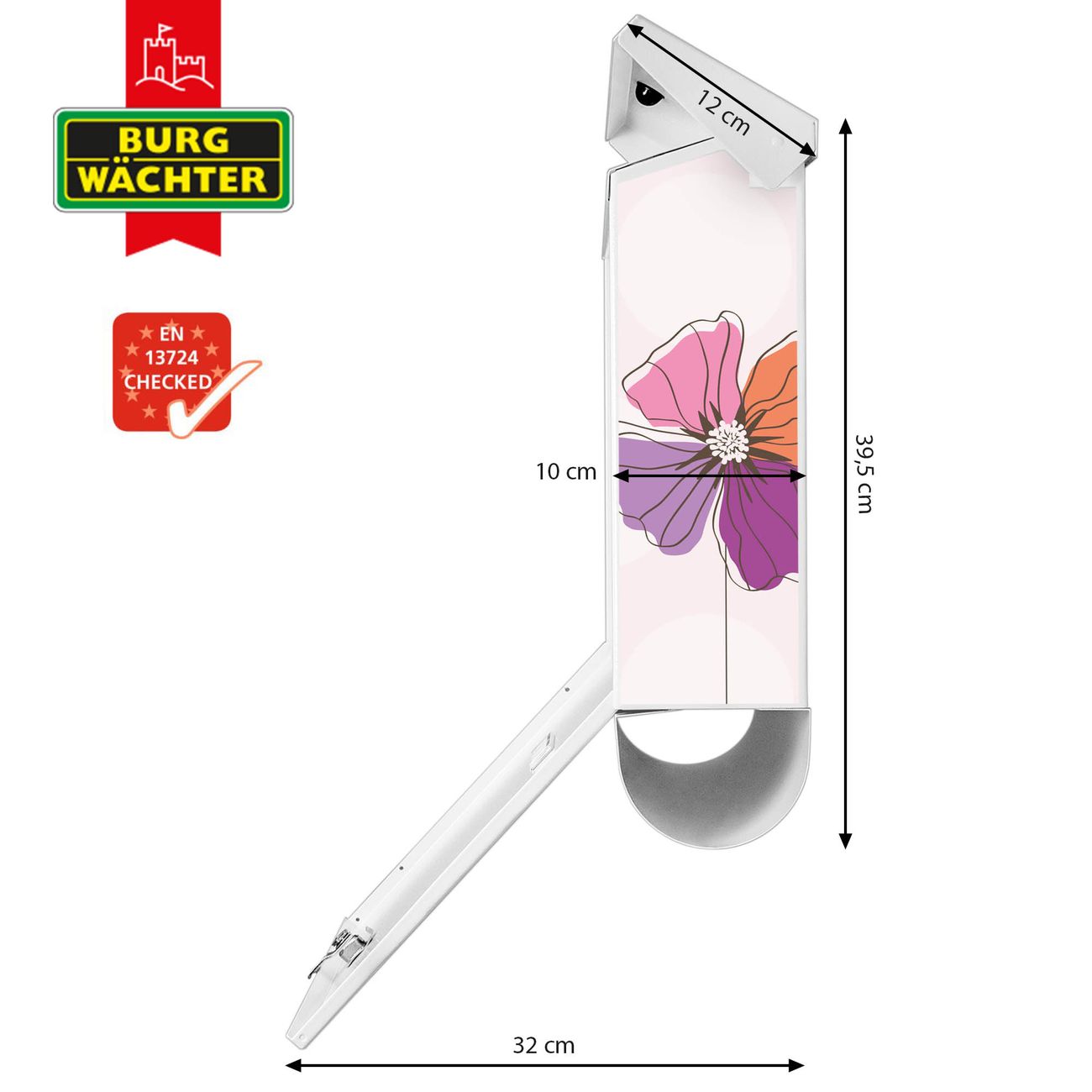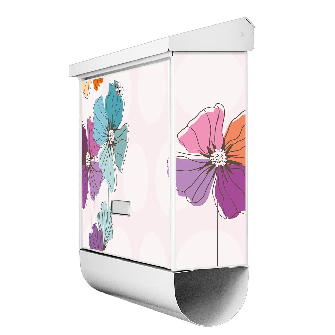 Der BURG-WÄCHTER Stahl Briefkasten mit Bunter Mohn Motiv bietet Ihnen mit seinem Fassungsvermögen genügend Platz auch für große A4 Sendungen und Zeitschriften. Das integrierte Regendach schützt Ihre Post vor dem Eindringen von Regen.