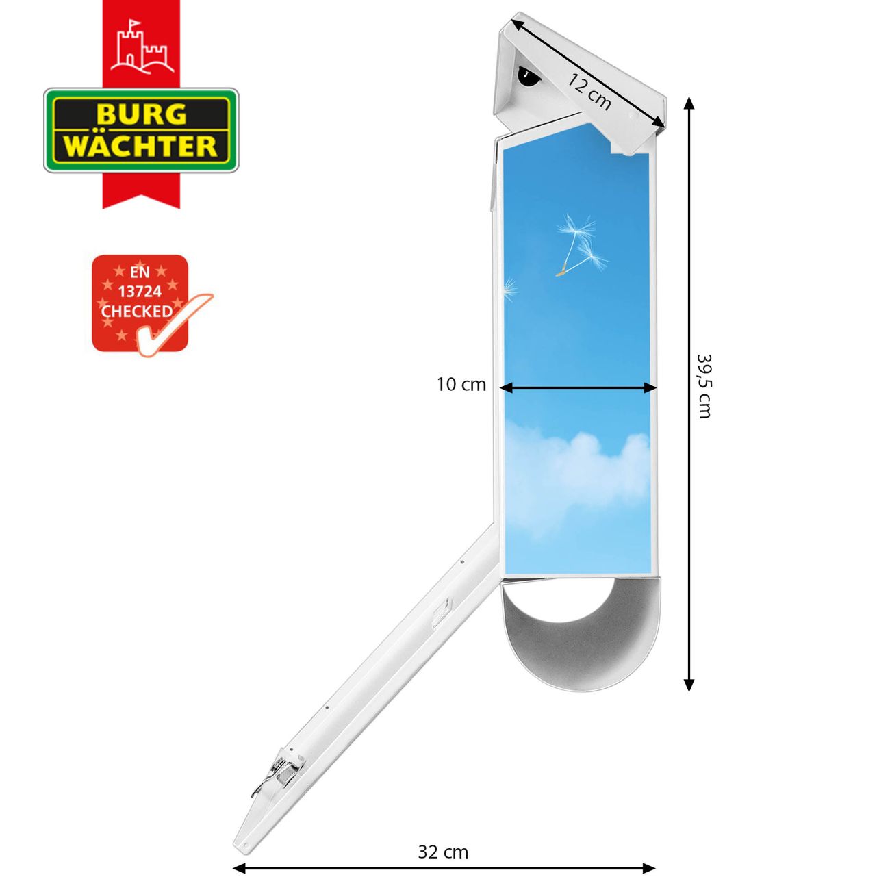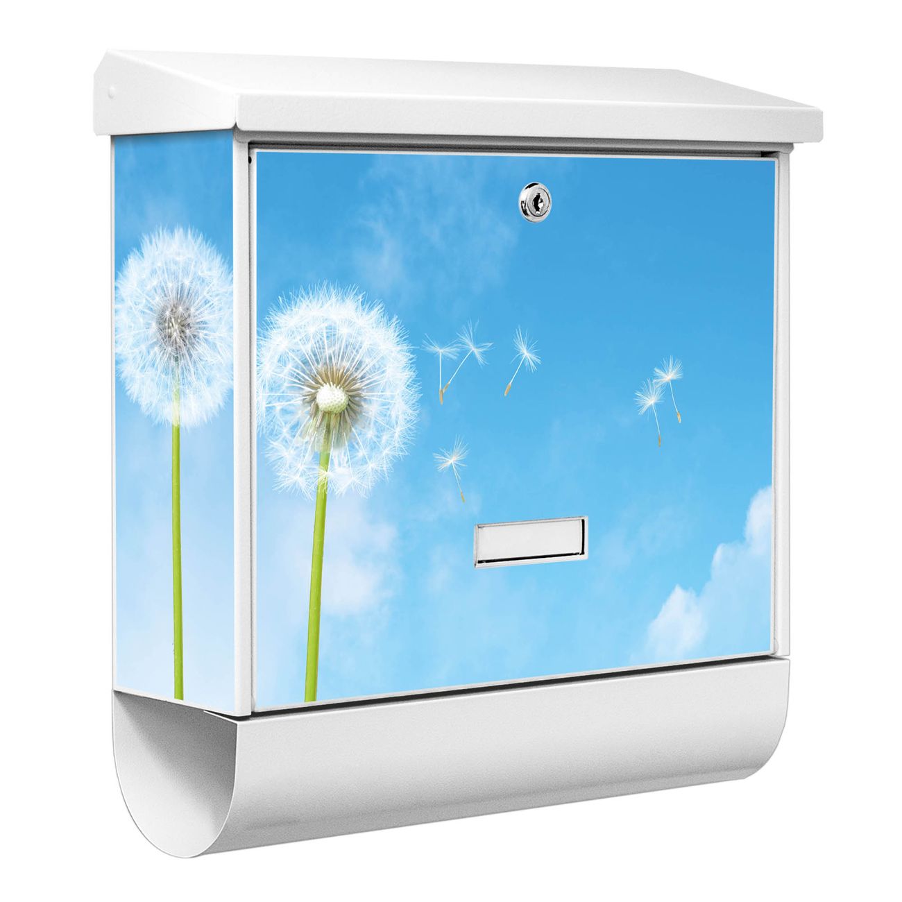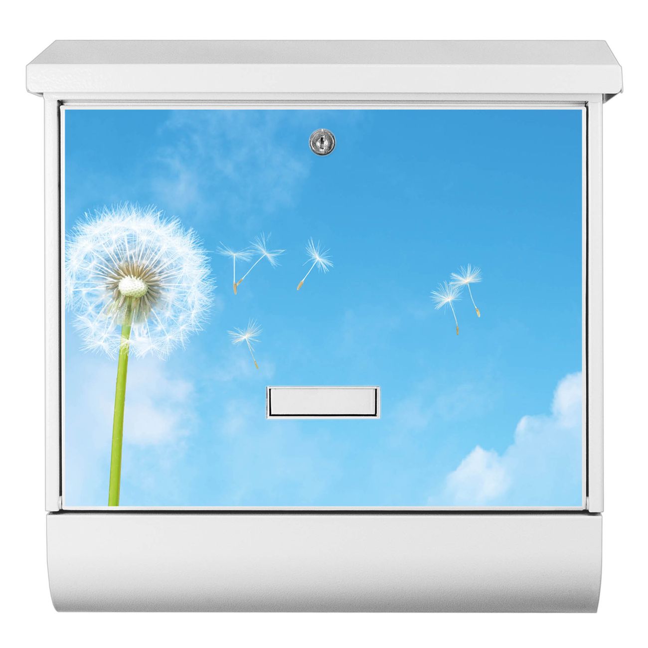 Der BURG-WÄCHTER Stahl Briefkasten mit Dandelion Motiv bietet Ihnen mit seinem Fassungsvermögen genügend Platz auch für große A4 Sendungen und Zeitschriften. Das integrierte Regendach schützt Ihre Post vor dem Eindringen von Regen.