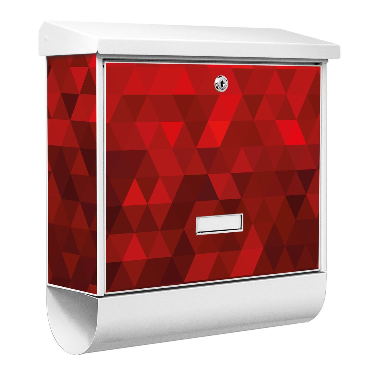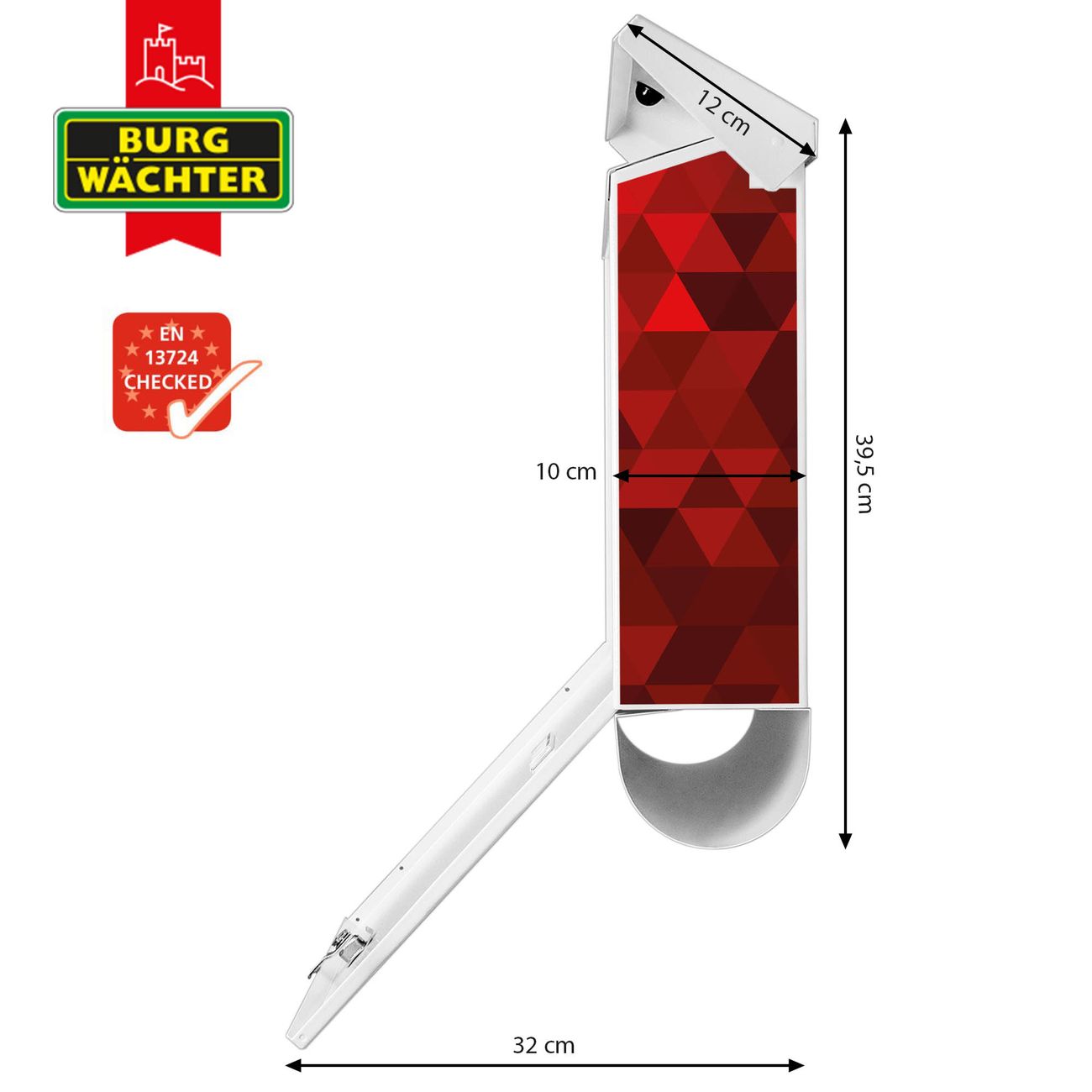 Der BURG-WÄCHTER Stahl Briefkasten mit Dreiecke Rot Motiv bietet Ihnen mit seinem Fassungsvermögen genügend Platz auch für große A4 Sendungen und Zeitschriften. Das integrierte Regendach schützt Ihre Post vor dem Eindringen von Regen.