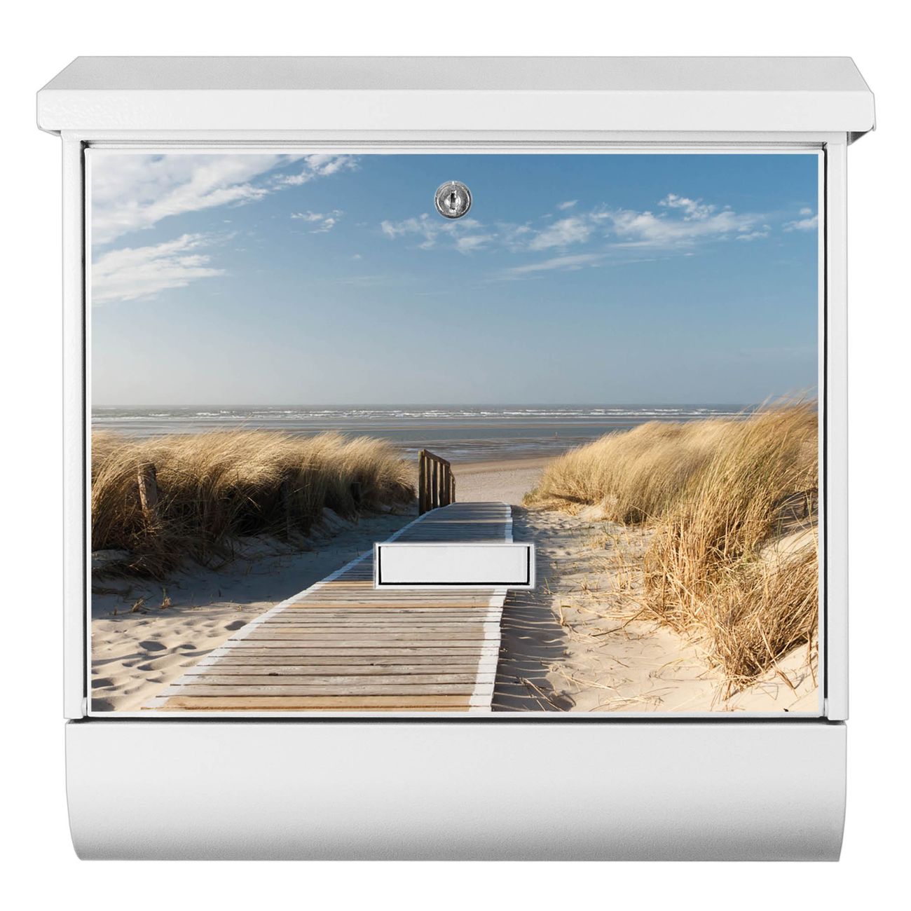 Der BURG-WÄCHTER Stahl Briefkasten mit Dünen Motiv bietet Ihnen mit seinem Fassungsvermögen genügend Platz auch für große A4 Sendungen und Zeitschriften. Das integrierte Regendach schützt Ihre Post vor dem Eindringen von Regen.