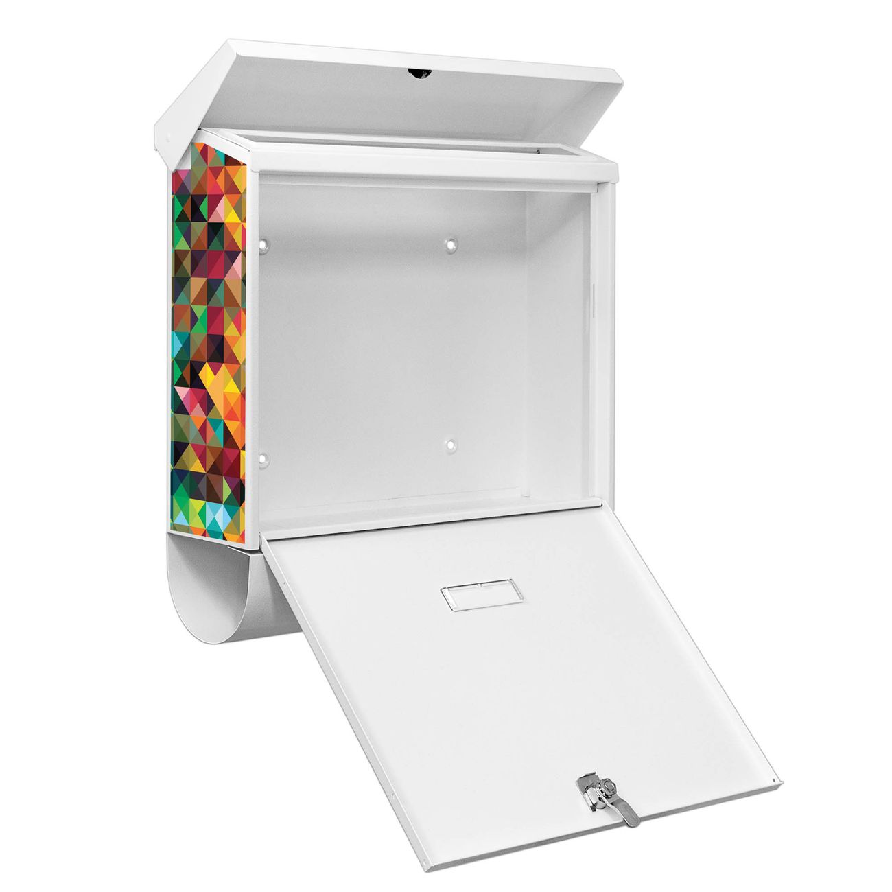 Der BURG-WÄCHTER Stahl Briefkasten mit Dunkles Kaleidoskop Motiv bietet Ihnen mit seinem Fassungsvermögen genügend Platz auch für große A4 Sendungen und Zeitschriften. Das integrierte Regendach schützt Ihre Post vor dem Eindringen von Regen.