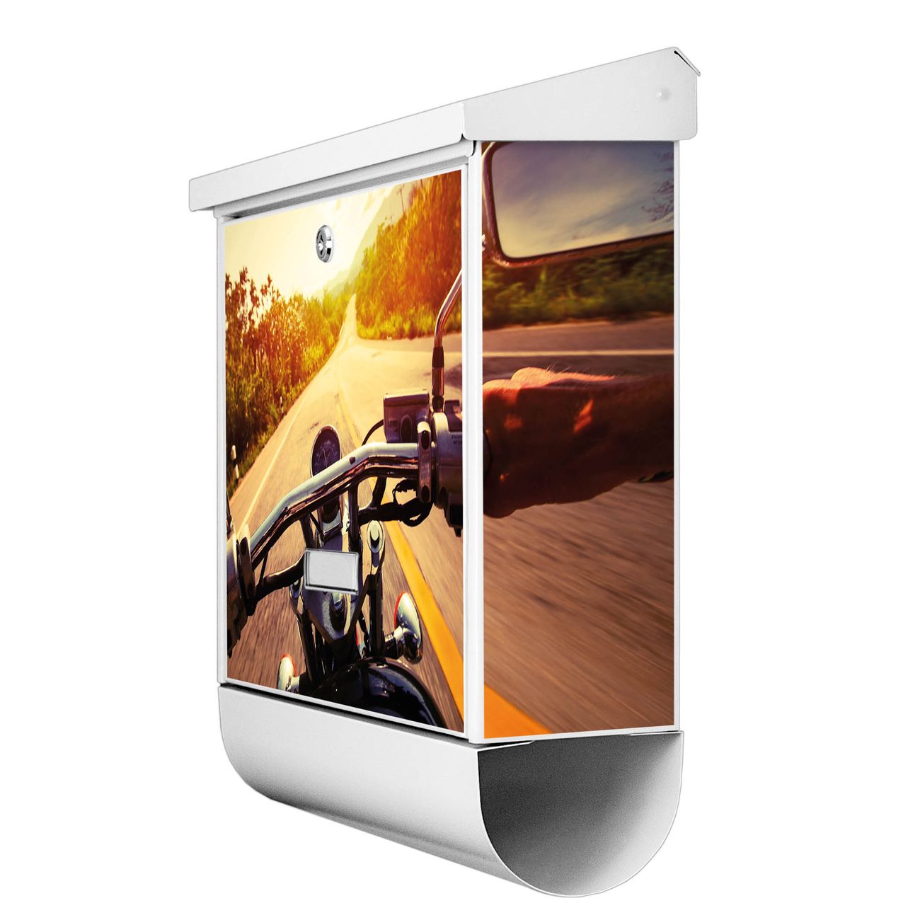 Der BURG-WÄCHTER Stahl Briefkasten mit Easy Rider Motiv bietet Ihnen mit seinem Fassungsvermögen genügend Platz auch für große A4 Sendungen und Zeitschriften. Das integrierte Regendach schützt Ihre Post vor dem Eindringen von Regen.