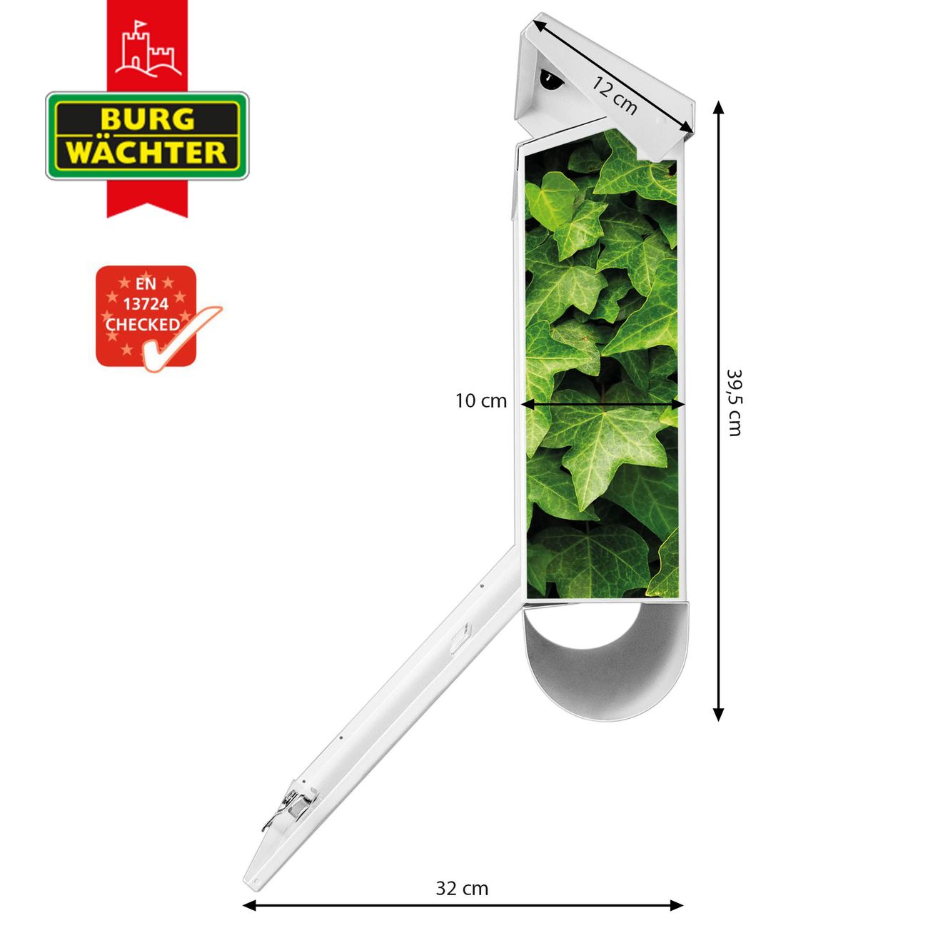 Der BURG-WÄCHTER Stahl Briefkasten mit Efeu Motiv bietet Ihnen mit seinem Fassungsvermögen genügend Platz auch für große A4 Sendungen und Zeitschriften. Das integrierte Regendach schützt Ihre Post vor dem Eindringen von Regen.