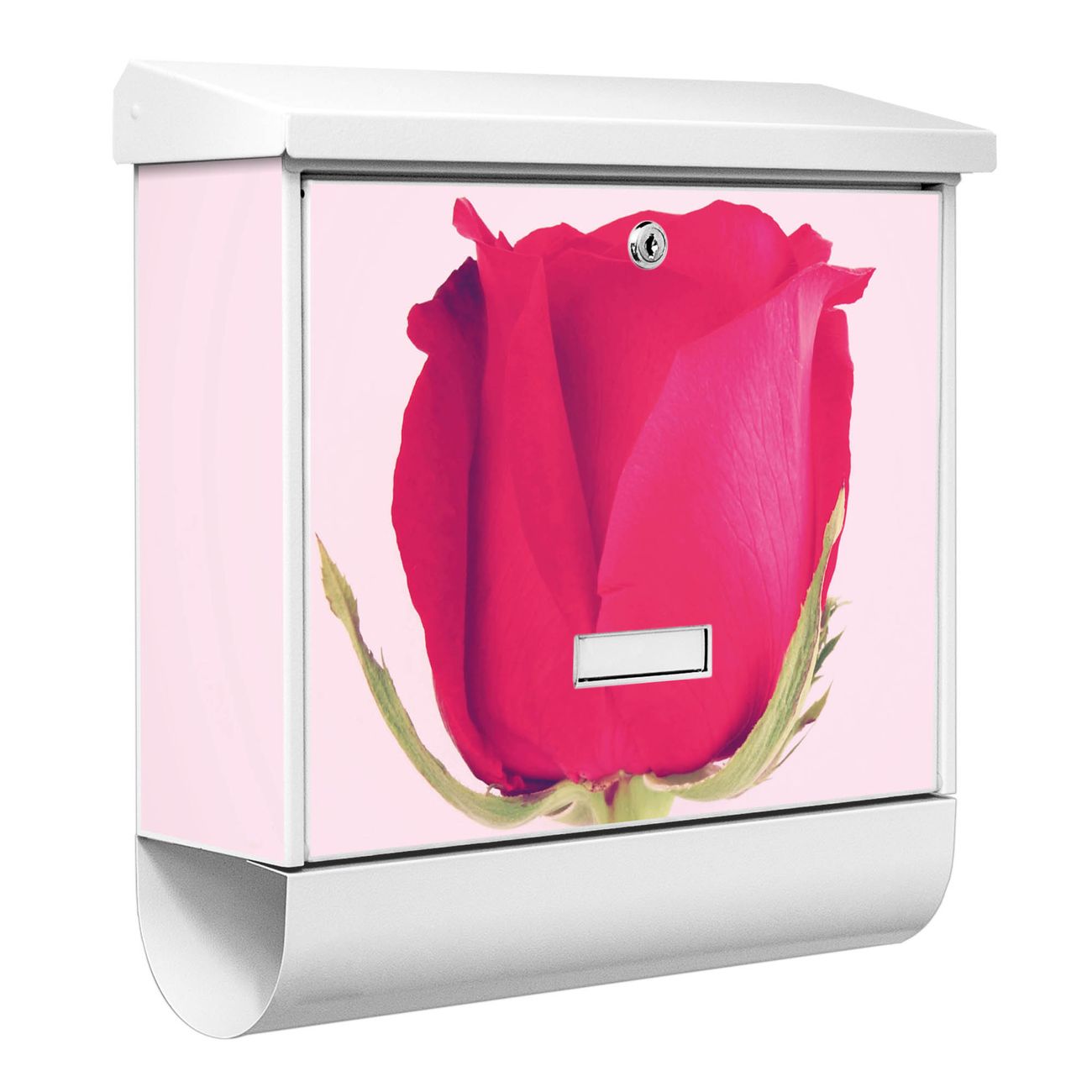 Der BURG-WÄCHTER Stahl Briefkasten mit Einzelne Rose Motiv bietet Ihnen mit seinem Fassungsvermögen genügend Platz auch für große A4 Sendungen und Zeitschriften. Das integrierte Regendach schützt Ihre Post vor dem Eindringen von Regen.