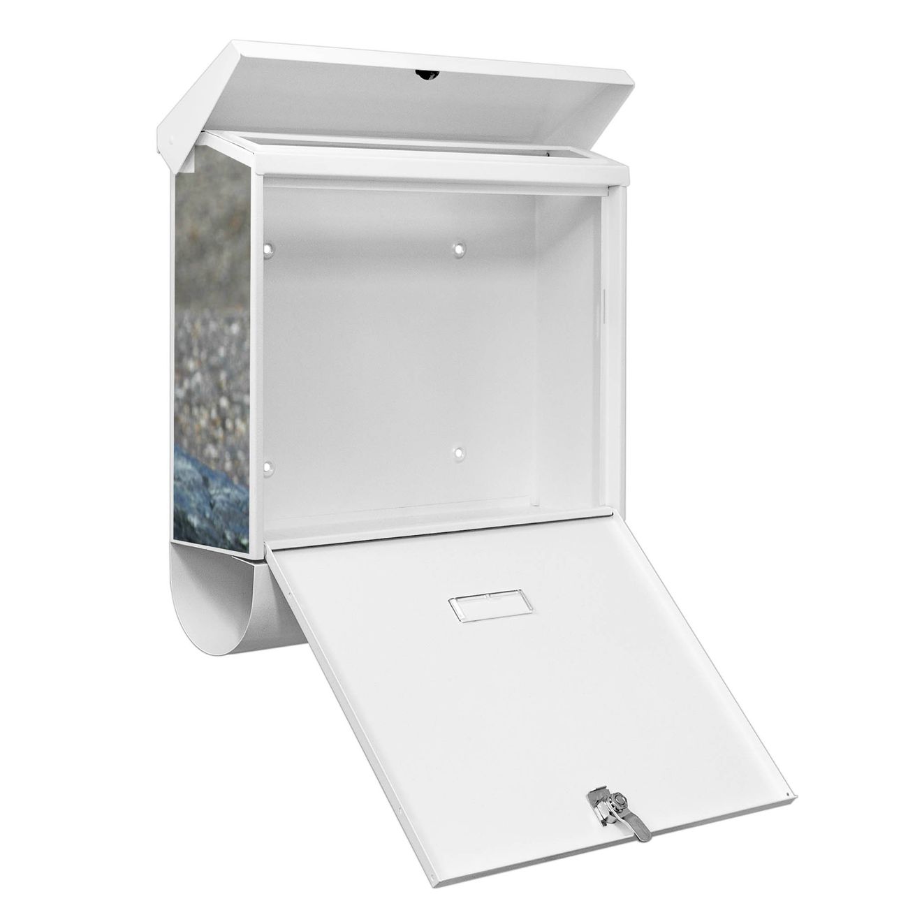 Der Briefkasten besteht aus Stahl, einem hochwertigen Material das äußerst unempfindlich gegenüber Witterungseinflüssen ist. Das Motiv besteht aus einer wetter- und UV-festen Folie, die Ihren Briefkasten zusätzlich vor Kratzern schützt. Der Postkasten ist 42,5cm hoch, 38cm breit und 11,5cm tief. Der Briefeinwurf ist 33,2cm x 3,1cm, Format DIN C4. Der Briefkasten wird mit Montagematerial und zwei Schlüsseln geliefert.