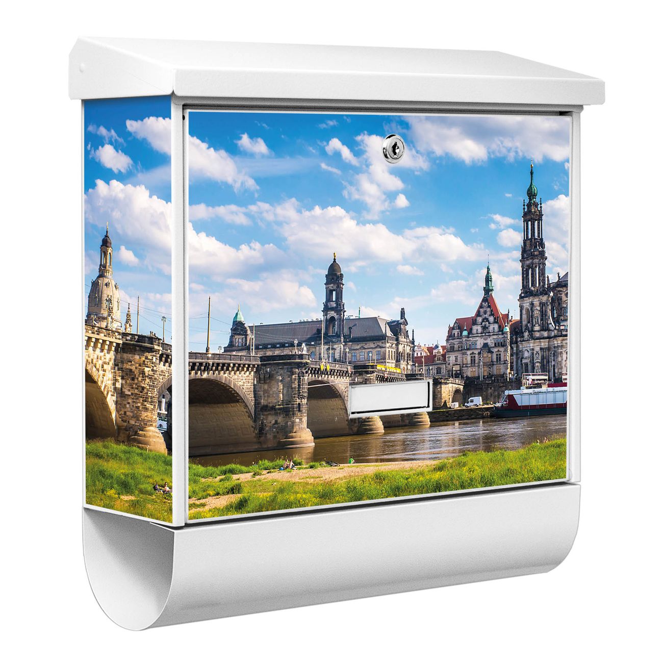 Der BURG-WÄCHTER Stahl Briefkasten mit Elbflorenz Motiv bietet Ihnen mit seinem Fassungsvermögen genügend Platz auch für große A4 Sendungen und Zeitschriften. Das integrierte Regendach schützt Ihre Post vor dem Eindringen von Regen.