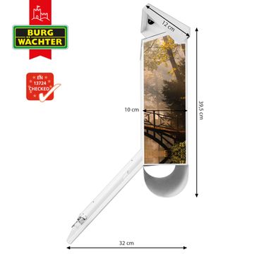 Der BURG-WÄCHTER Stahl Briefkasten mit Englischer Garten Motiv bietet Ihnen mit seinem Fassungsvermögen genügend Platz auch für große A4 Sendungen und Zeitschriften. Das integrierte Regendach schützt Ihre Post vor dem Eindringen von Regen.