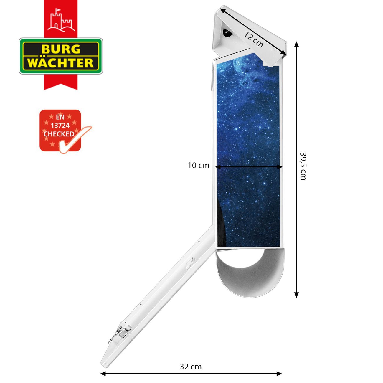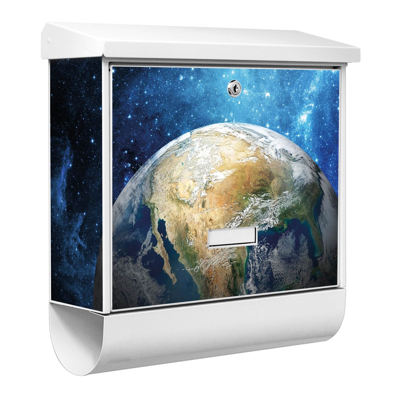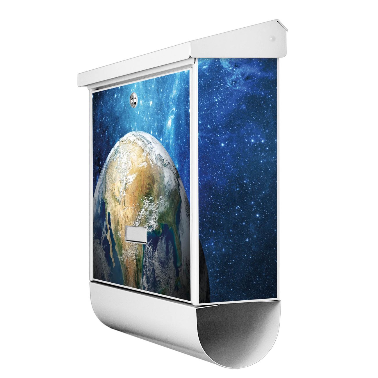 Der BURG-WÄCHTER Stahl Briefkasten mit Erdkugel Motiv bietet Ihnen mit seinem Fassungsvermögen genügend Platz auch für große A4 Sendungen und Zeitschriften. Das integrierte Regendach schützt Ihre Post vor dem Eindringen von Regen.