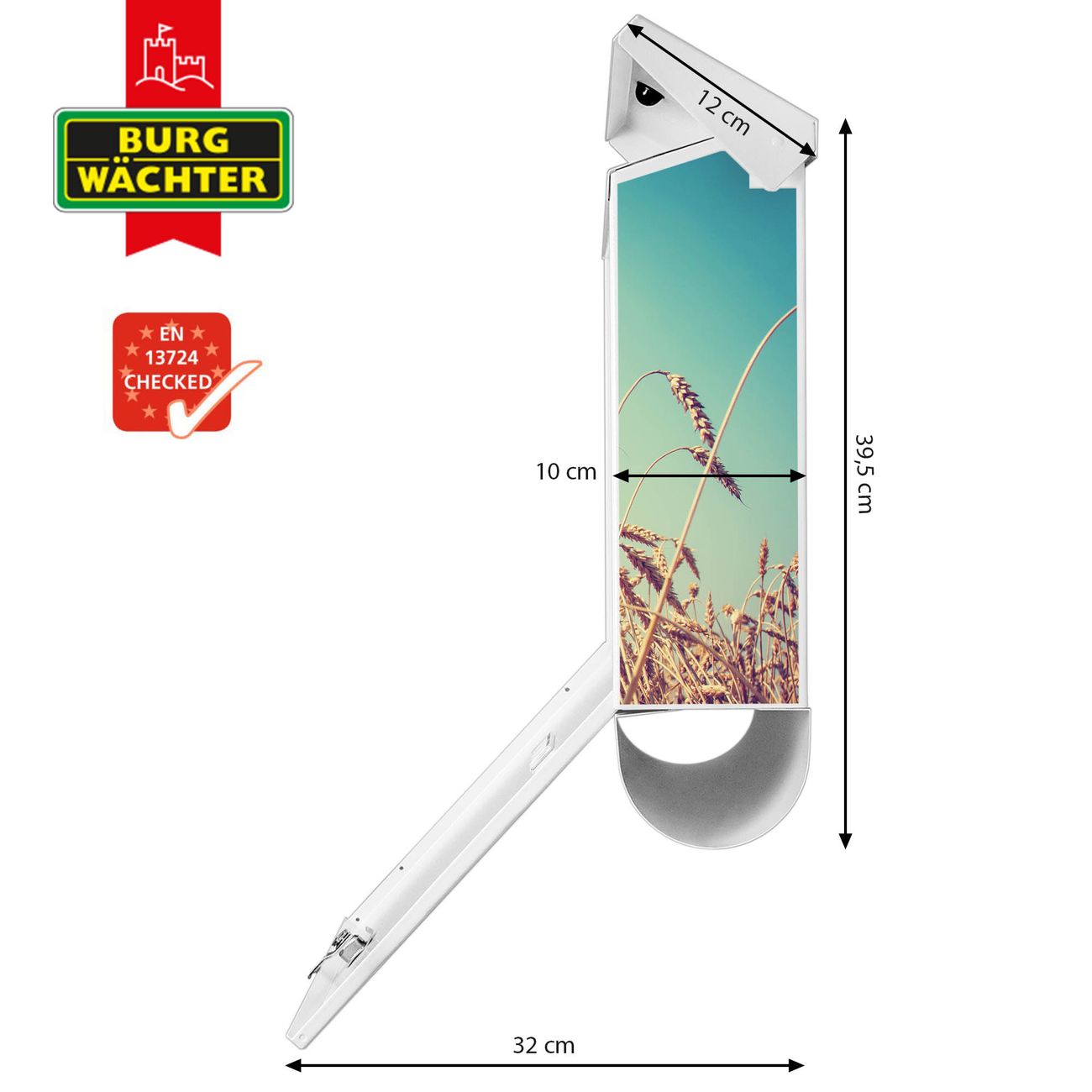 Der BURG-WÄCHTER Stahl Briefkasten mit Erntezeit Motiv bietet Ihnen mit seinem Fassungsvermögen genügend Platz auch für große A4 Sendungen und Zeitschriften. Das integrierte Regendach schützt Ihre Post vor dem Eindringen von Regen.